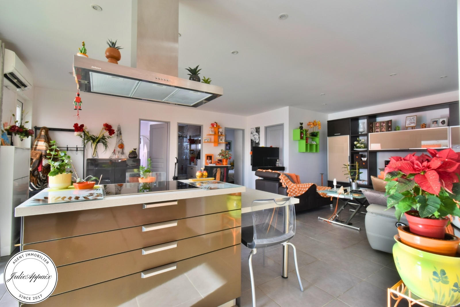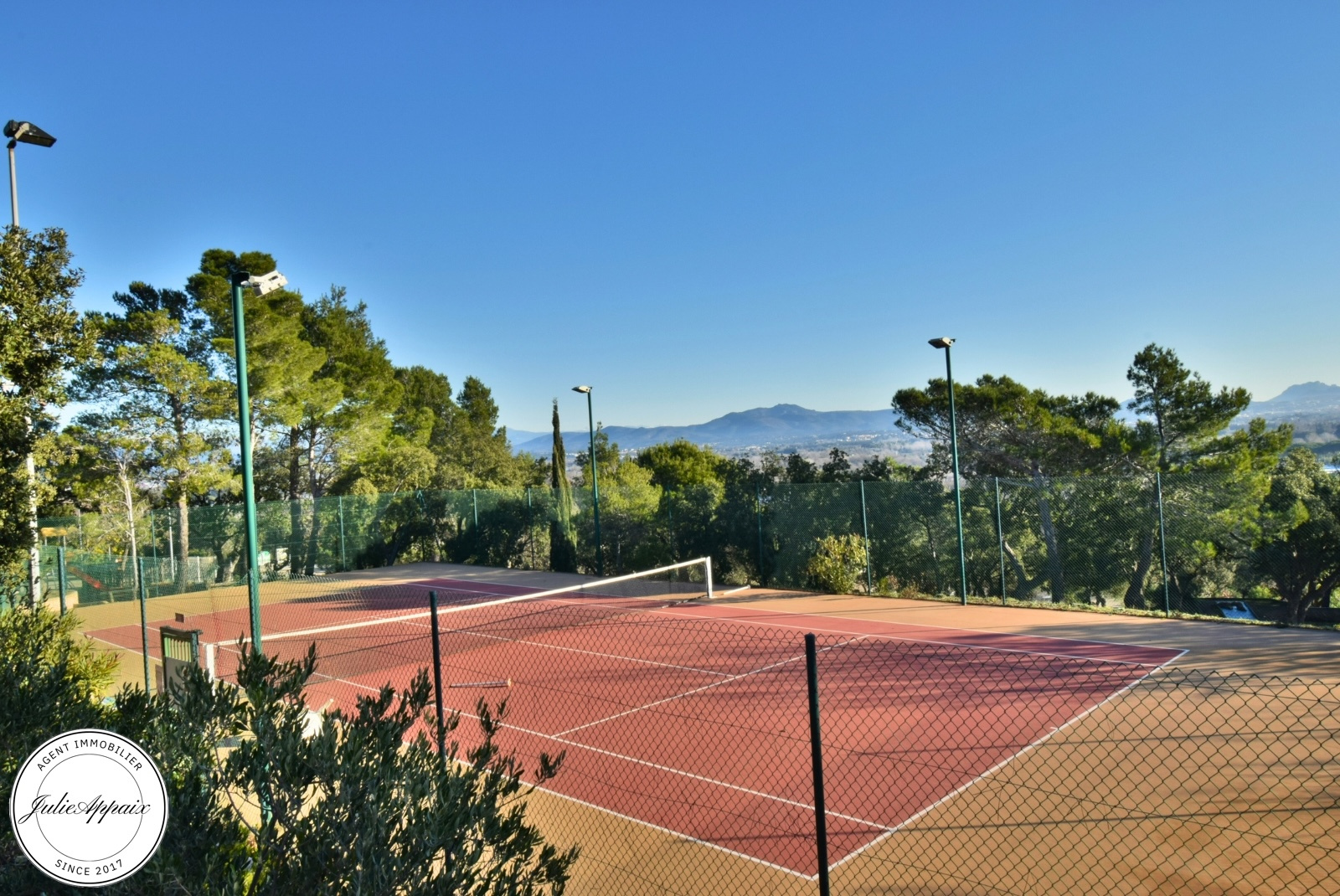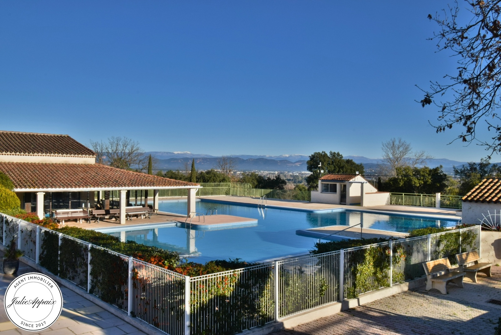 Vente inter active. Roquebrune sur argens, dans un domaine sécurisé avec parc de loisirs résidentiel ouvert à l'année, Julie APPAIX EXPERTIMO vous propose une ravissante maison de 81M² avec une grande terrasse de 28M² sur une parcelle de 210M². Calme absolu. Etat impeccable. Elle se compose d'une grande pièce à vivre avec cuisine équipée, trois chambres, deux salles d'eau avec wc. La pièce à vivre est prolongée par une grande terrasse avec bassin de nage à contre courant. Dans le domaine, vous pourrez profiter de la piscine, terrain de tennis, city stade, aire de jeux, supermarchés et d'un parking pour camping cars... Se sentir en vacances toute l'année. L'eau et électricité sont incluses dans les charges mensuelles. Belles prestations : climatisation, double vitrage...