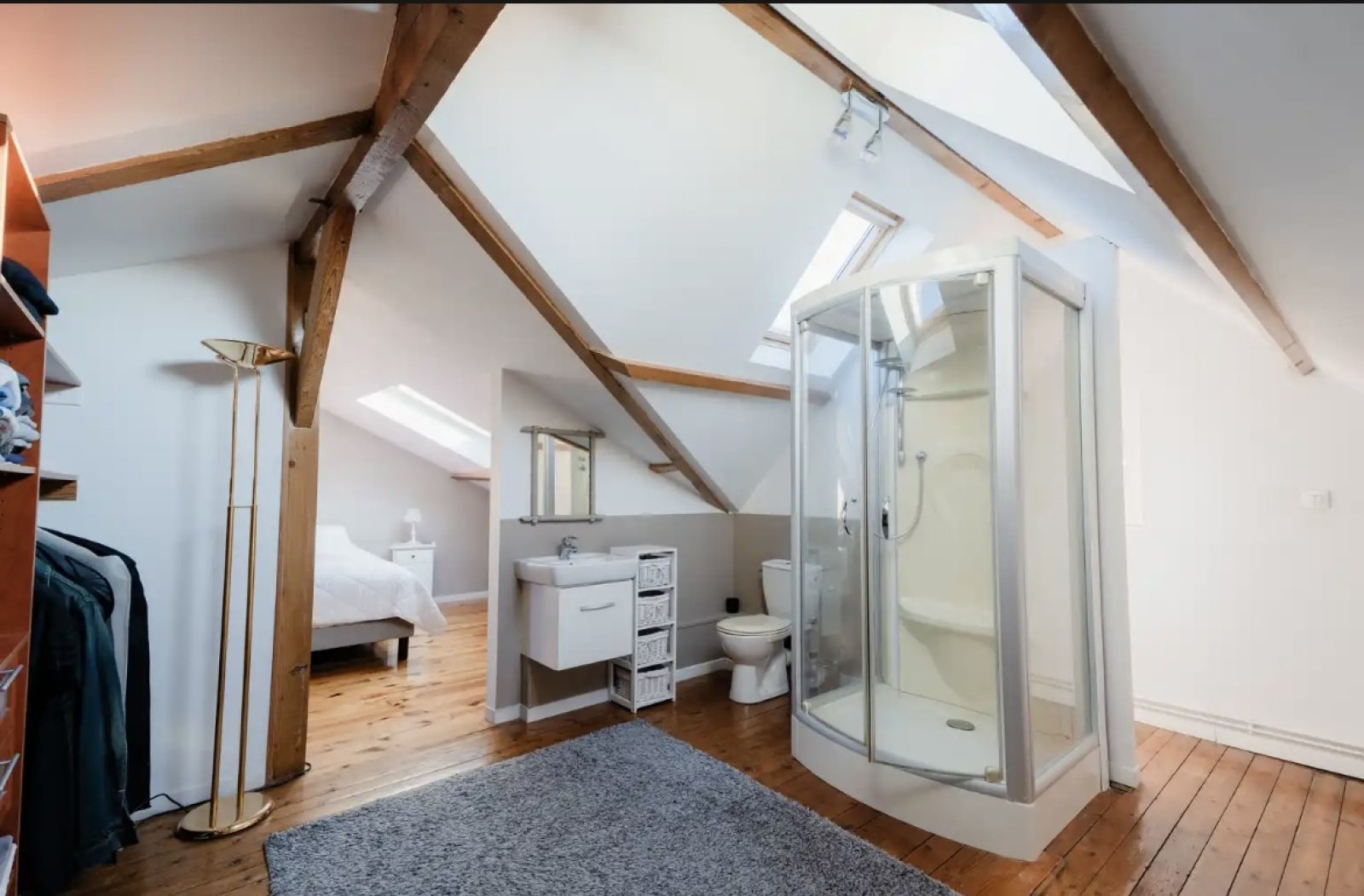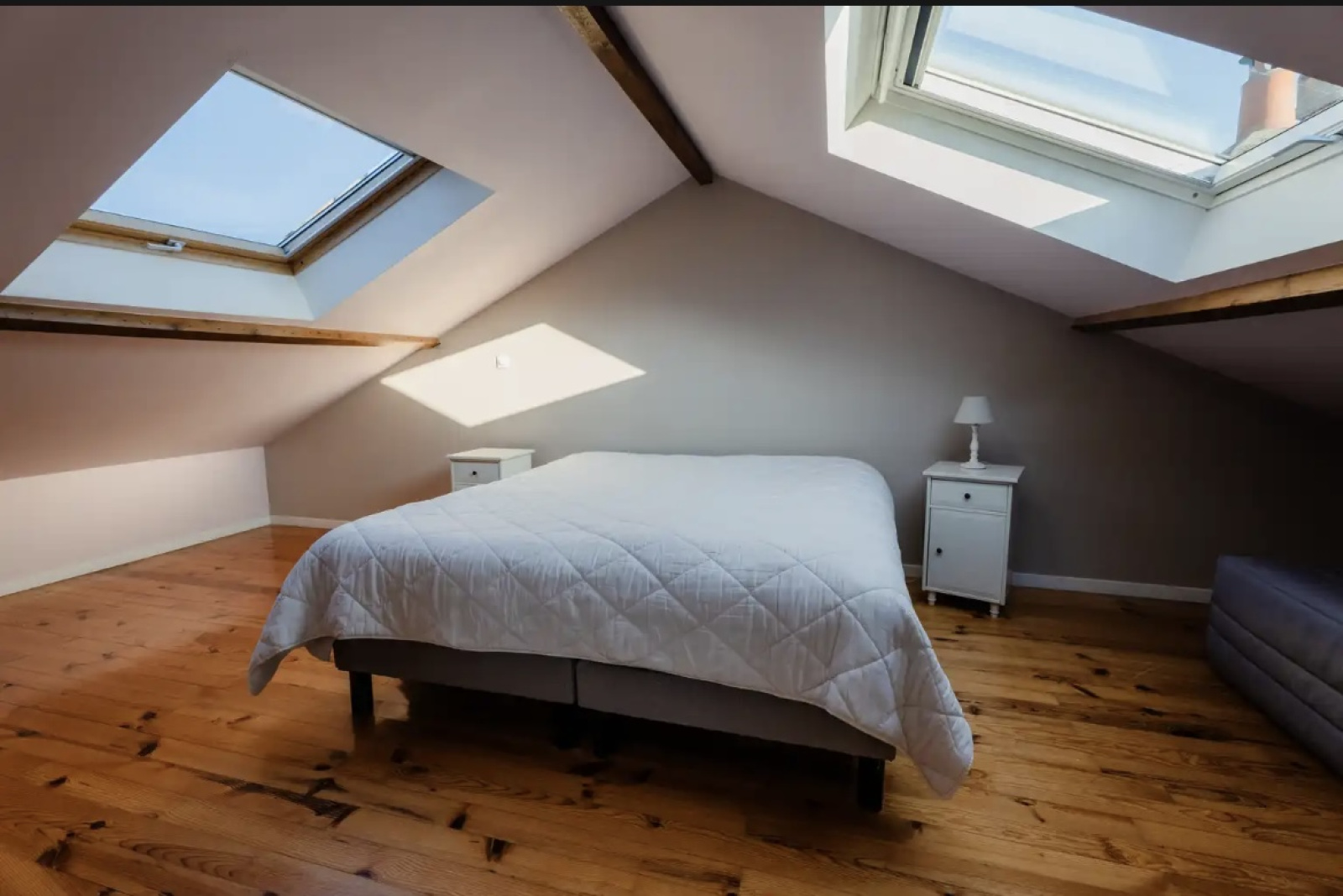 À l’étage, 2 chambres et une salle de bains, puis au second niveau 2 chambres supplémentaires et une seconde salle de bains.