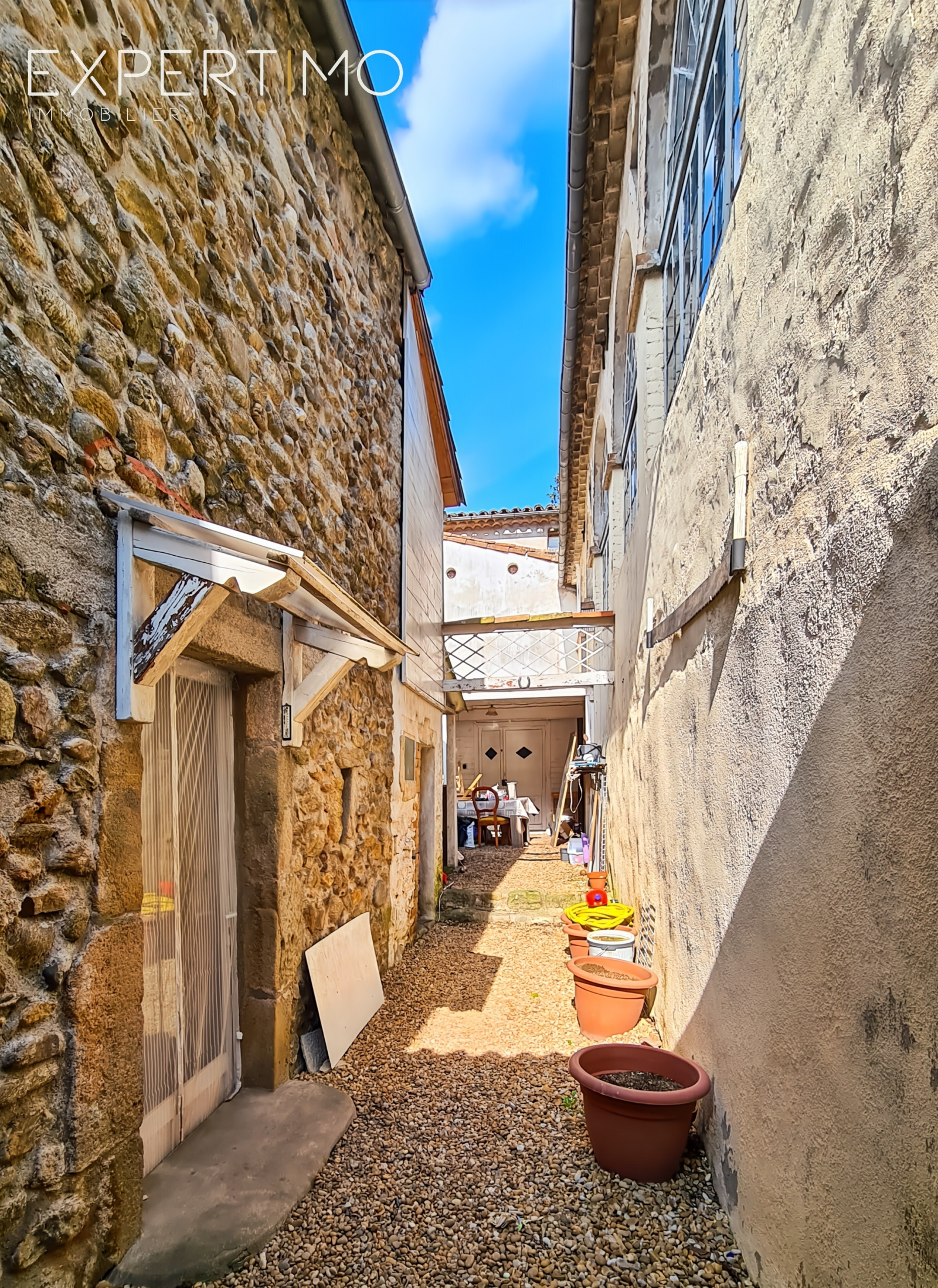 - à l'arrière du bâtiment : maison T3 - 63 m² + cour, louée à l'année