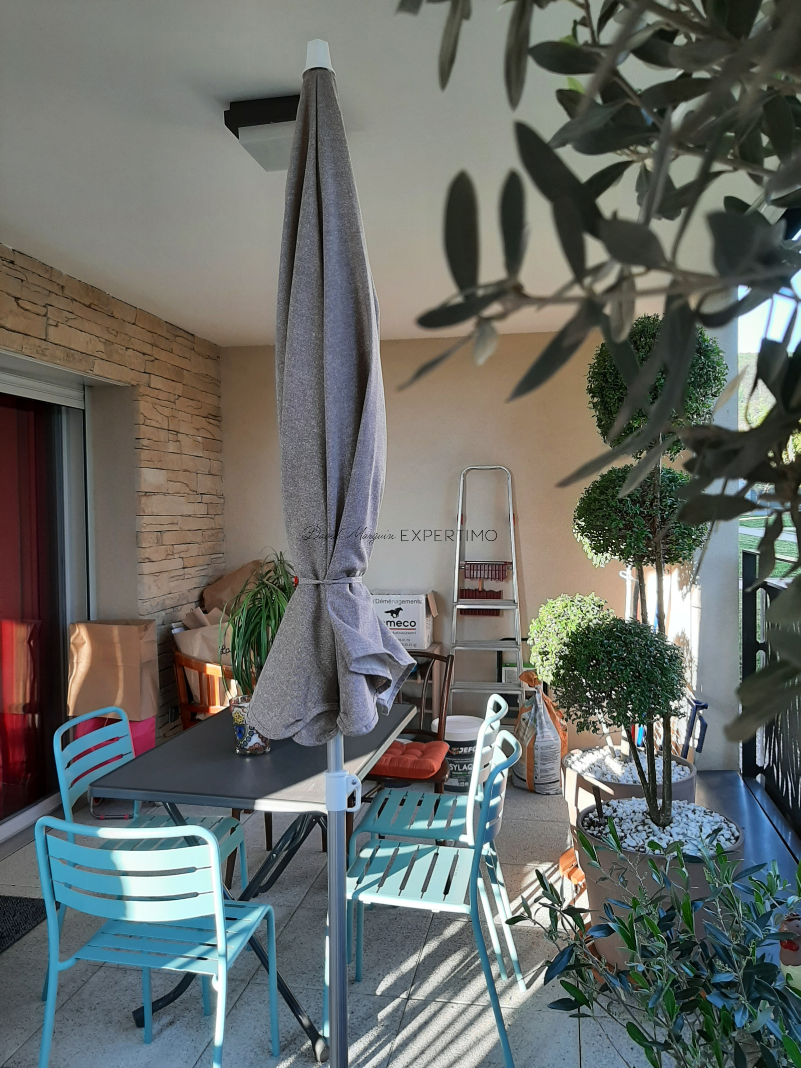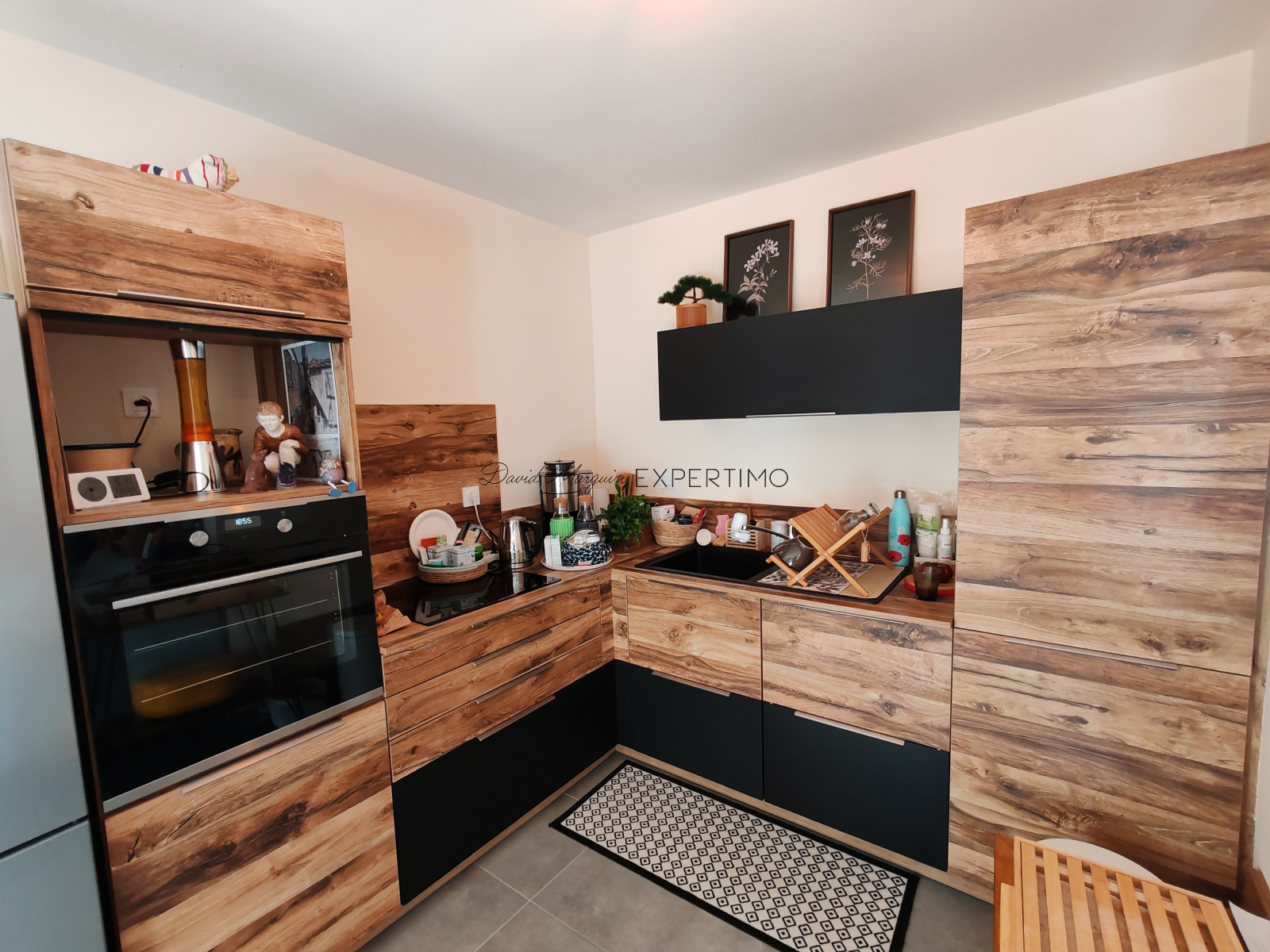 - Disposition : Une cuisine ouverte sur un salon-séjour donnant accès à une belle terrasse avec murs habillés en parement, une chambre avec accès à une salle d'eau.