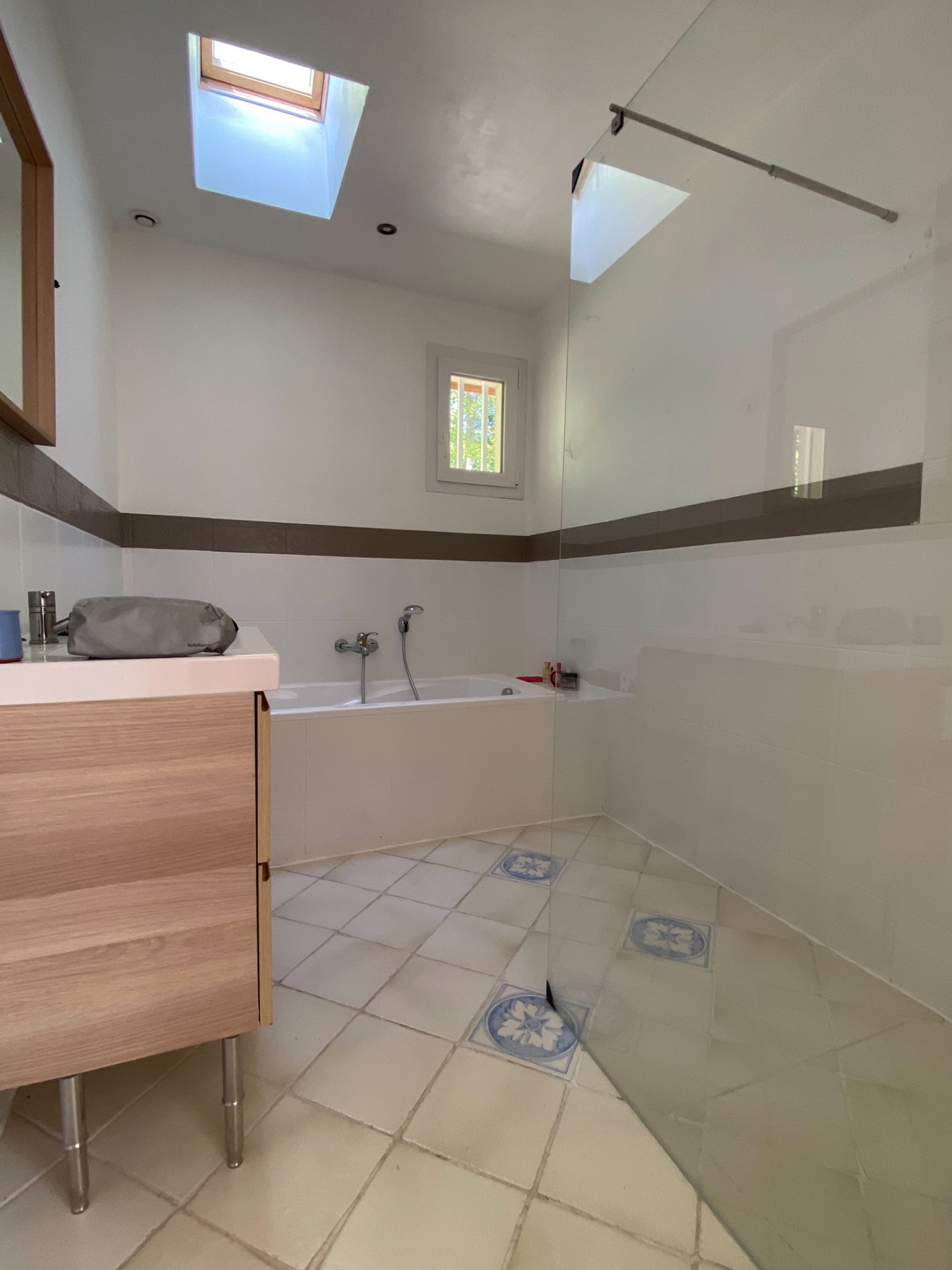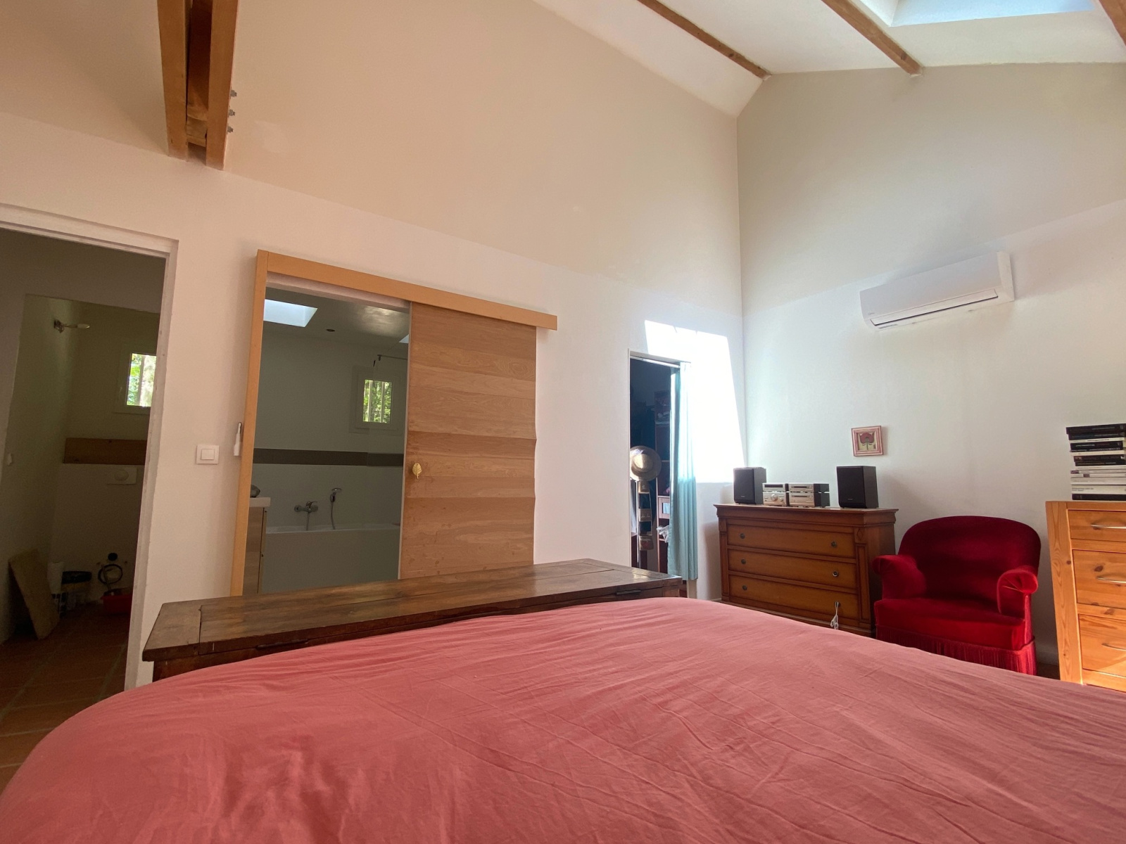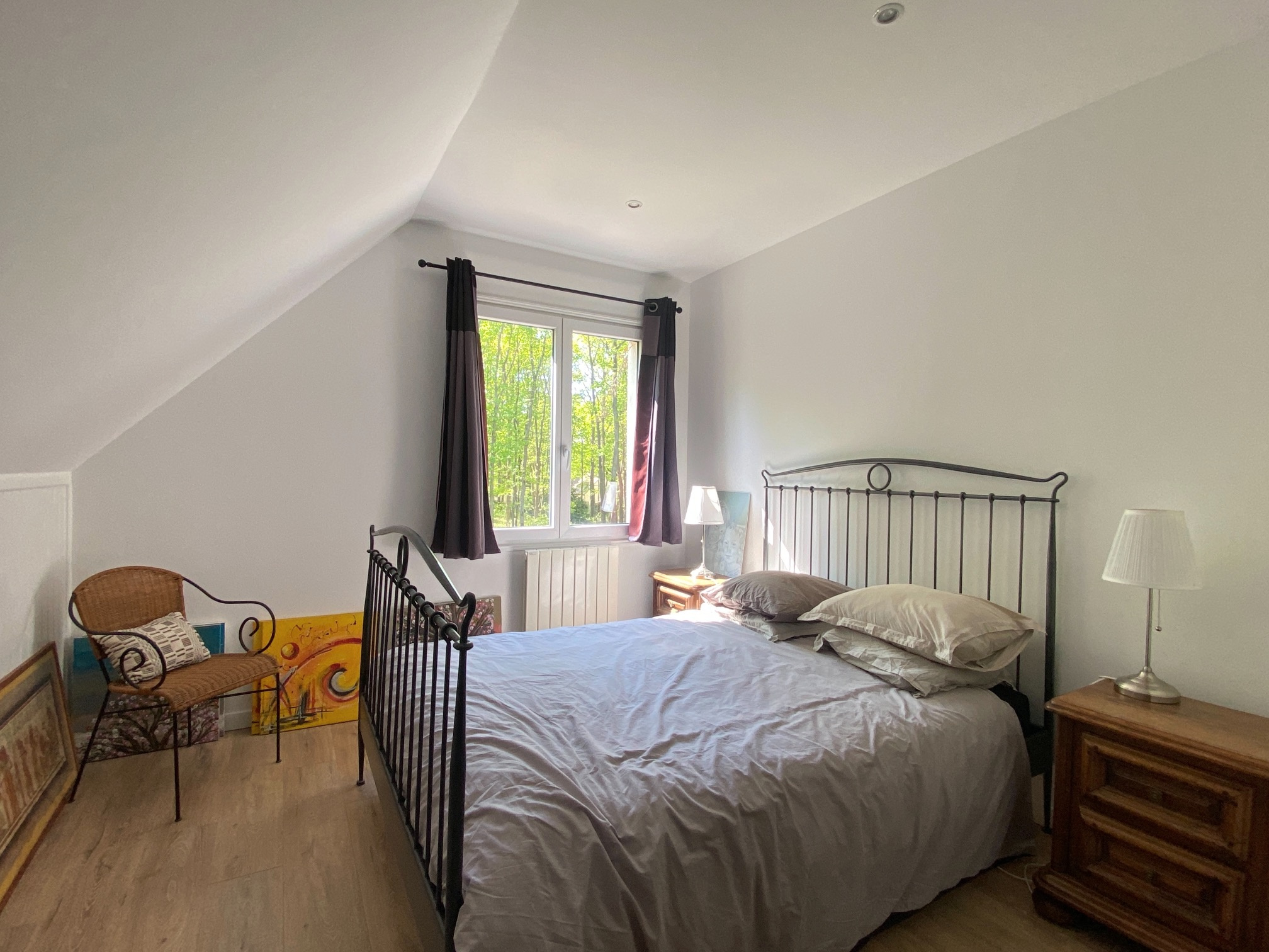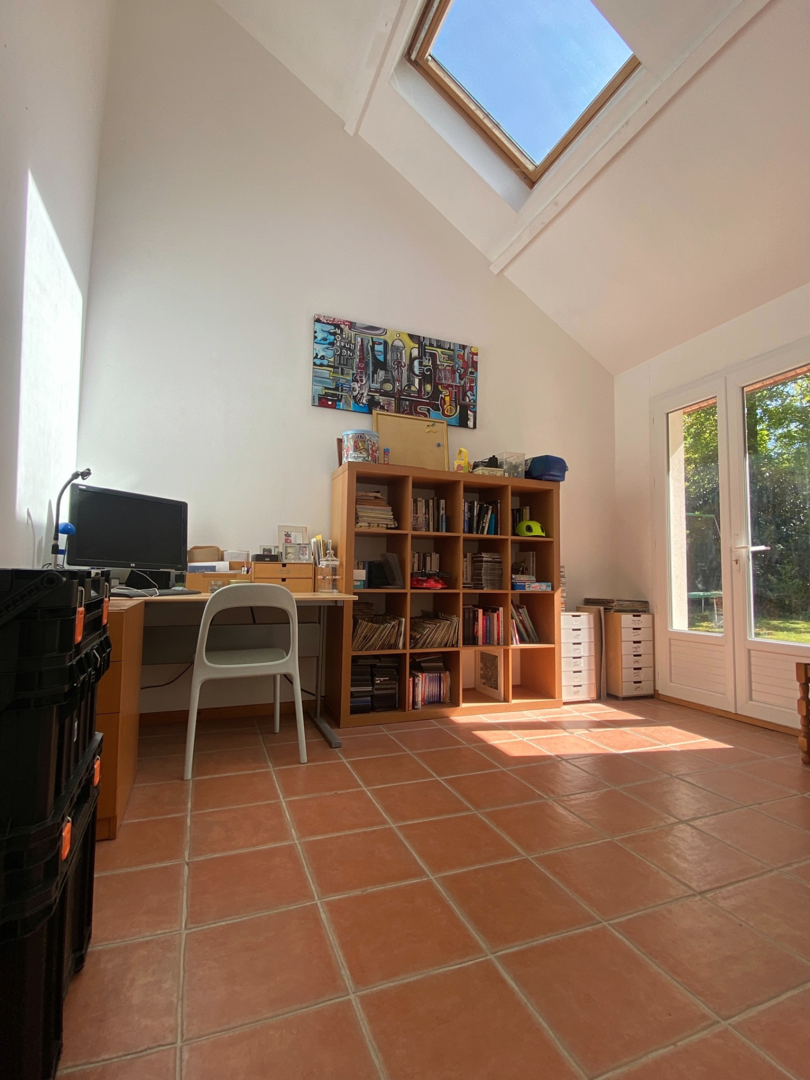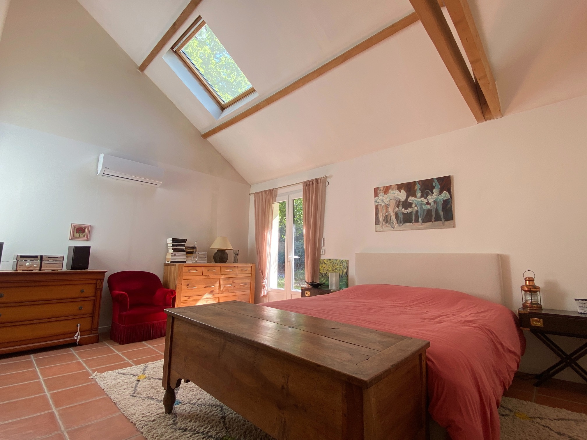 Le rez-de-chaussée se compose également d’un bureau, de deux chambres avec de beaux volumes sous toit cathédrale, dont une suite parentale de 26 m² avec salle d’eau, baignoire et dressing indépendant, ainsi que des WC.