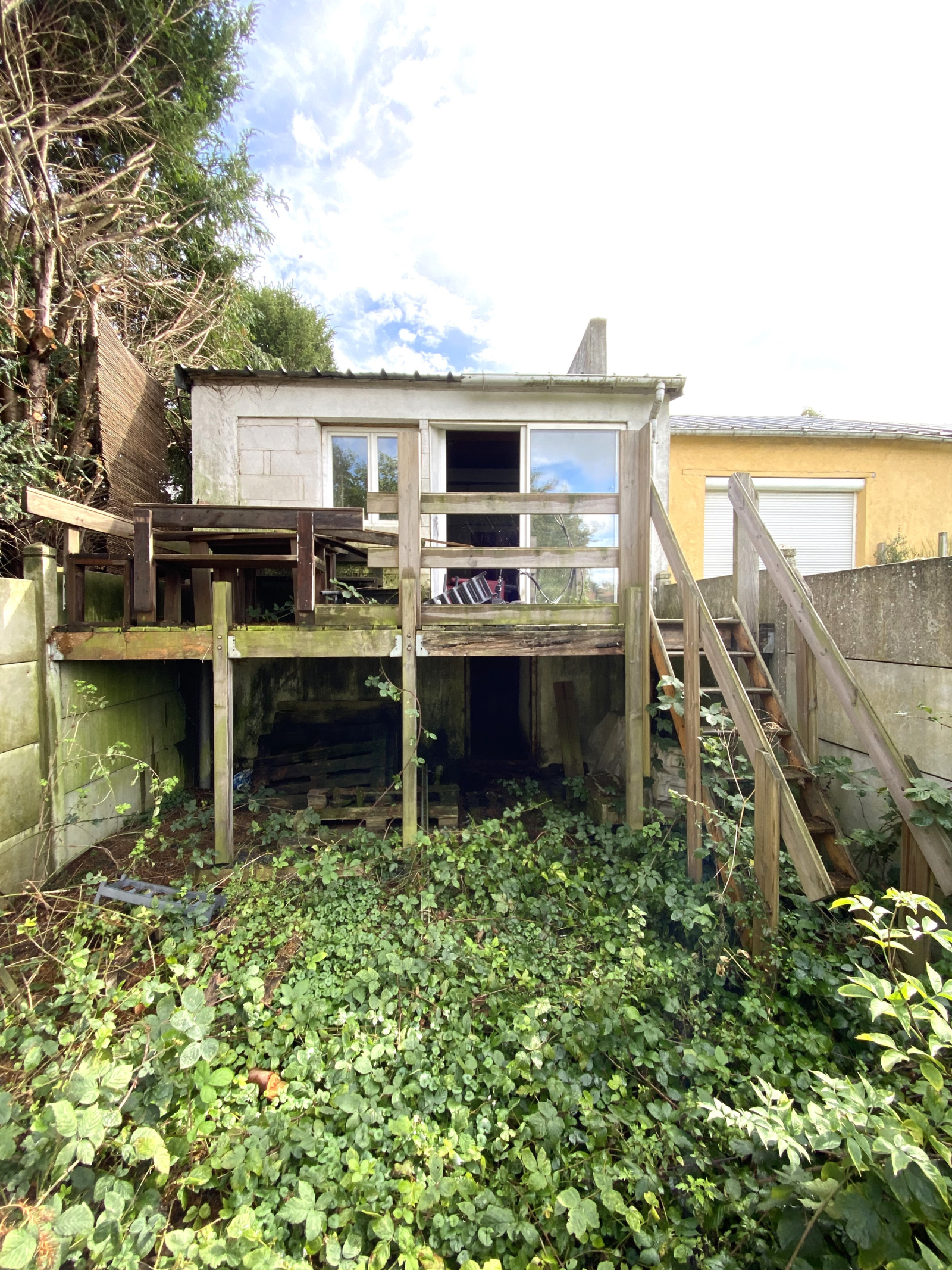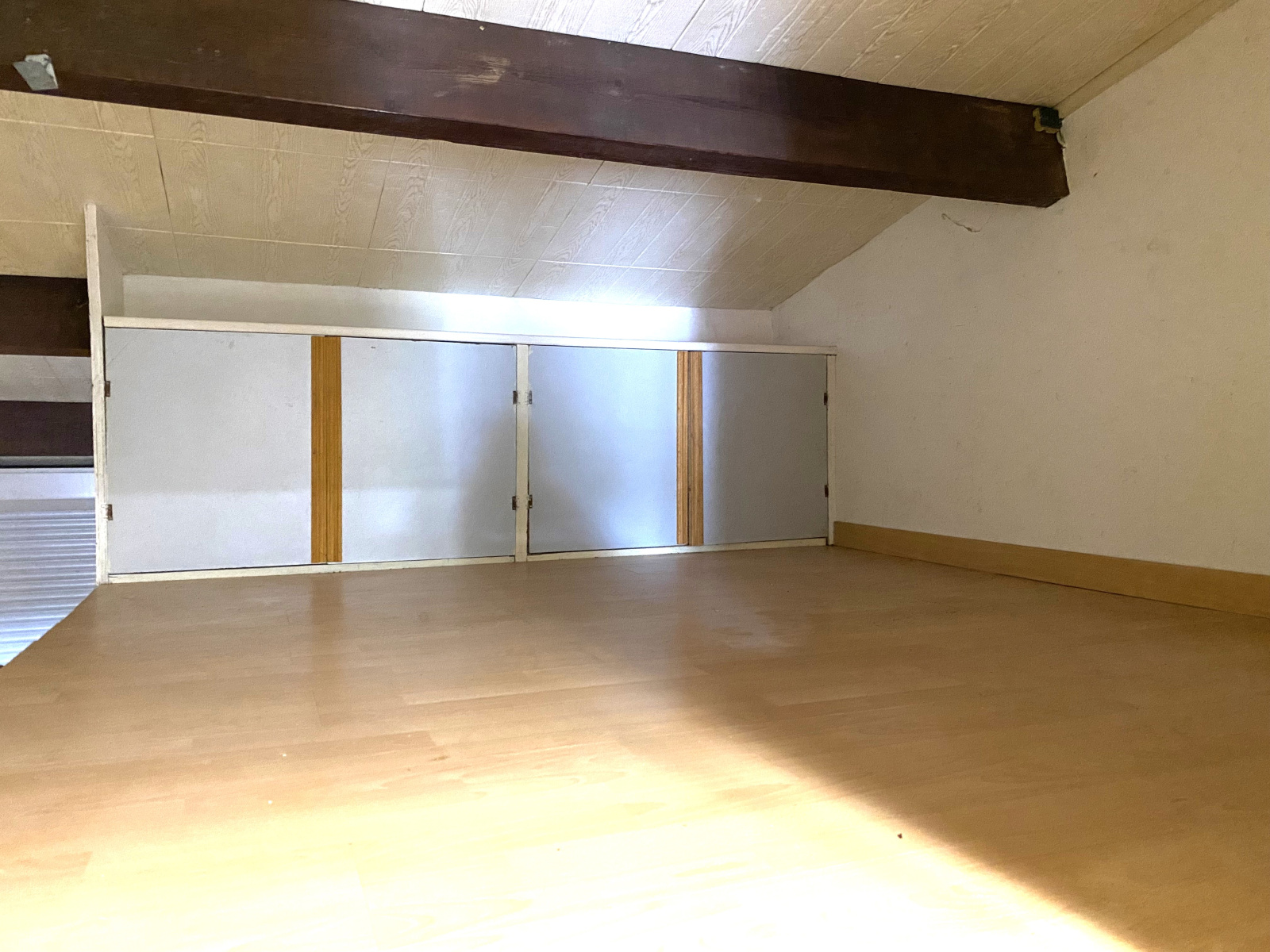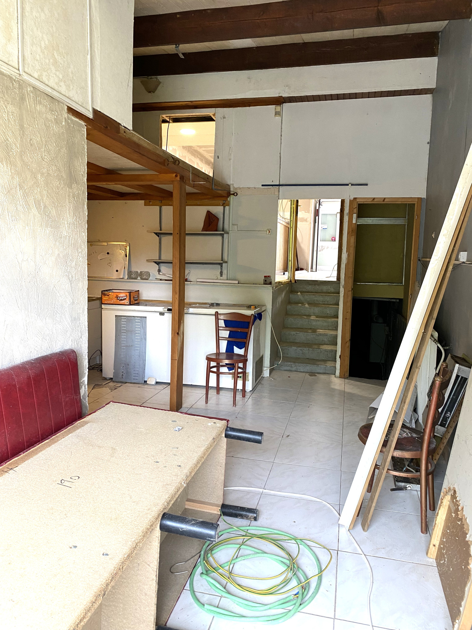 - Un local commercial de 35,60 m2, wc, une pièce arrière de 20,35 m2 avec mansarde et donnant accès sur terrasse bois et jardin, salle de bains,