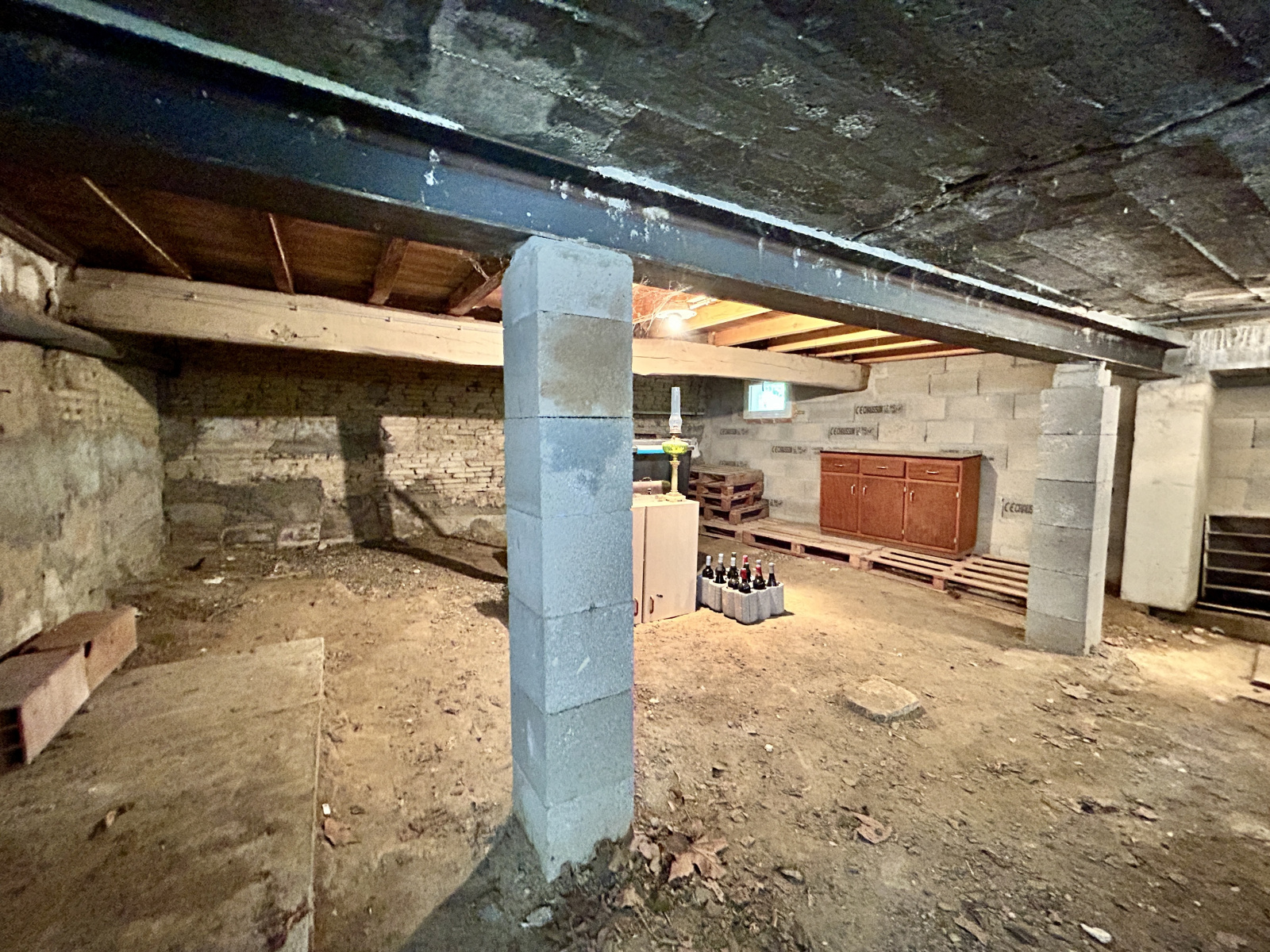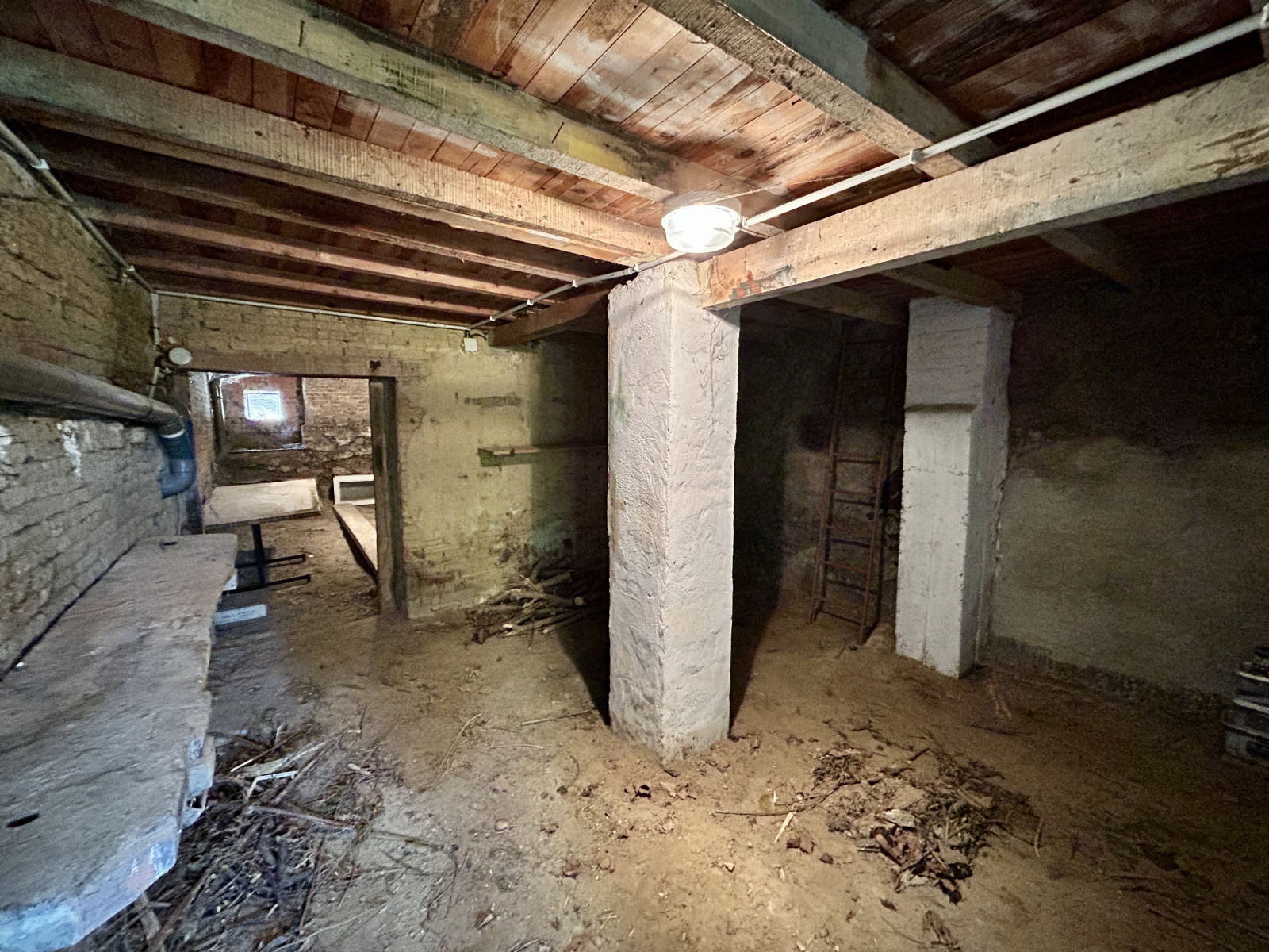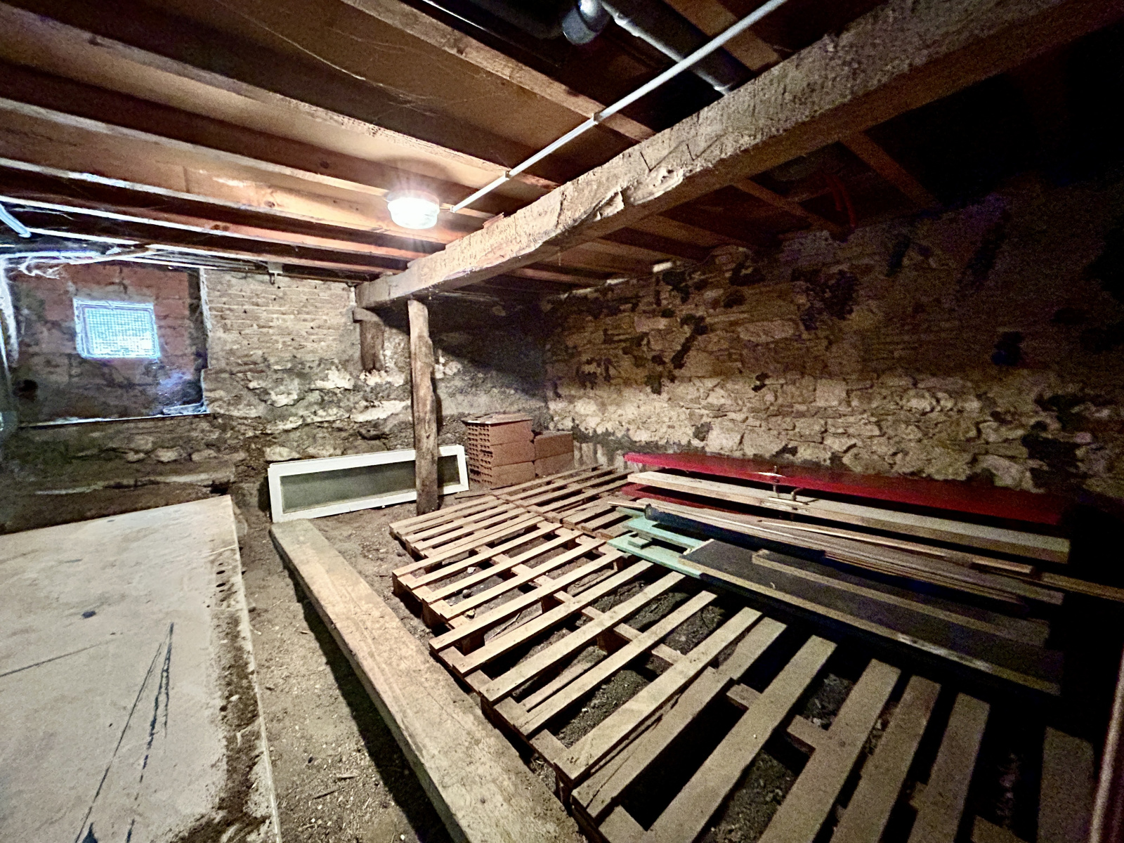 Les chambres (17 et 8 m2), la salle d'eau et les wc séparés se trouvent seulement 3 marches au dessus. Le sous sol de cette maison est accessble par un jardinet arboré et ombragé, et les 4 caves représentent plus de 100 m2 pour entreposer et bricoler
