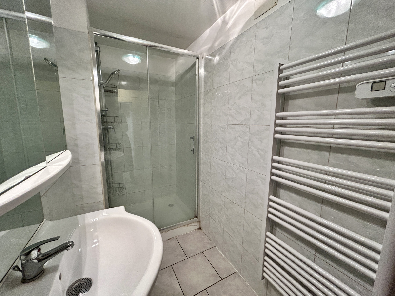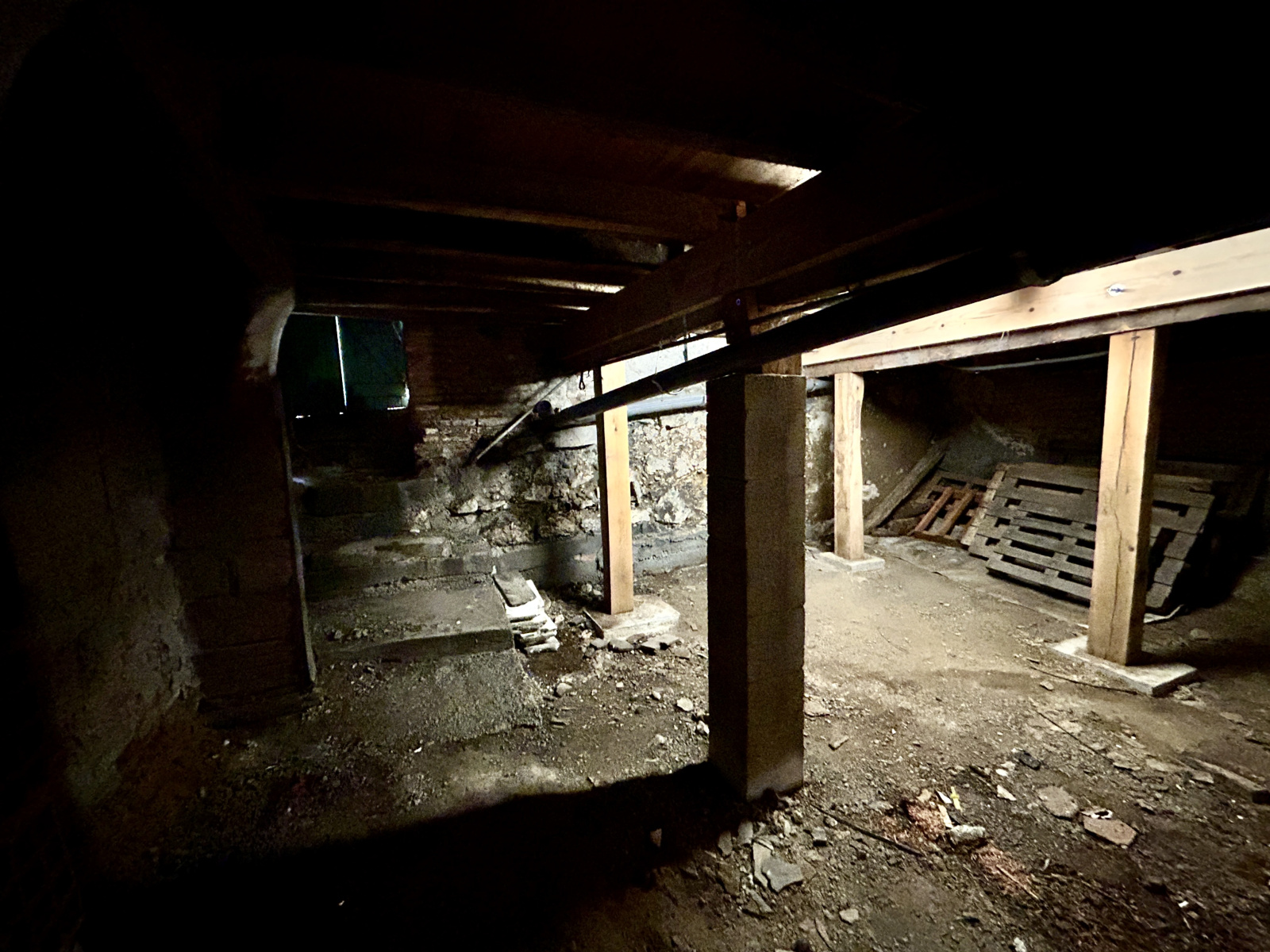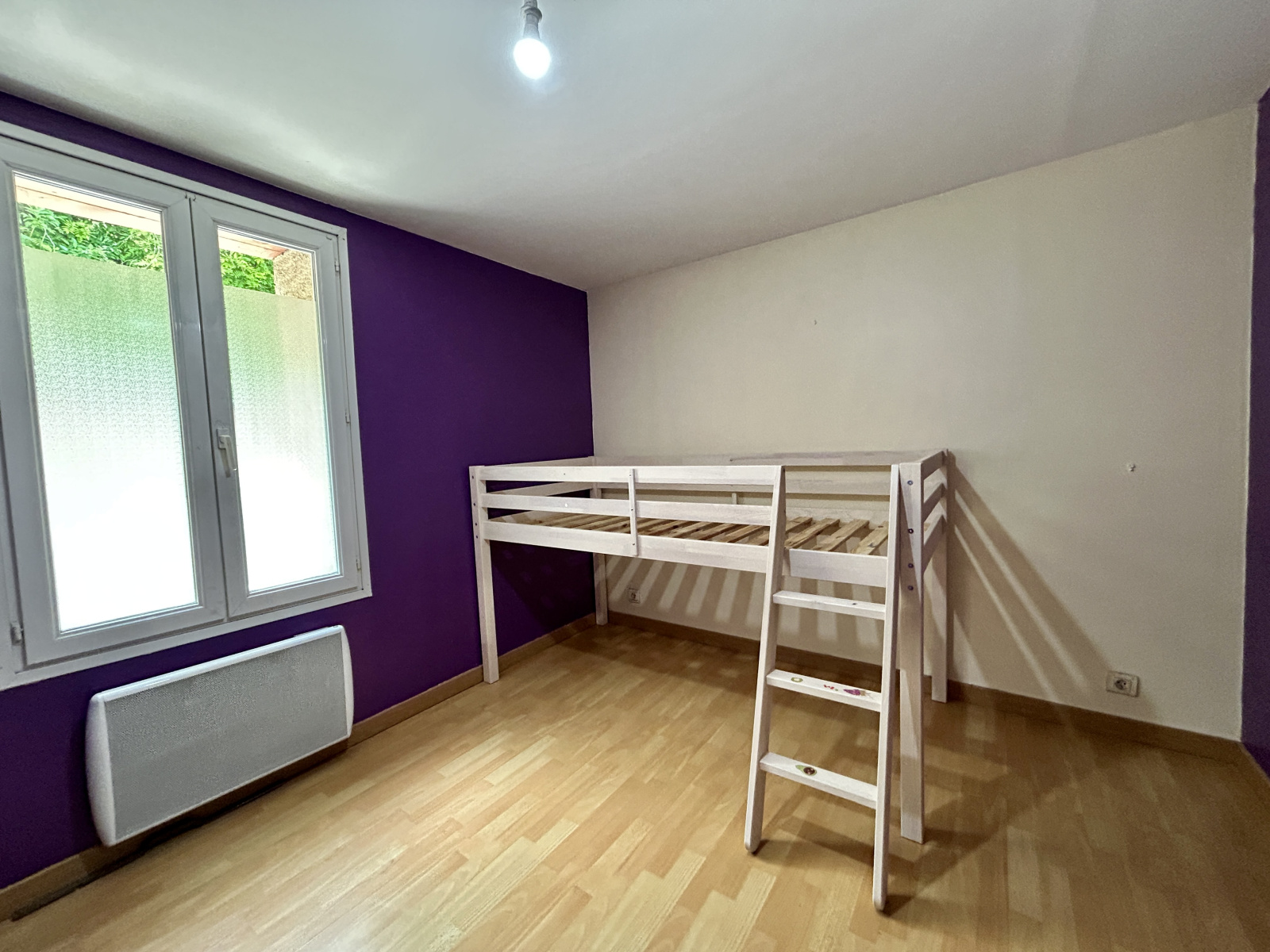 Les chambres (17 et 8 m2), la salle d'eau et les wc séparés se trouvent seulement 3 marches au dessus. Le sous sol de cette maison est accessble par un jardinet arboré et ombragé, et les 4 caves représentent plus de 100 m2 pour entreposer et bricoler