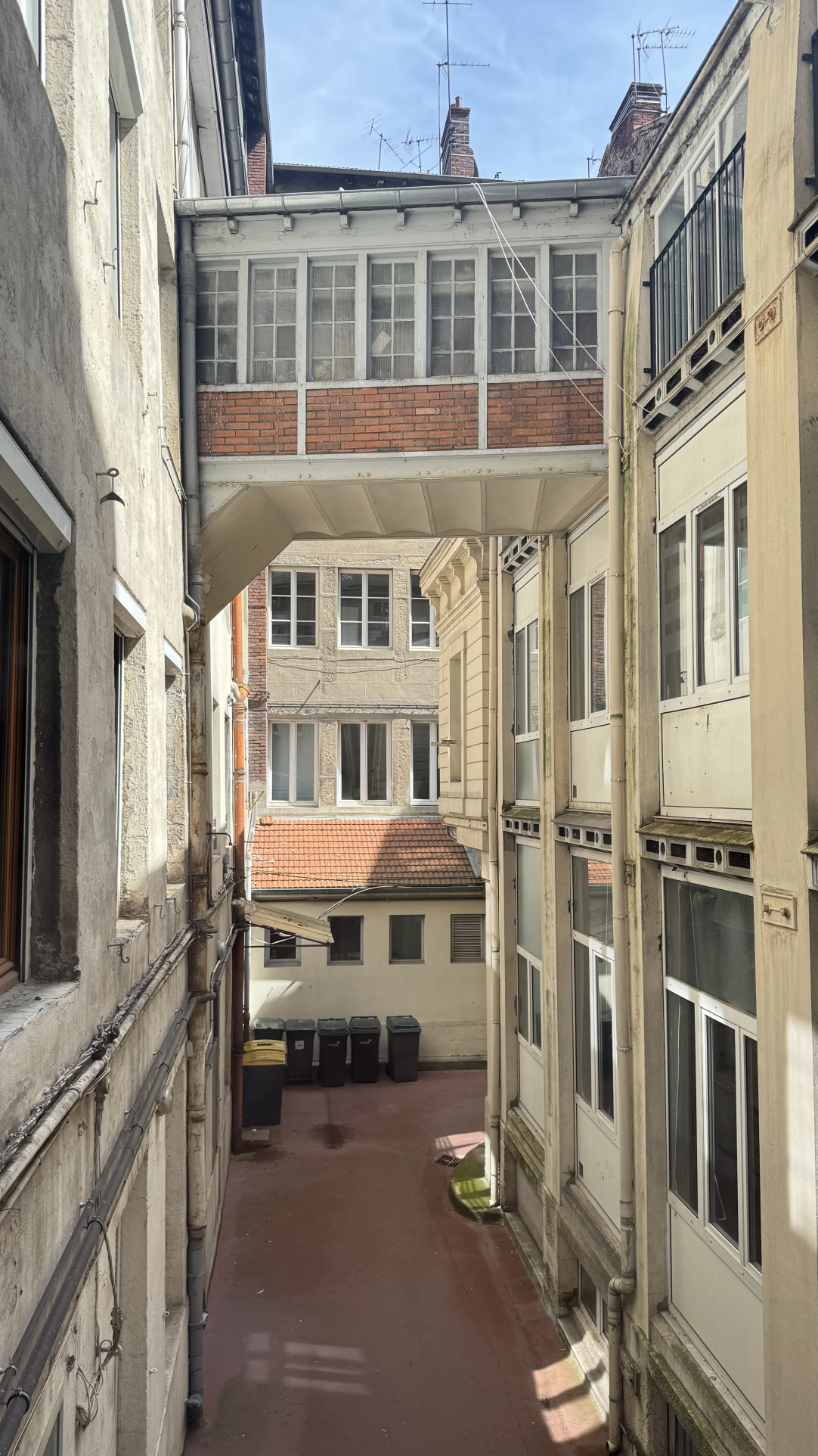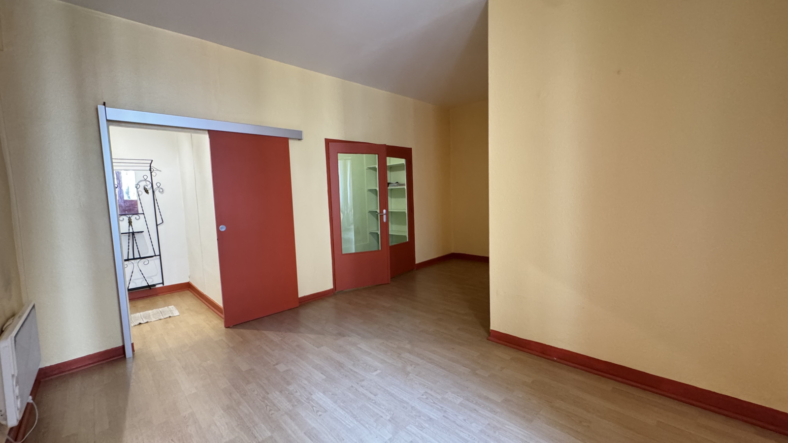 Hervé vous propose cet appartement de type F2 de 65m2 composé d'une grande pièce de vie avec coin cuisine, 1 chambre, salon d'entrée, salle d'eau et wc. Chauffage individuel au gaz, double vitrage bois et volets roulants électriques. Appartement sur cour au 1er étage, idéal pour investisseur. Travaux à prévoir pour amélioration coéfficient DPE. DPE E, faibles charges. Contact 0781025567Â