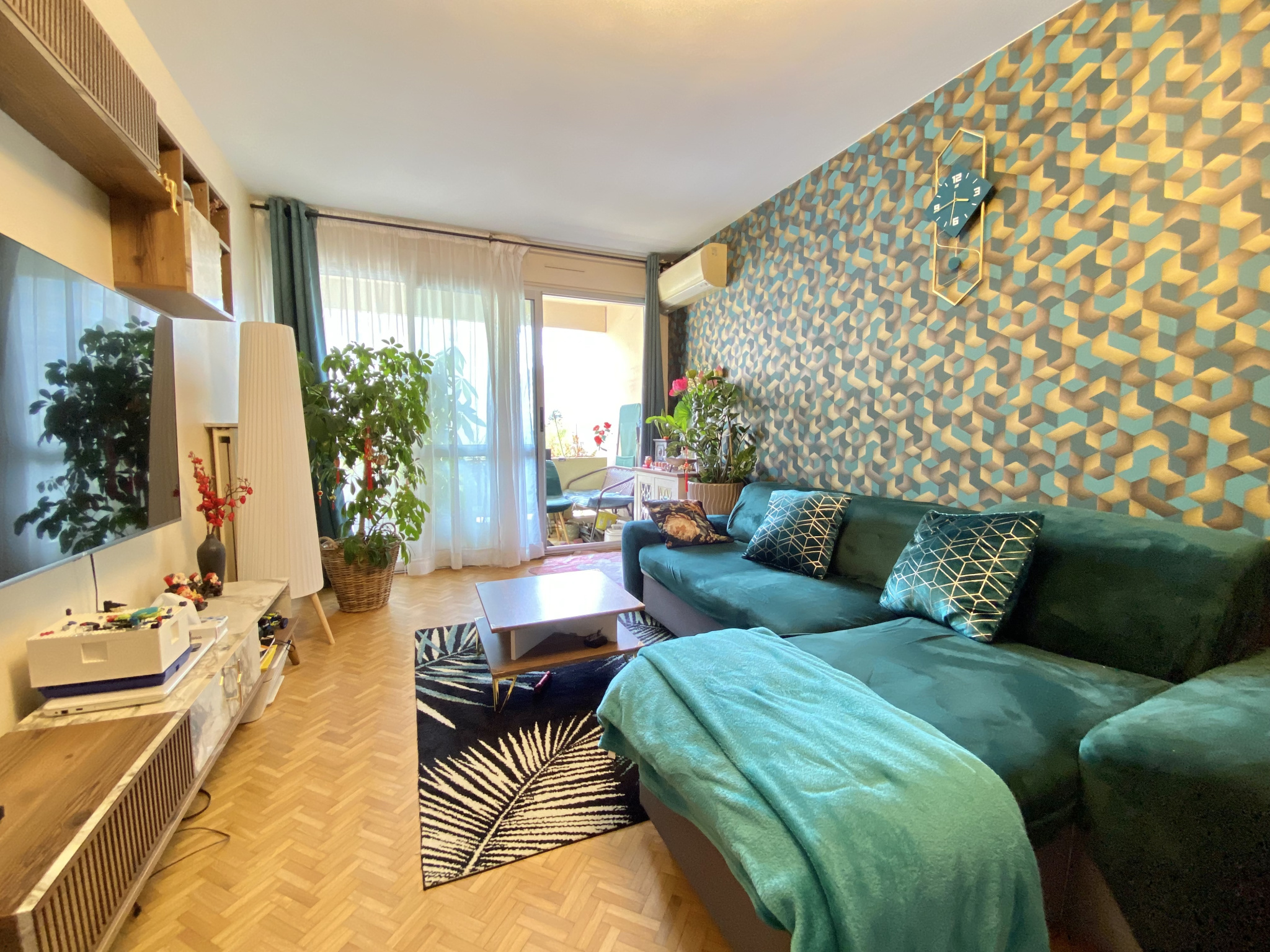 Il dispose d'une entrée avec un espace dressing, une cuisine équipée et rénovée ouverte sur séjour avec son cellier, un séjour lumineux avec balcon. 3 belles chambres avec balcons également. Une salle d'eau, 2 wcs dont 1 séparé. Beaucoup de rangement.