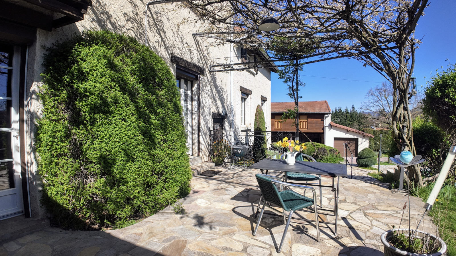 Les extérieurs disposent de belles prestations : piscine au sel et sécurisée sous dôme, terrasse exposée plein sud, jardin paysager, terrain de pétanque, trois garages (possibilité atelier ou stockage professionnel), chauffage gaz et cheminée, double vitrage et isolation performante, volumes complémentaires à aménager. Un véritable art de vivre se dégage des extérieurs : convivialité, sérénité et élégance.