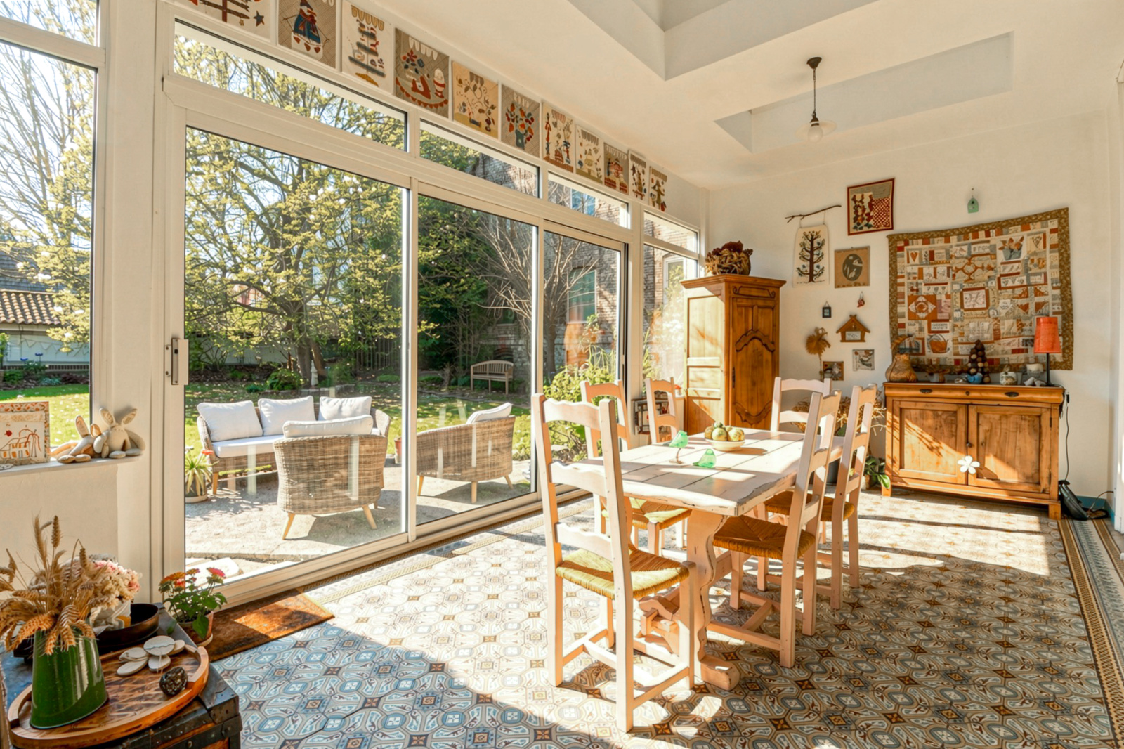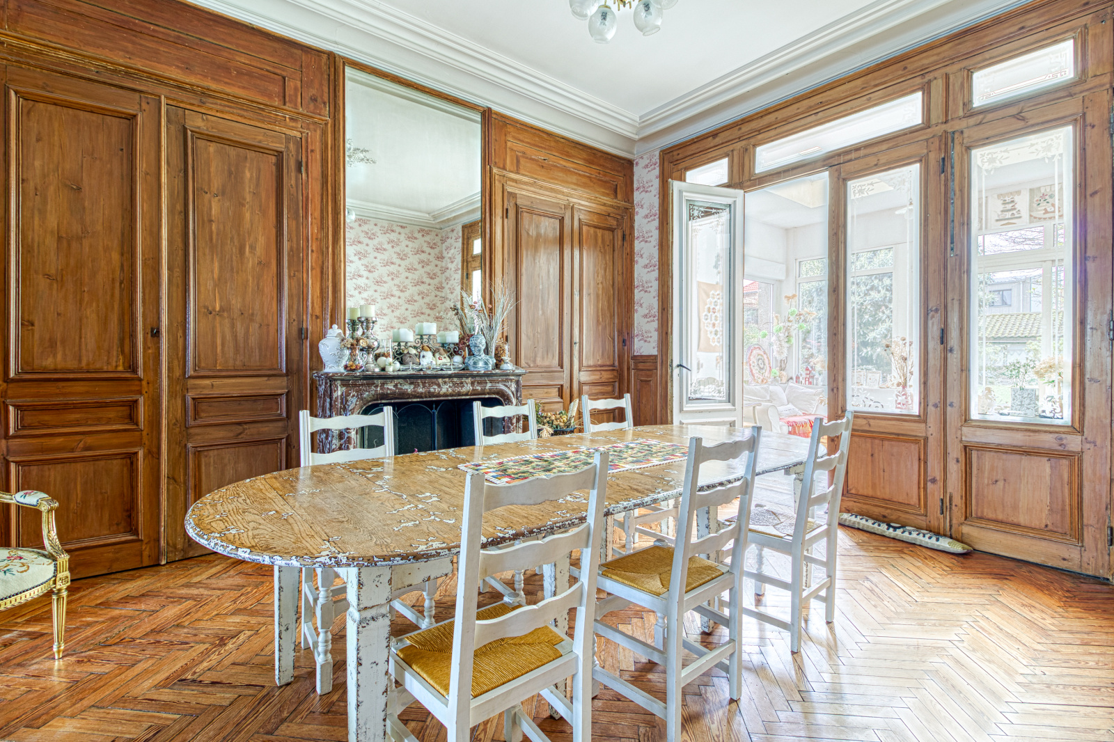 Le rez de chaussée se compose d'une spacieuse salle à manger permettant l'accueil des petits déjeuners, prolongée par une véranda lumineuse offrant une vue imprenable sur un magnifique jardin paysager. Une terrasse permet de profiter pleinement des extérieurs durant la saison estivale. Une cuisine entièrement équipée complète cet espace convivial et fonctionnel. Le salon dédié à la réflexion et à la lecture.