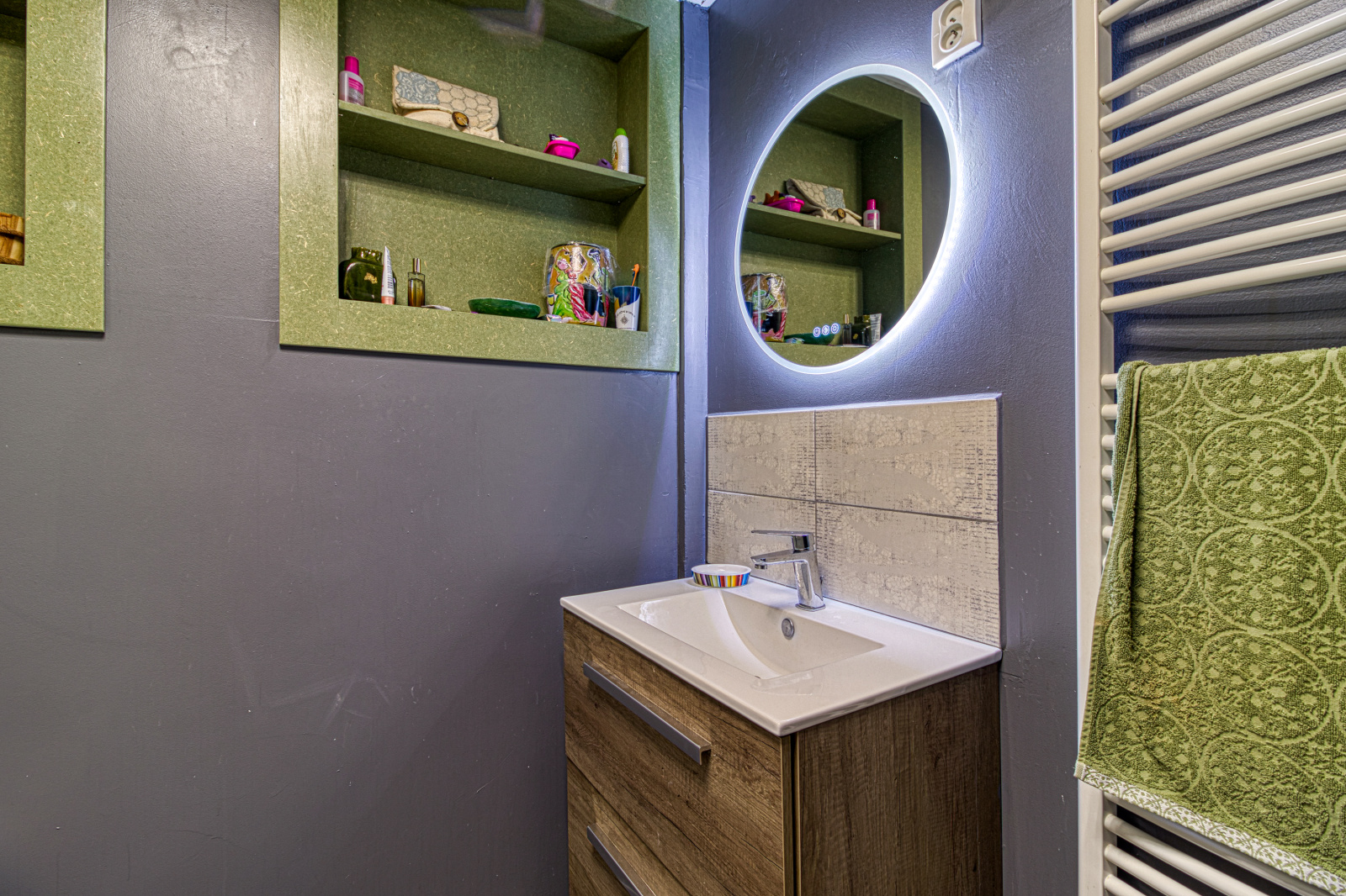 La maison dispose également, en rez de chaussée, d'un espace privatif pour les propriétaires, comprenant une chambre et une salle de bains, ainsi que des espaces fonctionnels ; lingerie, bureau, garage.