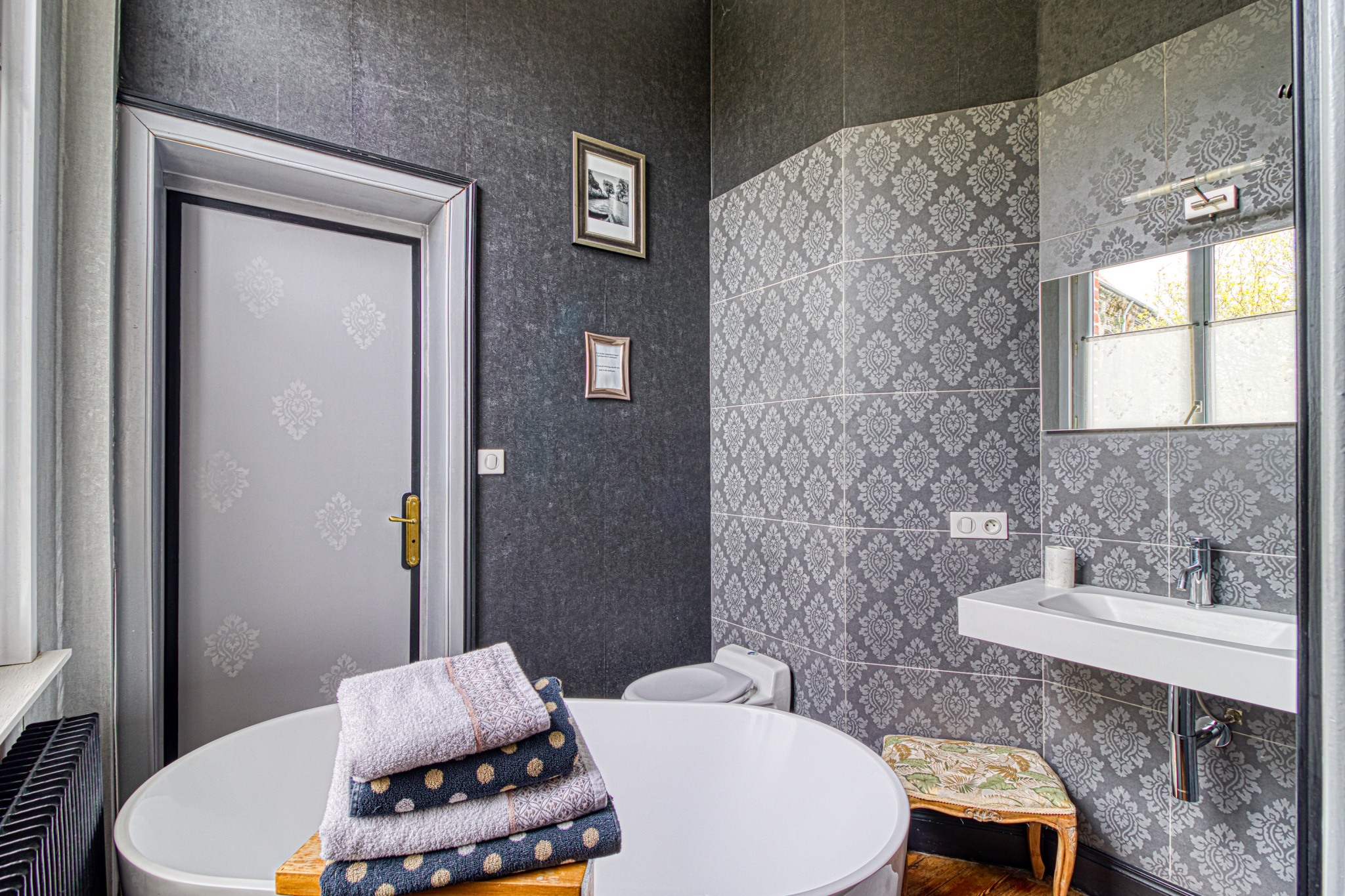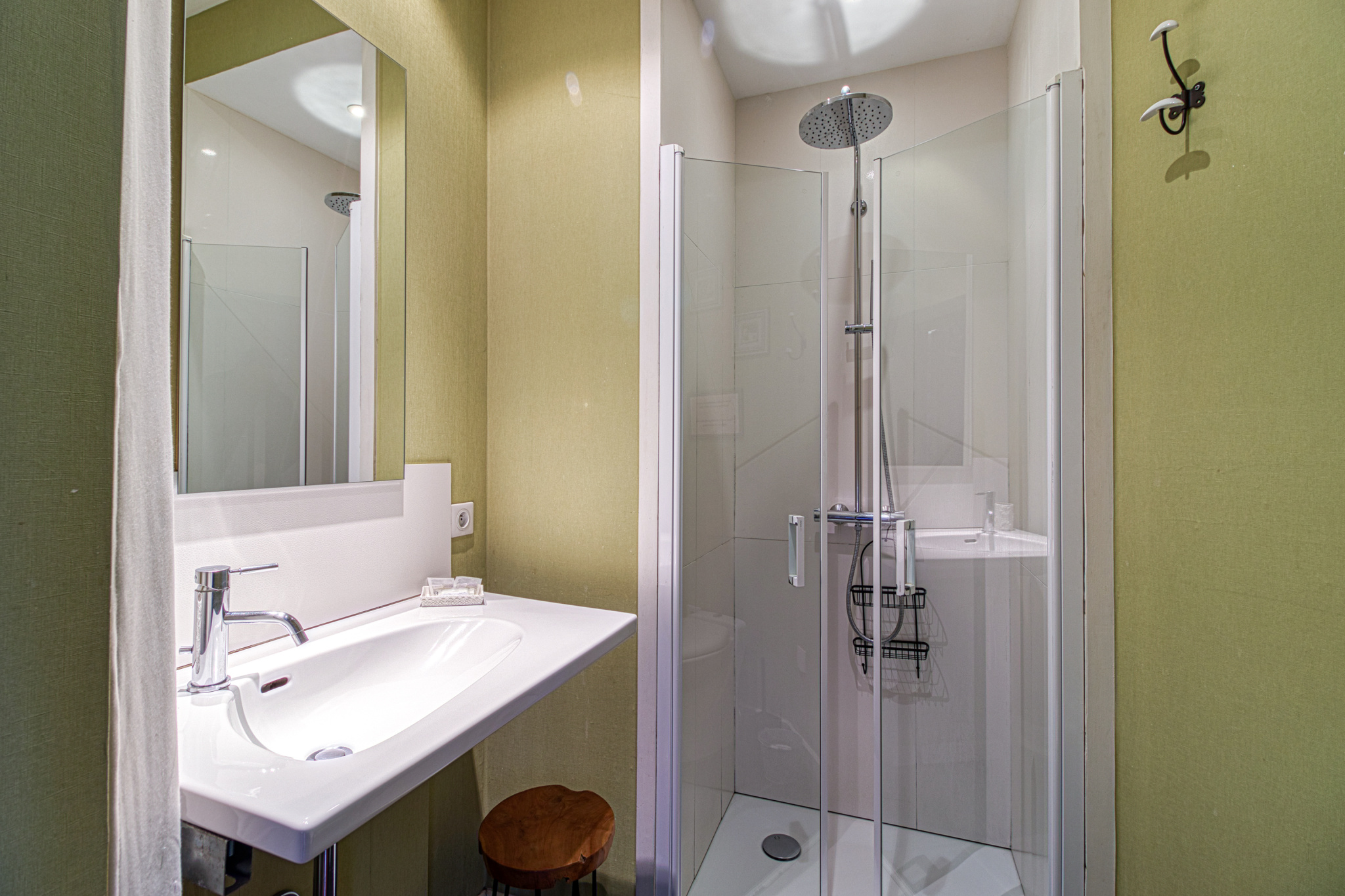Le premier étage accueille quatre chambres d'hôtes de charme, chacune disposant de sa salle d'eau privative aux finitions élégantes et aux ambiances singulières. Un bureau complète cet espace.