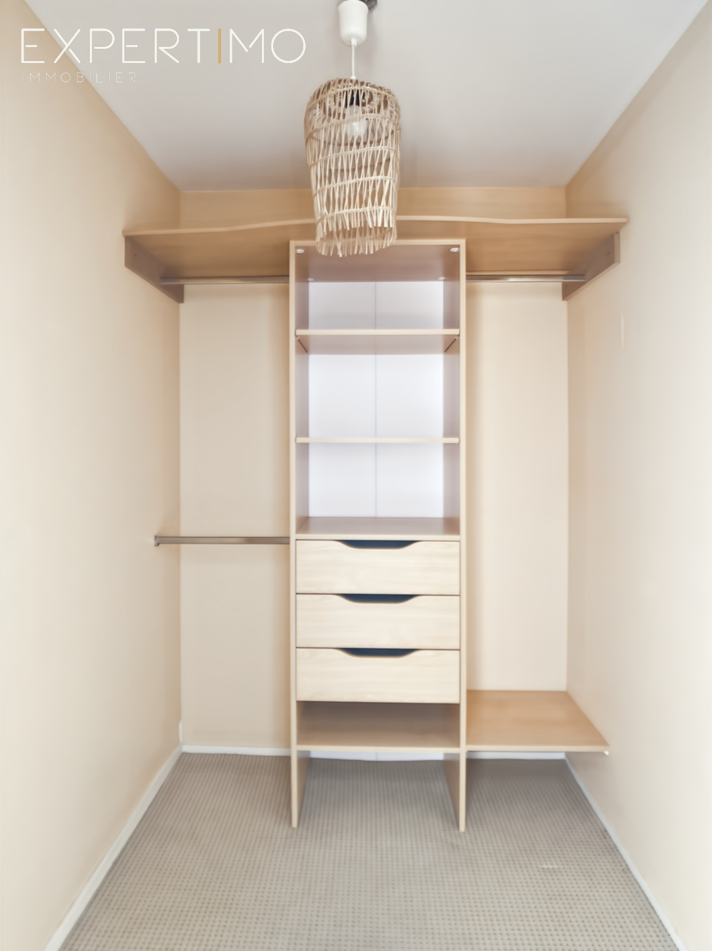 L’appartement comprend également une seconde chambre, une salle de bains, des toilettes séparées et plusieurs espaces de rangement.