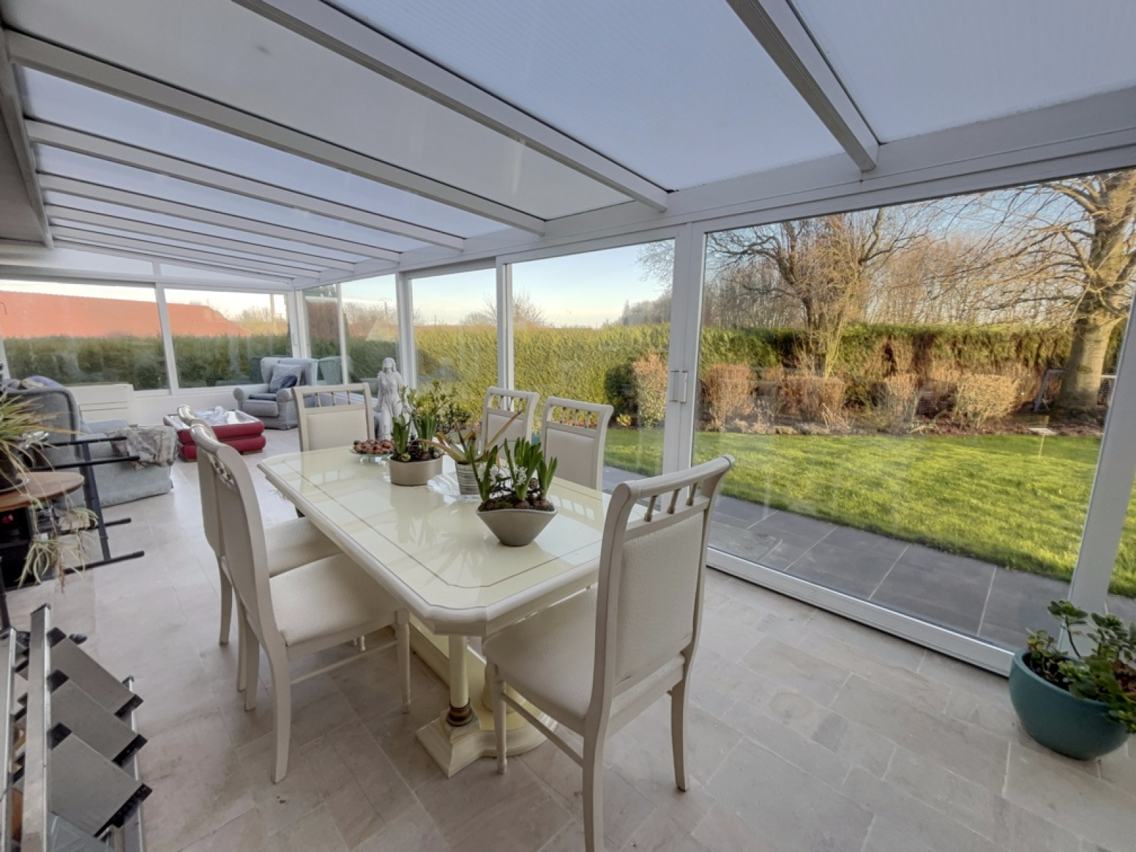 En prolongement une véranda de 36 m2, véritable pièce de vie supplémentaire, accueil un four à pizza pour des de partage.