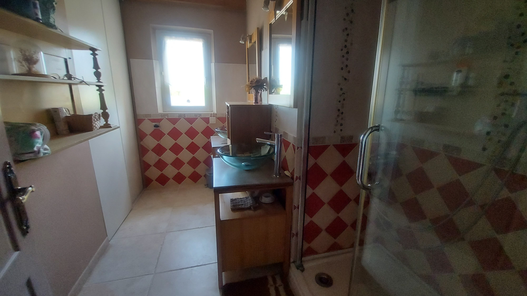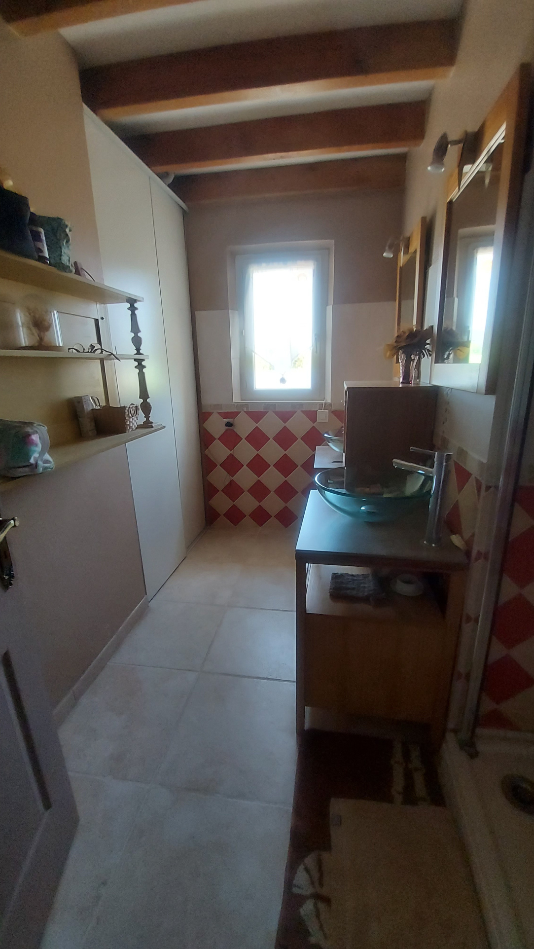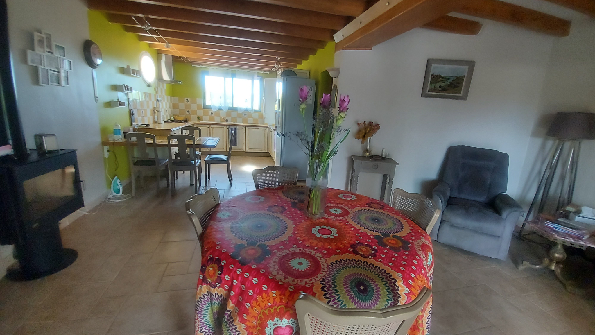 Prestations : menuiseries PVC et alu doube vitrage avec volets roulants, 2 poêles à bois, chauffage au sol par pompe à chaleur air/eau, 1 climatisation, eau de ville + 2 forages, micro-station - fibre en place - panneaux solaires neufs - VMC