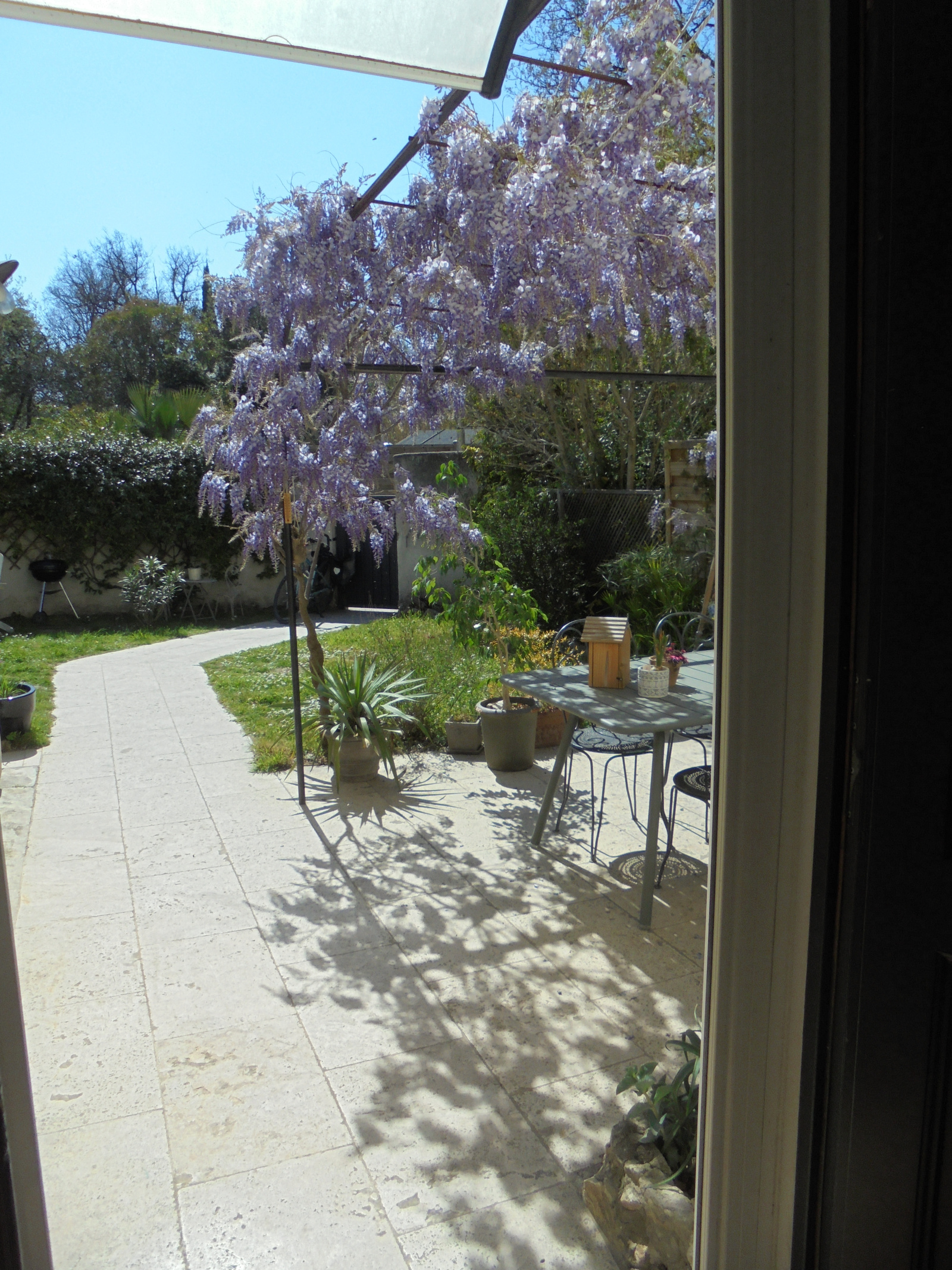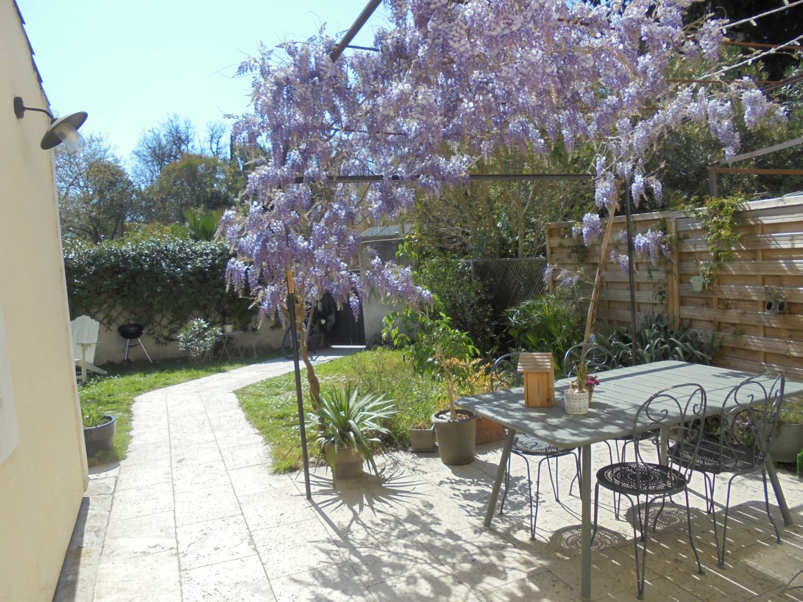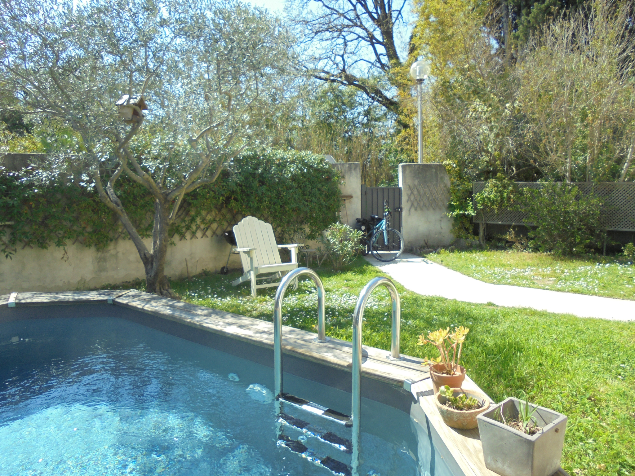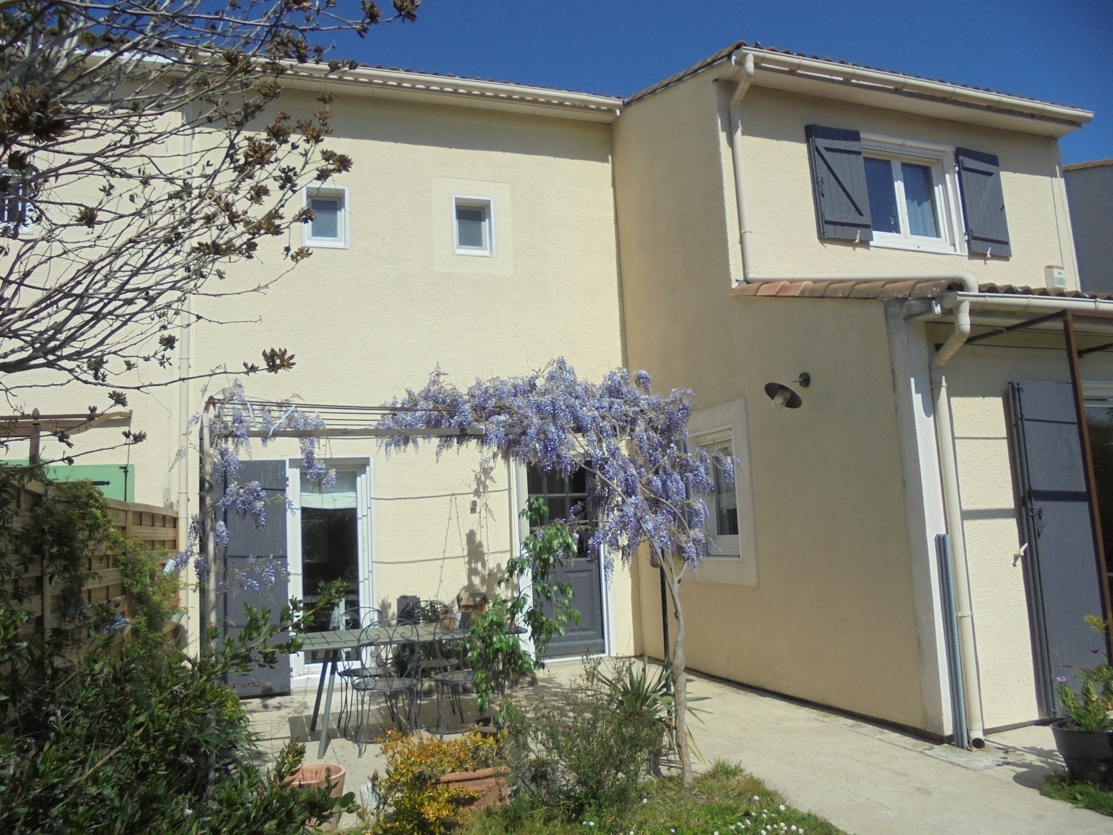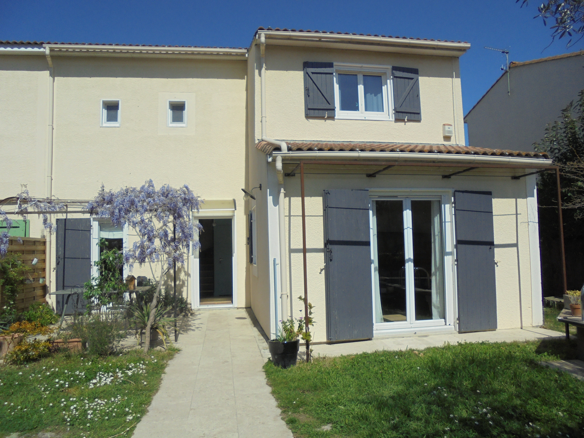 Prestations : menuiseries PVC double vitrage avec moustiquaires + porte bois , panneaux solaires avec rapport de 1900€/an, volets bois, gouttières, climatisation étage, chaudière gaz de ville, parquet flottant, alarme par capteurs, arrosage automatique, eau de ville, tout à l'écout, eau du canal, terrasse, piscine 4 x 2,5