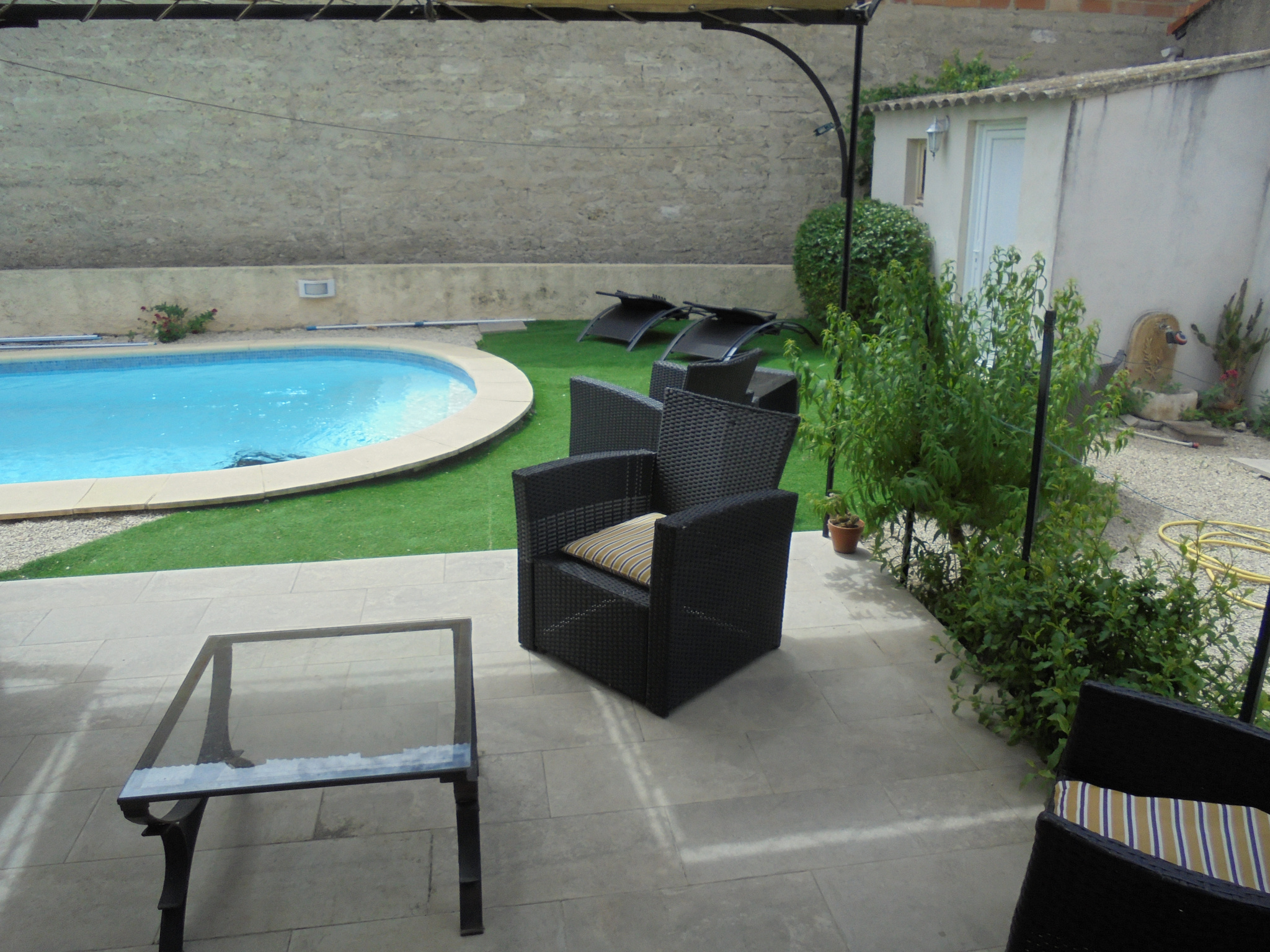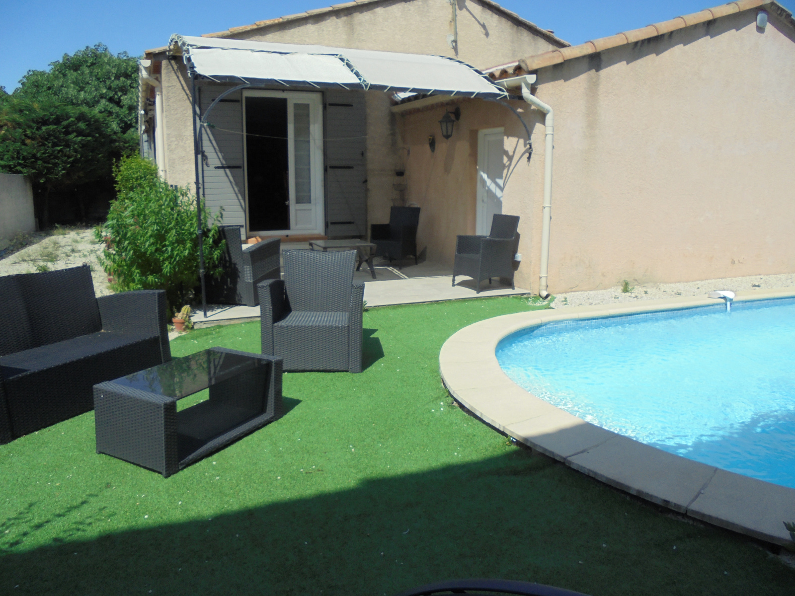 *** VENDU *** EXCLUSIVITE ! A 5 min de Saint-Rémy-de-Provence, dans quartier calme, à pied du centre, jolie maison de plain-pied de 102 m2 avec garage attenant de 22 m2 sur terrain clos et arboré de 715 m2 avec piscine de 8 X 3,70. Elle offre une belle pièce de vie avec cuisine verrière entièrement équipéee, trois chambres, une buanderie, deux w.c., une salle d'eau et des placards de rangement. Maison qualitative année 1990 entièrement rénovée en 2015 (menuiseries, électricité et plomberie neuves, doublage cloisons, cuisine et salle d'eau neuves, sols, peintures...)