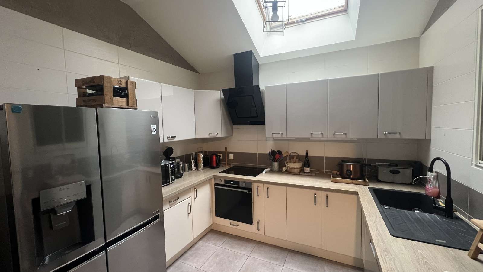 CENTRE VILLARS LES DOMBES T3 d'environ 95m2 avec grenier aménageable ( pas de division possible) composé : d'une entrée, buanderie/cellier, cuisine équipée fermée, vaste pièce à vivre d'environ 33m2 avec salle à manger et coin salon cosy comprenant un poêle à bois. De plus 2 chambres d'environs 14m2 et 10m2 avec placard, salle de bains, ainsi qu’un WC séparé complètent le bien . Menuiseries PVC double vitrage avec volets électriques, Chauffage/clim par pompe à chaleur et radiateurs électriques AUCUN travaux à prévoir !!!