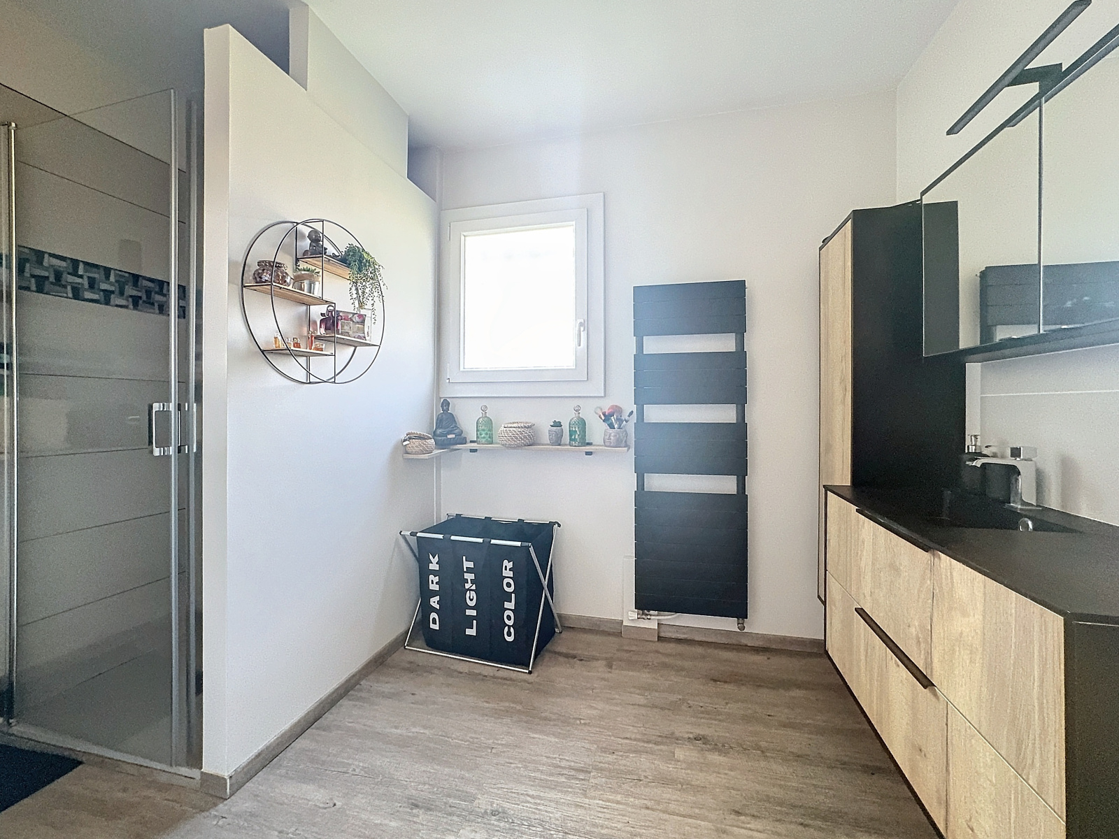 Centre village Saint Jean de Thurigneux, avec transport scolaire direct pour le collège de Saint André de Corcy, découvrez cette charmante villa construite en 1999, mais entièrement rénovée depuis 2017 (cuisine, façade et apenti en 2018, Fenêtres et peintures en 2020, salle d'eau en 2021), idéale pour une vie familiale paisible. La maison offre un demi sous sol proposant une buanderie, un vaste garage pouvant facilement acceuillir 2 voitures et atelier pour les bricoleurs. La pièce de vie multiexpositions lumineuse donne directement sur le jardin aménagé et paysagé avecpiscine exposée Sud, et un espace arriere abrité plus frais pour des repas moins exposés au soleil. Seulement quelques marches au dessus, Au demi niveau superieur, on retrouve les 4 chambres, le second WC et et lasalled'eau toute refaite.