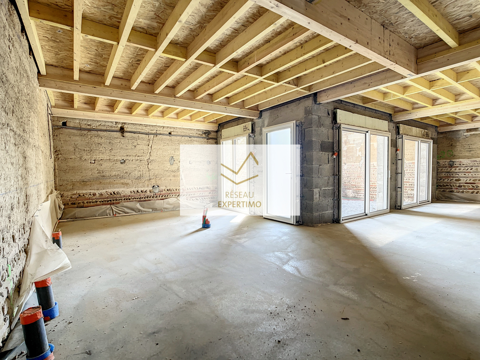BANEINS : A 100 mètres des écoles, cette grange en pisè est vendue en plateau à aménager de 60m² au sol sur deux niveaux : potentiel de 4 chambres dont une suite parentale de plain pied.Une terrasse couverte de 26 m² environ avec puits de lumière et un jardin de 70m² (dont deux stationnements) complètent l'ensemble: (terrain de 181m² dont maison). Le gros oeuvre est sous garantie décennale: les tuiles (2018), La maçonnerie (2022) les huisseries aluminium avec volets roulants électrique (2022) et la façade (2021 et en cours). Au rez de chaussée, une chappe béton est coulée, et au 1er étage un plancher Osb est réalisé. Il vous restera le second oeuvre à votre gout à aménager.(isolation, électricité, plomberie, carrelage, parquet , déco et escalier intérieur ) afin de mélanger le charme de l'ancien et le confort de la modernité. Le plateau est viabilisé électricité, eau, relié au tout à l'égout et les fourreaux pour la fibre sont tirés.Prestations : Huisserie K-Line, volets roulants Budenndorff...