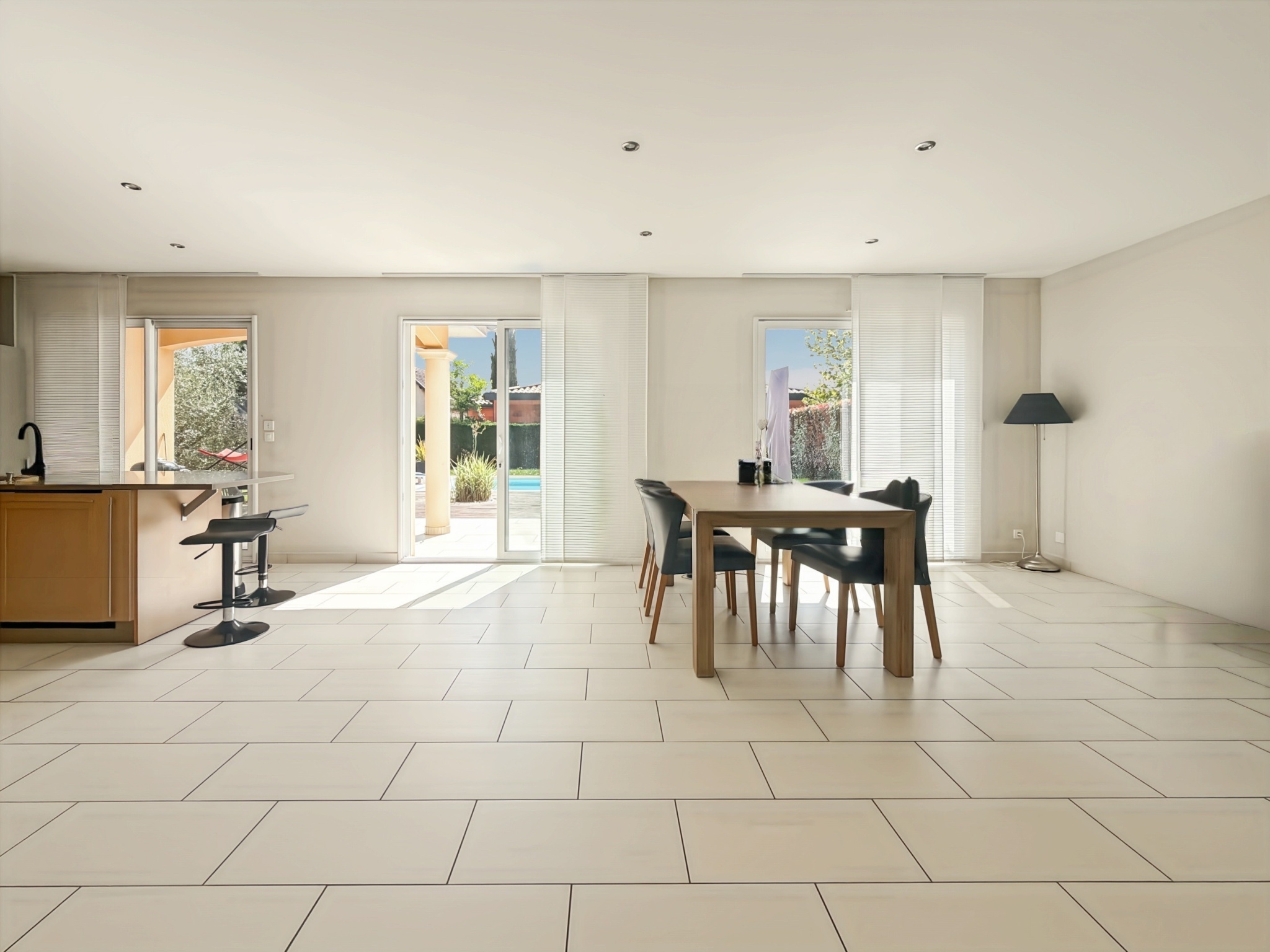 Côté extérieur, la maison dispose d’un terrain d’environ 850 m², offrant un bel espace de détente avec piscine, parfait pour profiter des beaux jours. Un grand garage double de 45 m² complète ce bien, apportant un vrai confort au quotidien avec de nombreuses possibilités de stationnement, de rangement ou d’aménagement.