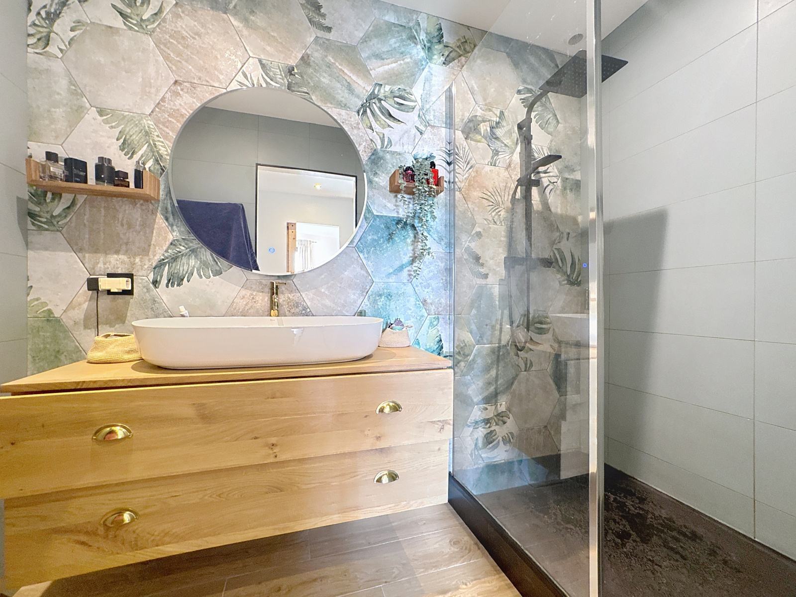 De plain-pied, la suite parentale de 21 m² s’inscrit dans la même ambiance douce et élégante : un accès direct à une terrasse exposée sud-ouest, un dressing, et une salle d’eau qui mêle subtilement modernité et esprit authentique. Le niveau comprend également une buanderie équipée d’un adoucisseur d’eau ainsi qu’un wc indépendant.