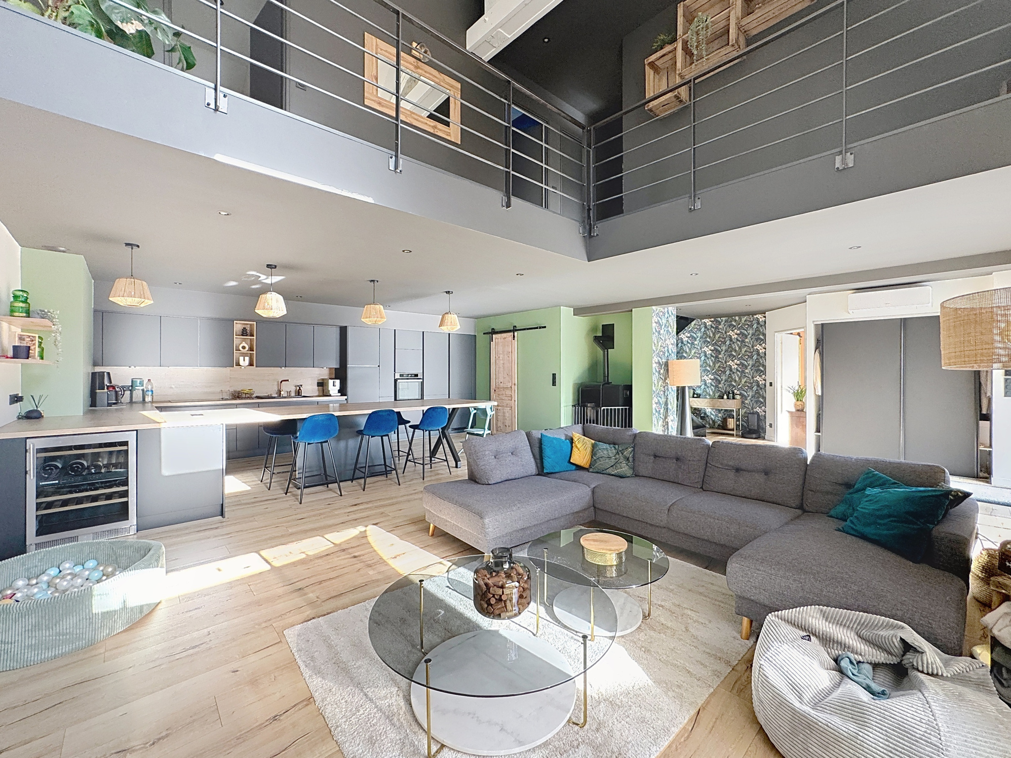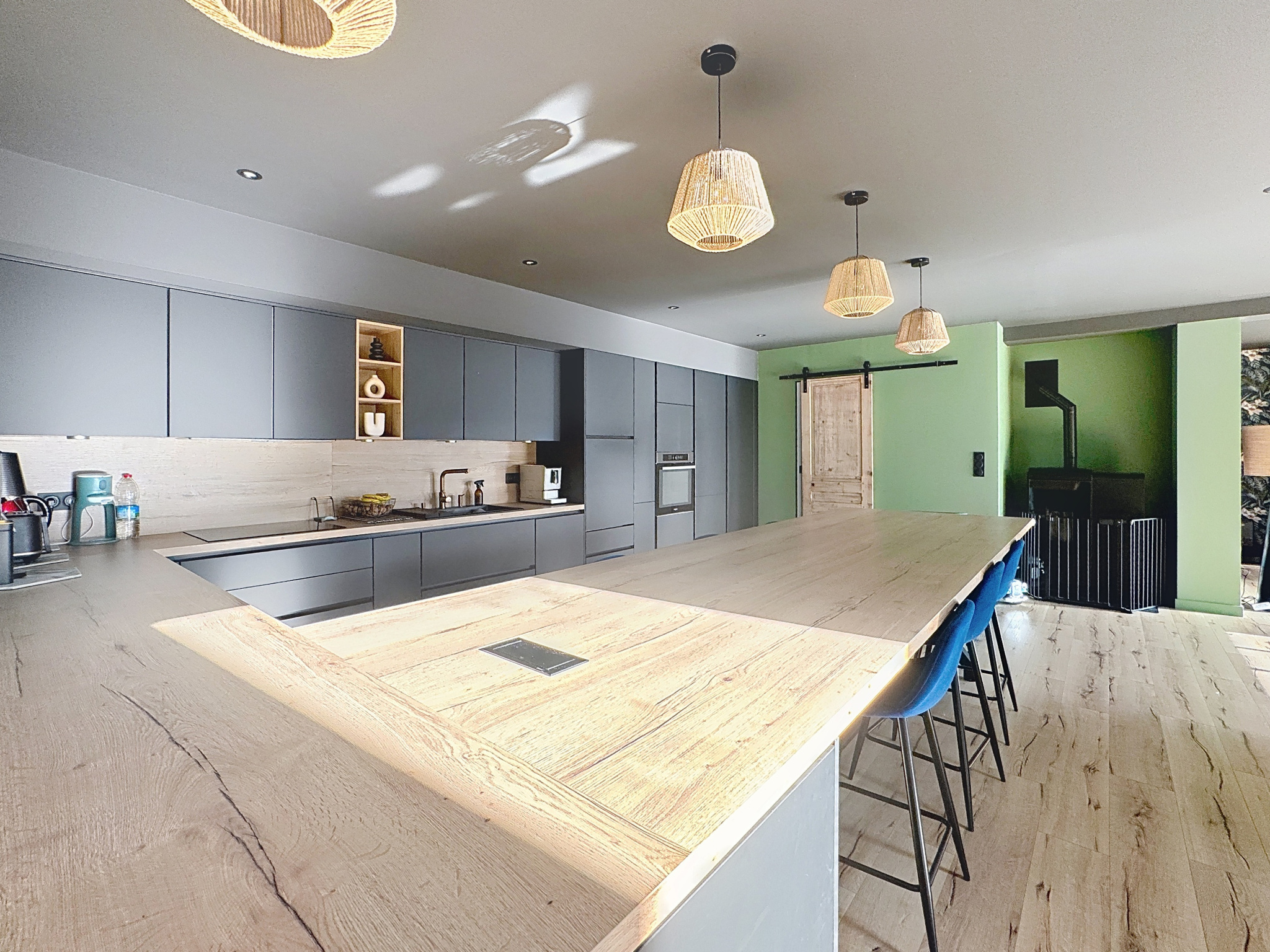 Cette maison a été conçue pour offrir une qualité de vie optimale, avec une isolation performante, un poêle à granulés et une pompe à chaleur permettant aussi bien de chauffer que de rafraîchir les pièces selon les saisons. L’ensemble crée une atmosphère harmonieuse, conviviale et résolument cocooning, du jardin jusqu’aux espaces intérieurs.