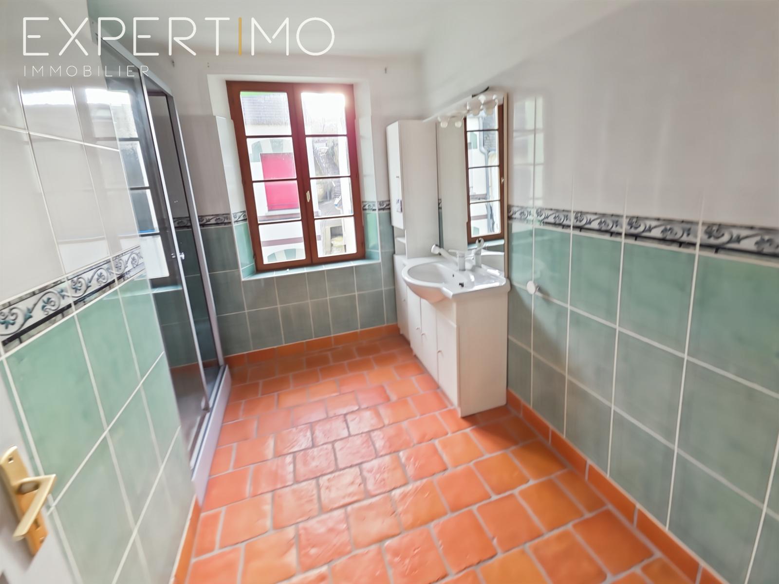 Le premier étage dessert, via un palier, une chambre avec placard, ainsi qu’une salle d’eau avec WC.