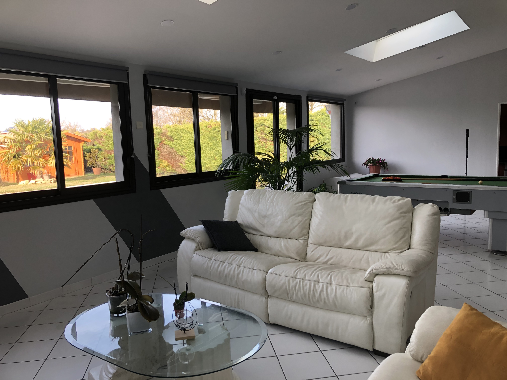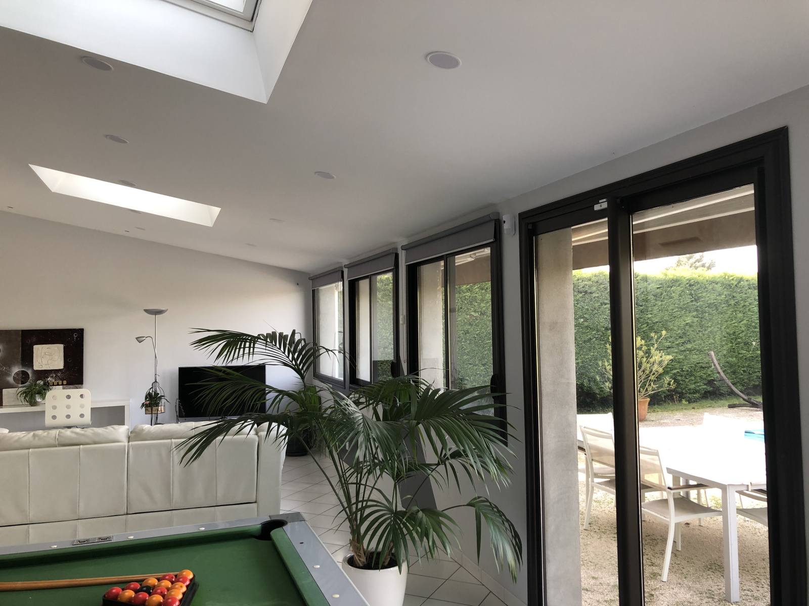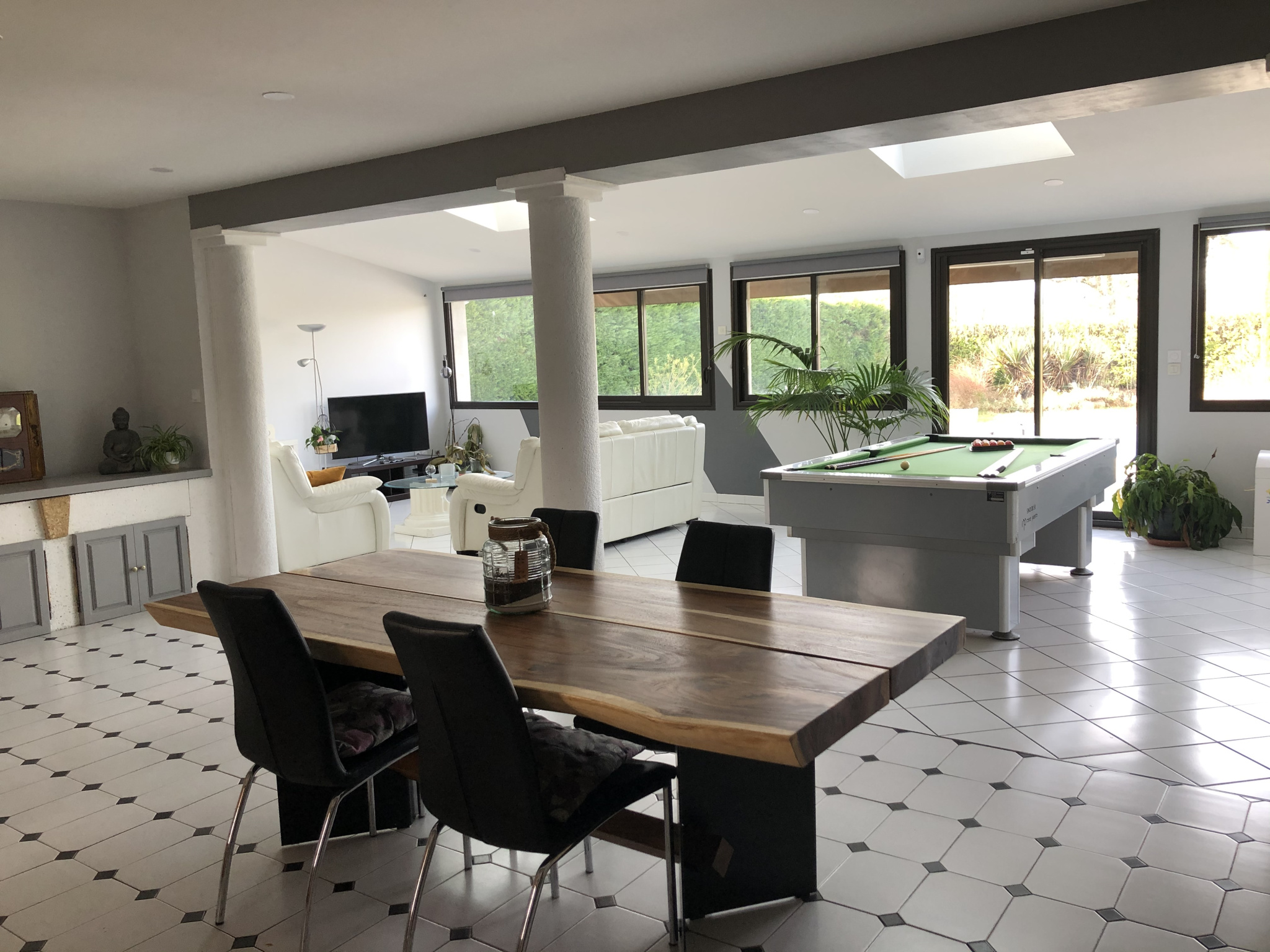 Dans un environnement calme, cette très belle maison d'une surface utile de 172 m² (145 m² Carrez) sur un terrain plat et arboré de 1100 m² est agrémentée d’une piscine de 8 m X 4 m. Le rez-de chaussée climatisé est baigné de lumière par de larges baies vitrées. Il est composé d’un espace de vie de 83 m² exposé Sud avec accès direct sur le jardin et la piscine, d’une cuisine ouverte entièrement équipée et d’une chambre de 15 m² également climatisée avec salle d’eau attenante.