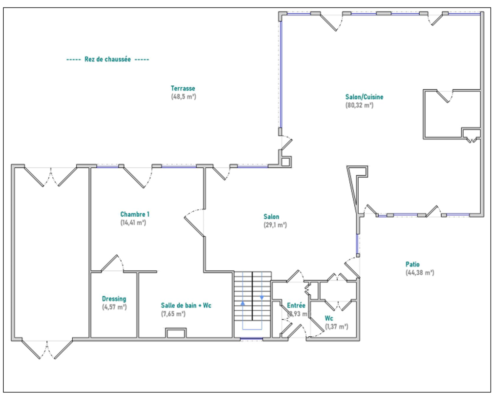 La pièce de vie, d’environ 110 m², propose de beaux volumes avec plusieurs espaces ouverts. La cuisine s’ouvre sur un salon hors norme, baigné de lumière grâce à de larges ouvertures permettant un ensoleillement optimal tout au long de la journée. L’ensemble s’articule autour d’une élégante cheminée à double insert, véritable pièce maîtresse de la maison. Une spacieuse suite parentale avec dressing et salle de bains privative complète ce niveau.