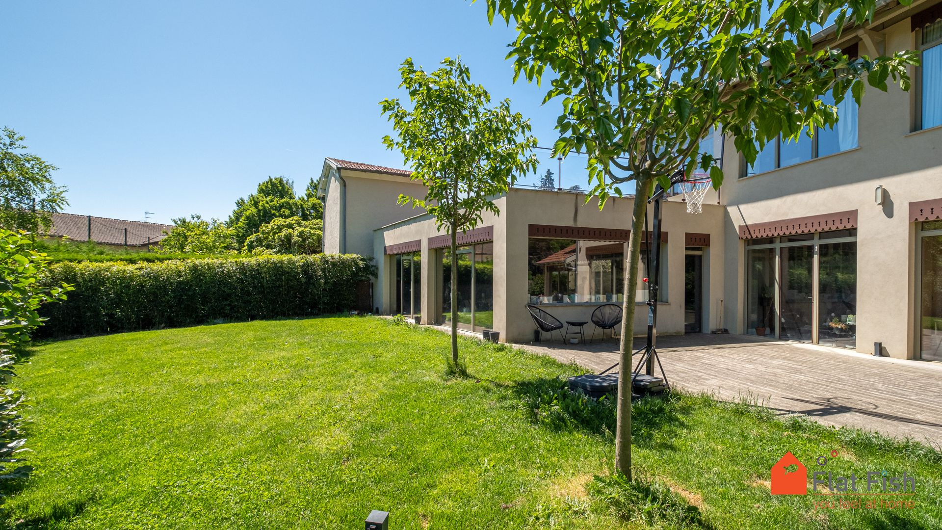 Située en plein cœur de Chaponost, à proximité immédiate des écoles, des commerces et des transports, cette maison de caractère d’environ 230 m², édifiée sur une parcelle de 650 m², a fait l’objet d’une rénovation haut de gamme avec extension contemporaine en 2020.