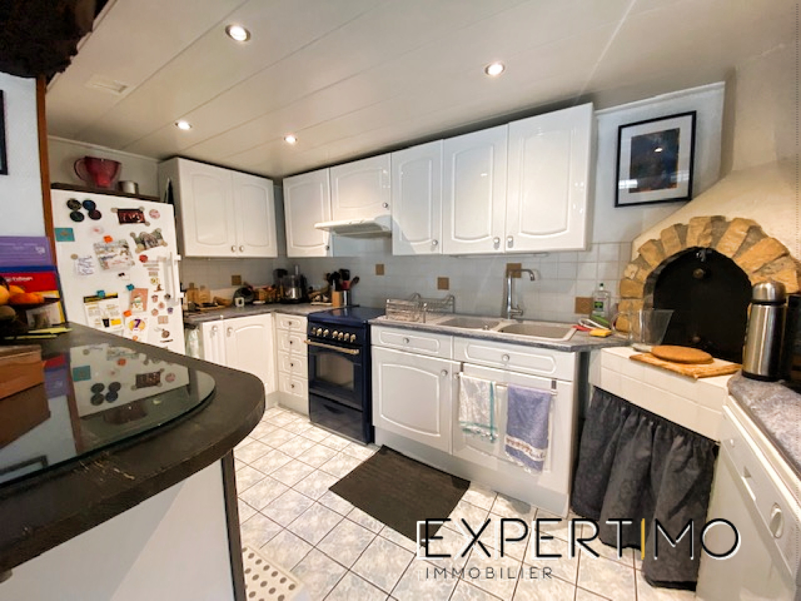 Suit la cuisine ouverte d'environ 9m² équipée d'un four à pizza avec accès à la grande terrasse au calme exposée sud ouest.