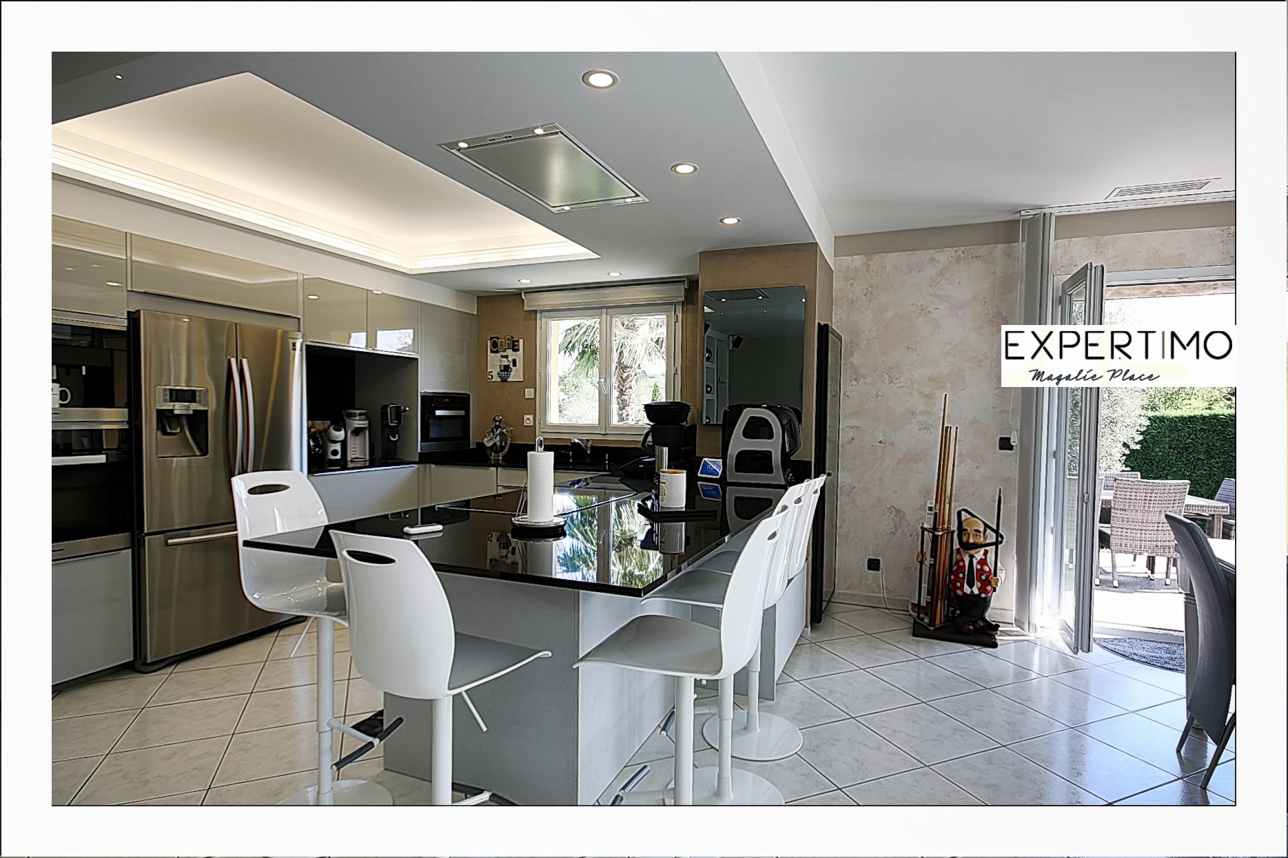 Une cuisine pour recevoir avec toutes les prestations possibles pour rendre la cuisine plus facile et agréable dans cette vaste pièce à vivre de 65m² .