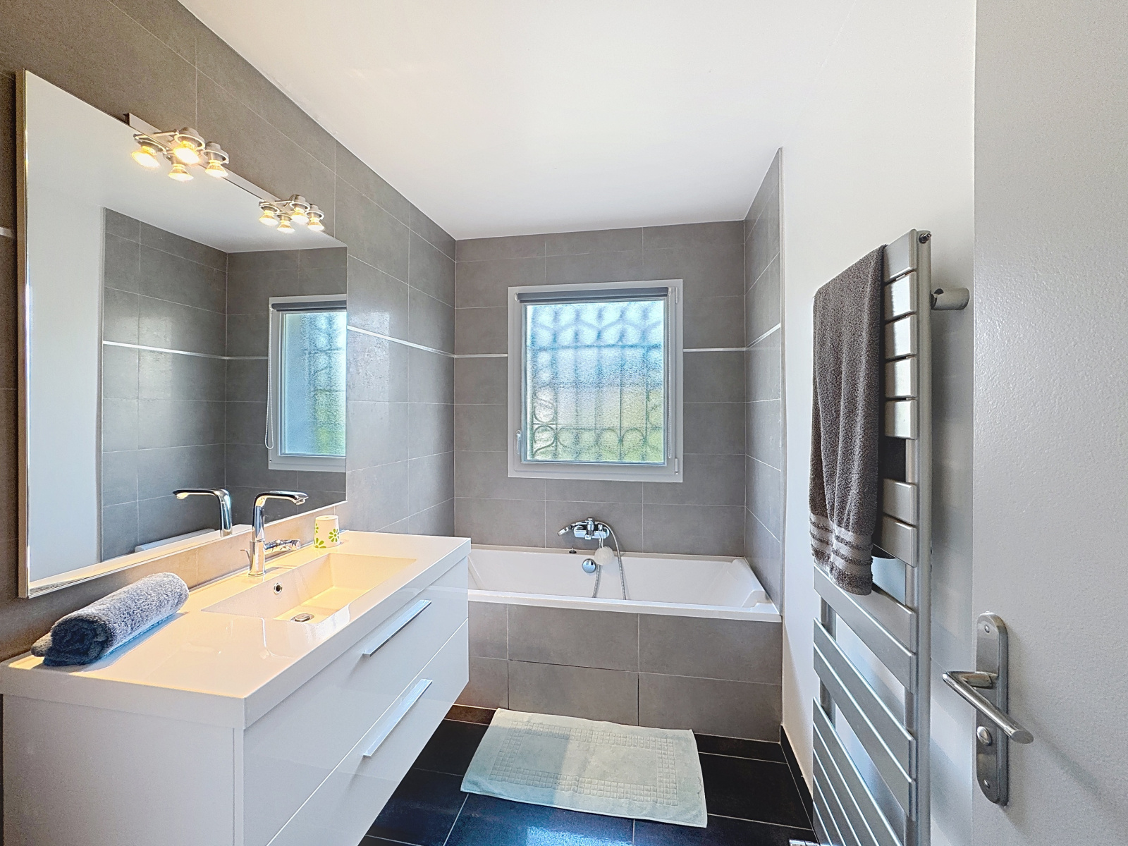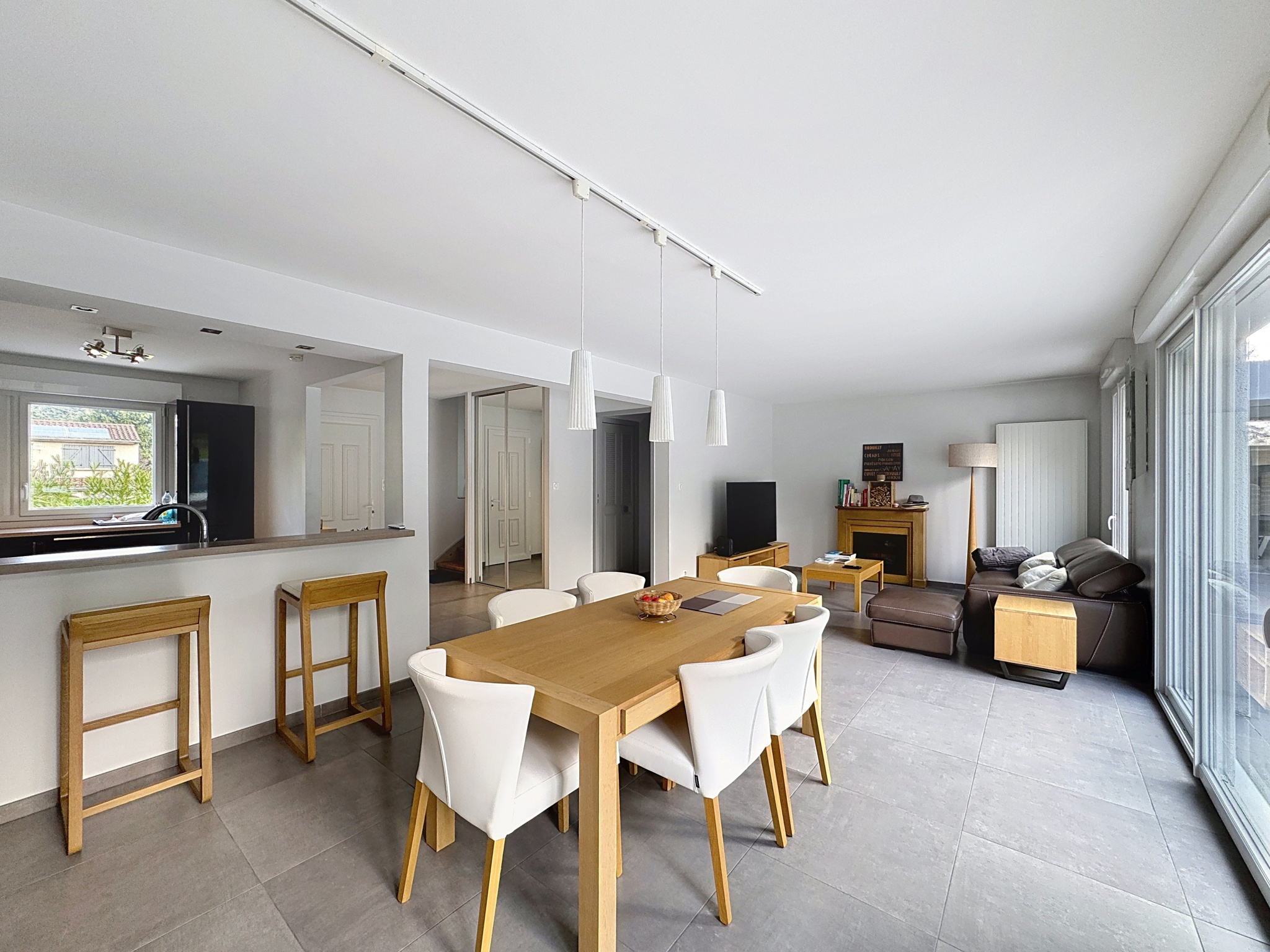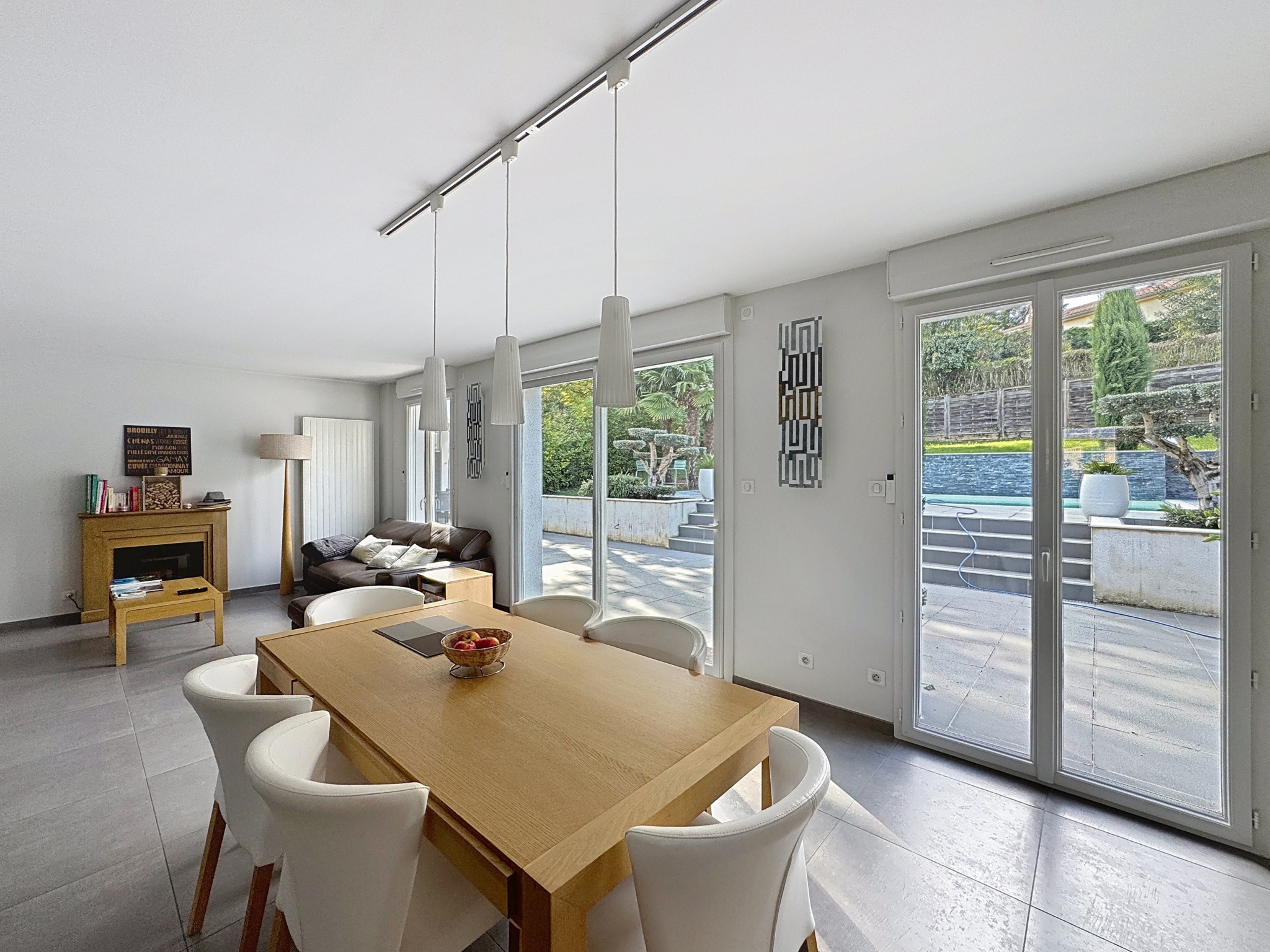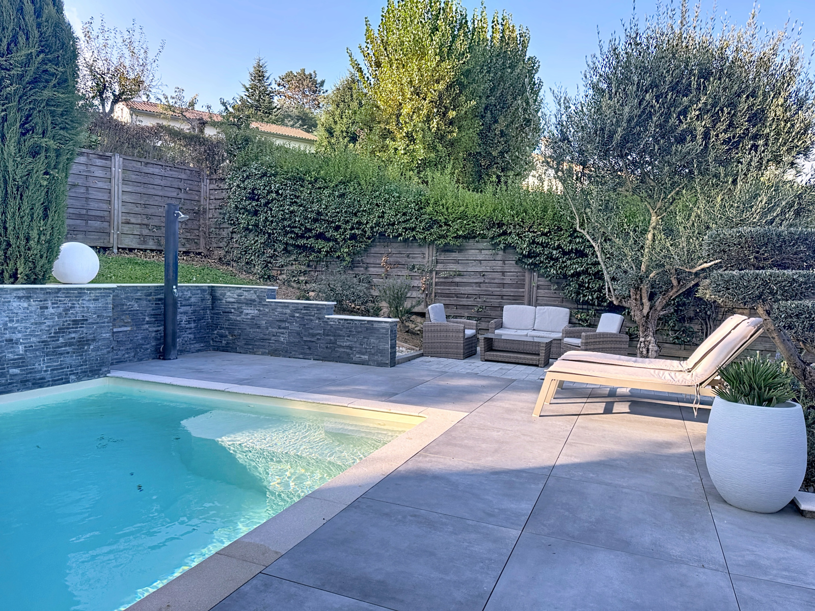 Édifiée dans les années 1970 puis entièrement rénovée en 2010, la maison séduit dès l’entrée par ses volumes généreux et sa luminosité. La vaste pièce de vie s’ouvre sur une cuisine contemporaine entièrement équipée et aménagée, conviviale et élégante, prolongée par un séjour baigné de lumière en après midi. De grandes baies vitrées offrent un accès direct à la terrasse et à la piscine chauffée et sécurisée par un volet roulant extérieur électrique créant une harmonie parfaite entre intérieur et extérieur.