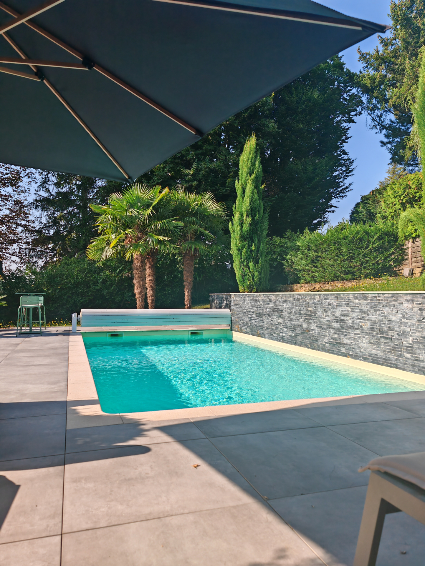 Piscine chauffée traitement au sel avec pompe enterrée pour un fonctionnement silencieux,