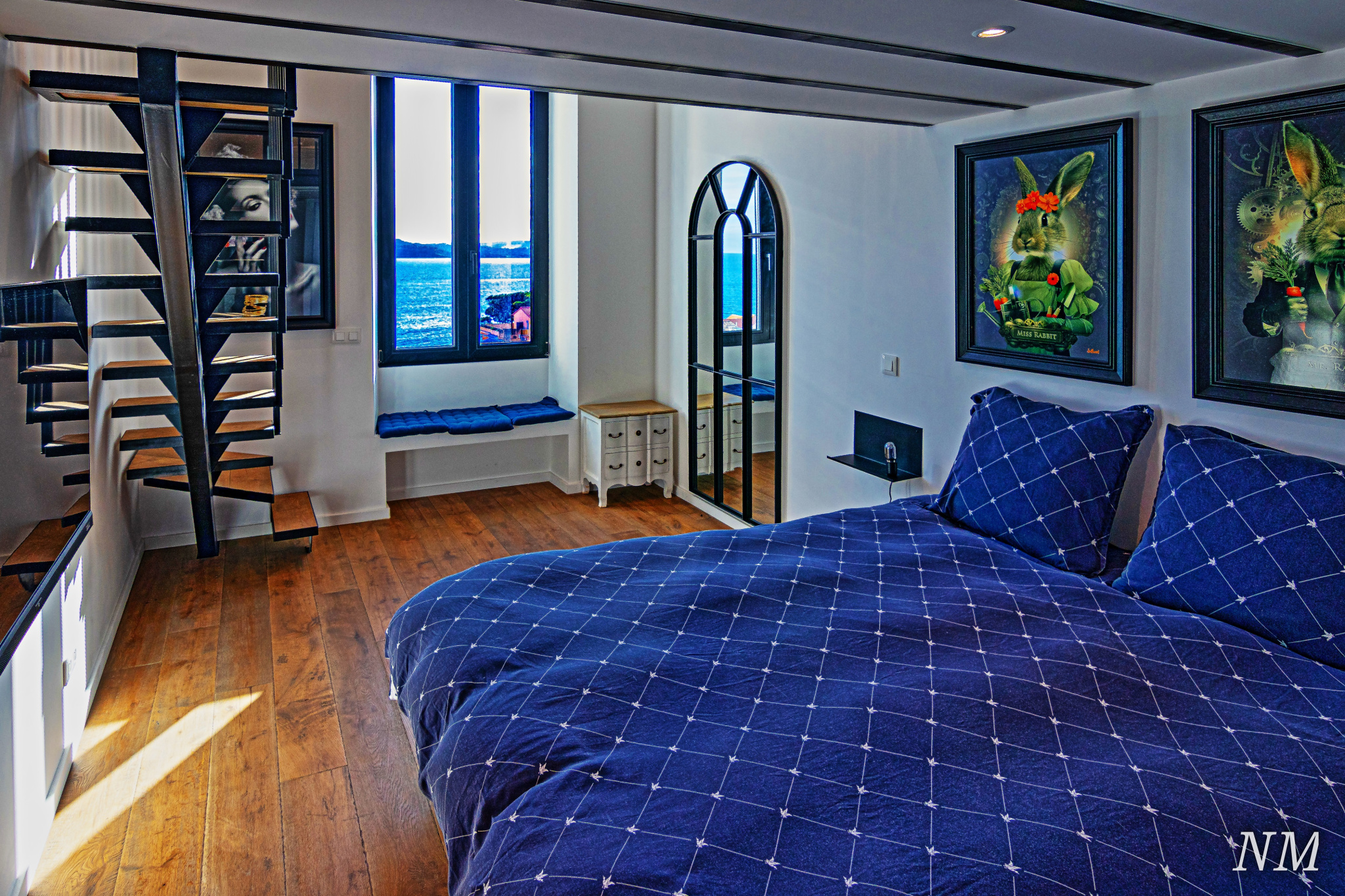 Disposant de deux chambres , d'une mezzanine, d'une cuisine entièrement équipée, avec sa cave à vin, d’un balcon , permettant une petite table et 2 chaises pour contempler une vue fantastique en savourant son café .