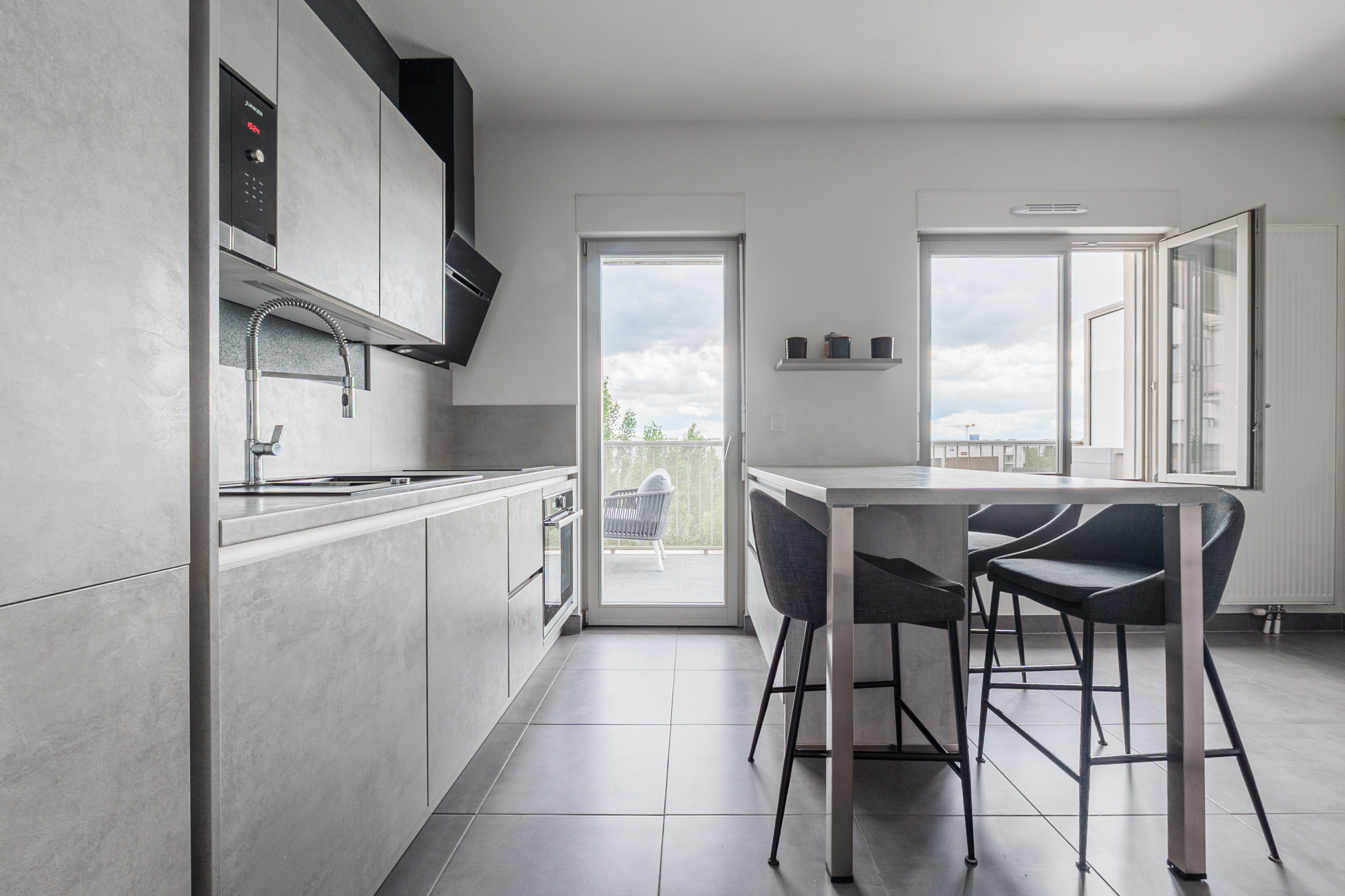 - Cuisine ouverte entièrement équipée, moderne et conviviale
