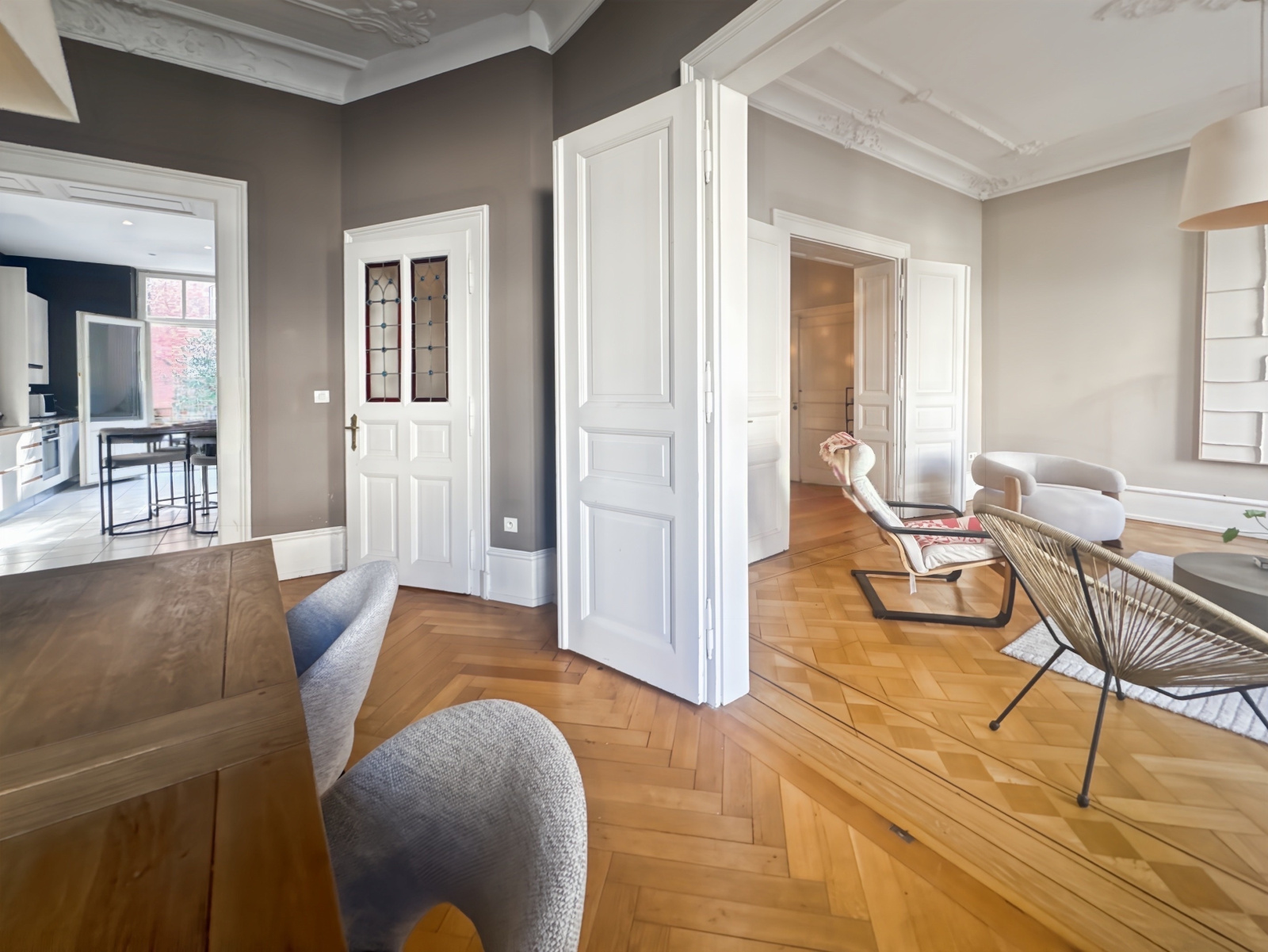 Venez découvrir ce magnifique appartement 7 pièces en duplex situé dans une rue d'exception du prestigieux quartier de l'Orangerie à Strasbourg.