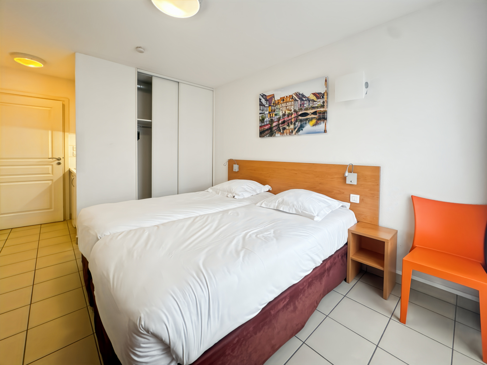 À vendre, dans le quartier de la Meinau, ce studio de 18,42 m2 situé au deuxième étage de la très jolie résidence de tourisme CERISE achevée en 2008.