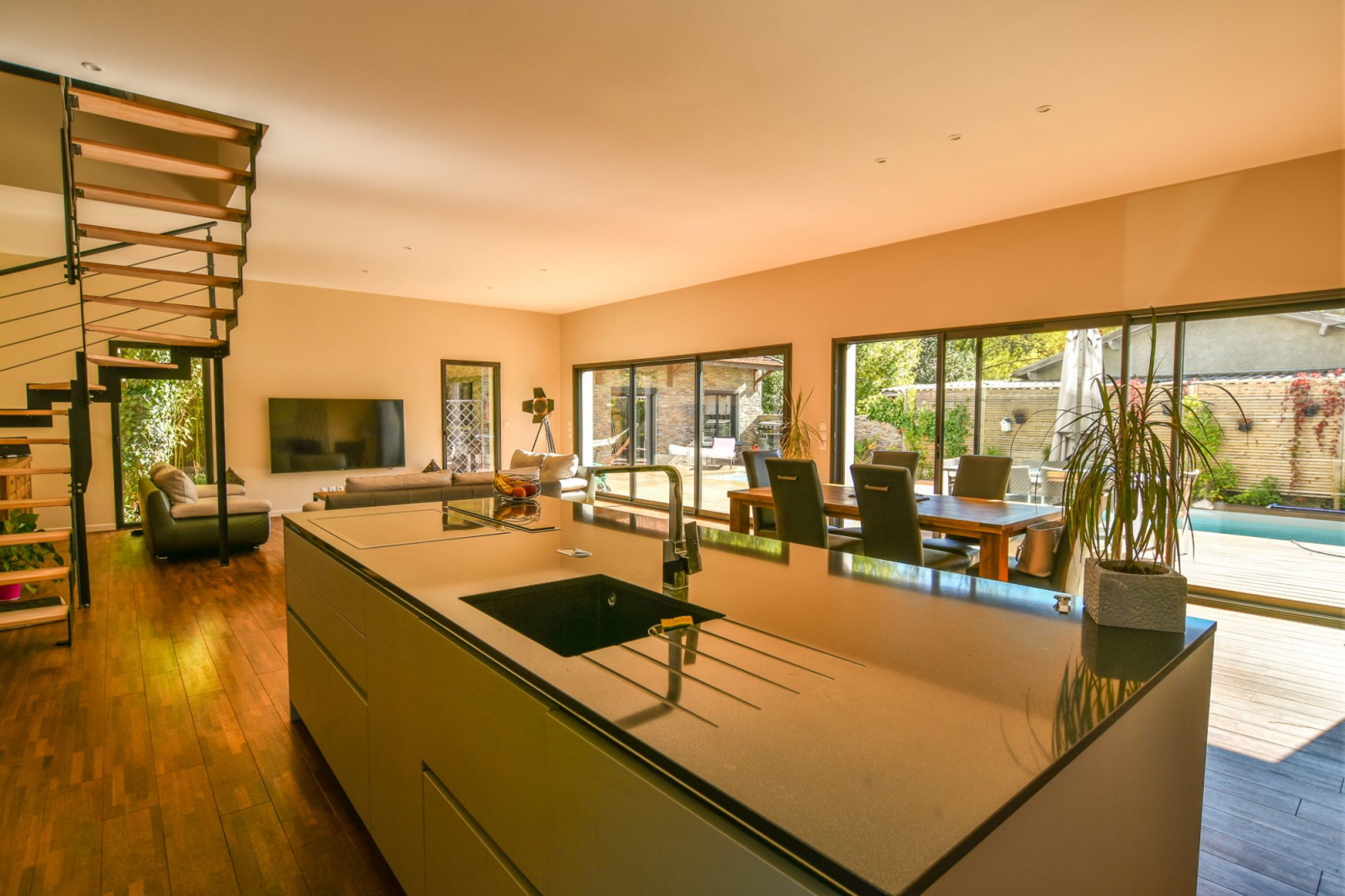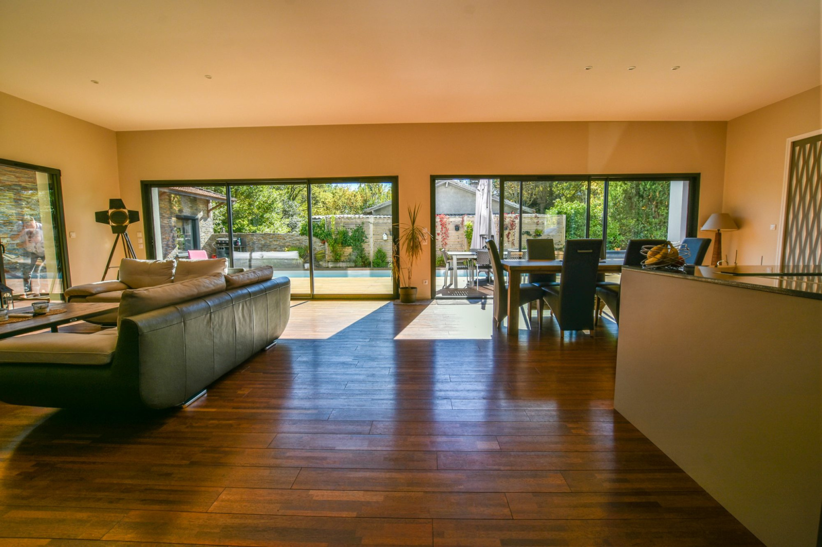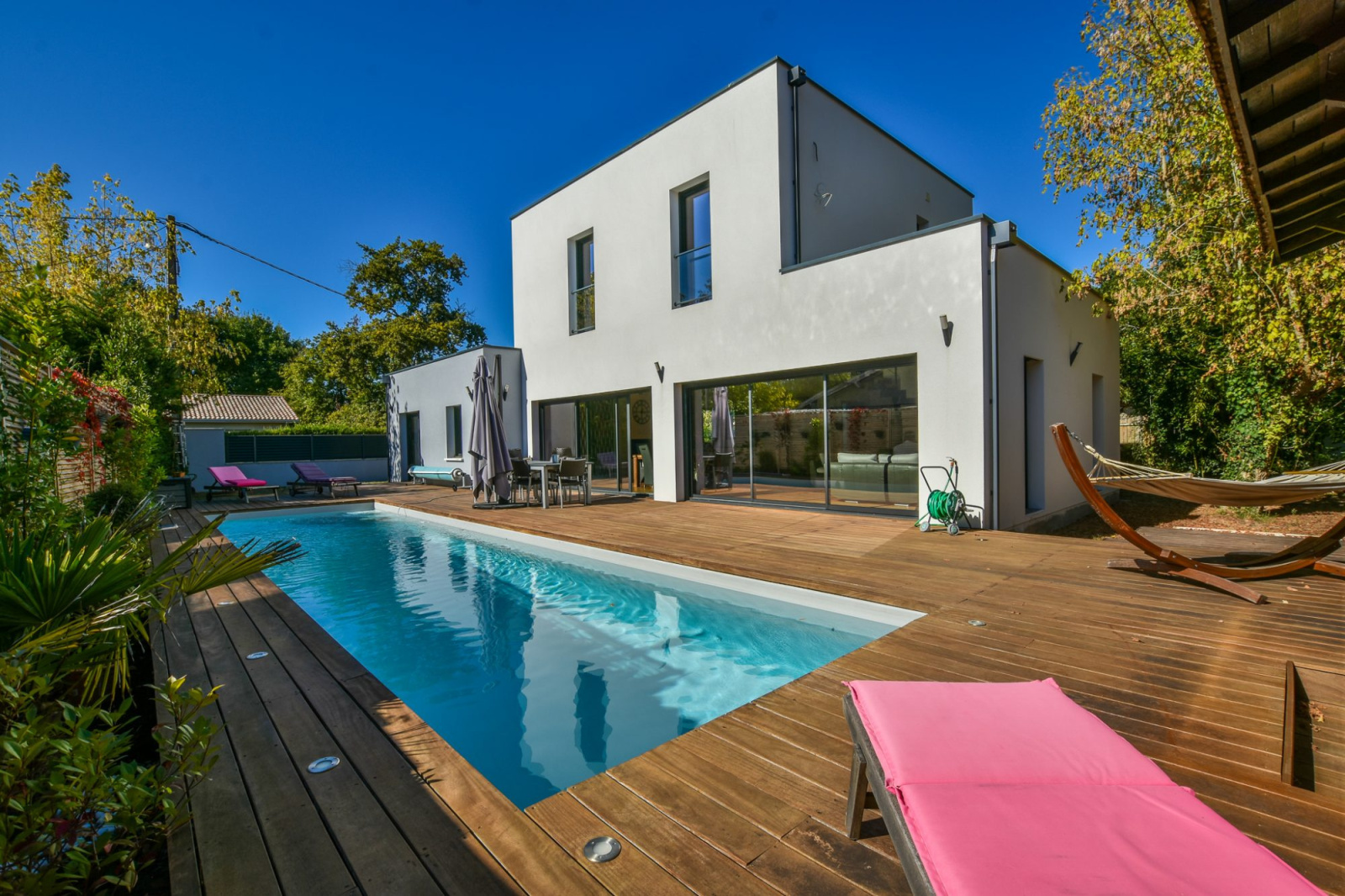 Gujan-Mestras, très belle villa contemporaine de 2016 avec 4 chambres dont un type 2 indépendant, édifiée sur une parcelle de terrain de 850 m2 avec garage et piscine chauffée. Le tout situé au calme, dans une impasse, proche des commerces, des écoles et de toutes les activités. Rez de chaussée : Entrée, séjour, salon cuisine ouverte, suite parentale avec 1 chambre, sa salle d'eau et buanderie et grand garage. Etage : 2 chambres et salle d'eau. Appartement de type 2 indépendant avec son séjour, salle d'eau et wc. D'autres photos, un plan, ainsi qu'un descriptif détaillé et complet du bien sont à votre entière disposition sur simple demande. Groupe DIÉ IMMOBILIER - Guillaume Dié - 06 86 28 96 72 - commercial@die-immobilier.net