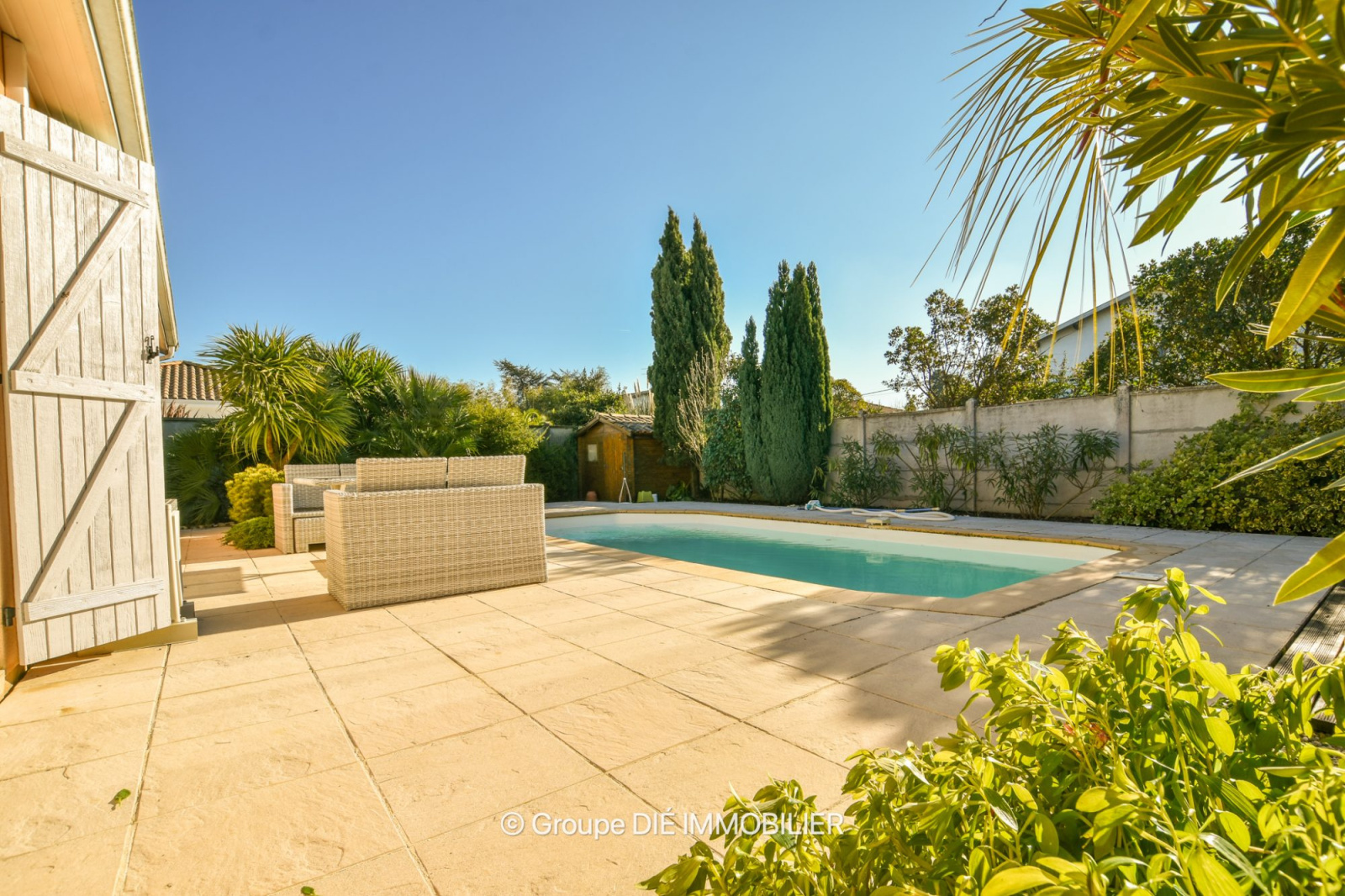 Gujan-Mestras, proche de la mairie, très belle villa de plain-pied traversante avec 4 chambres, édifiée sur une parcelle de terrain de 708 m2 avec piscine. Le tout situé au calme sans vis à vis, proche des commerces, des établissements scolaires, des plages et de toutes les activités. Belle exposition ensoleillée, double vitrage, chauffage électrique, puit foré. Hall d'entrée avec wc indépendant et cellier, salon, séjour, cuisine aménagée, chaufferie, pièce, une suite parentale avec sa salle d'eau, 3 chambres, salle de bains. D'autres photos, un descriptif complet et un plan sont à vote entière disposition sur simple demande. Groupe DIÉ IMMOBILIER - Guillaume Dié - Agent Immobilier - 06 86 28 96 72 - commercial@die-immobilier.net
