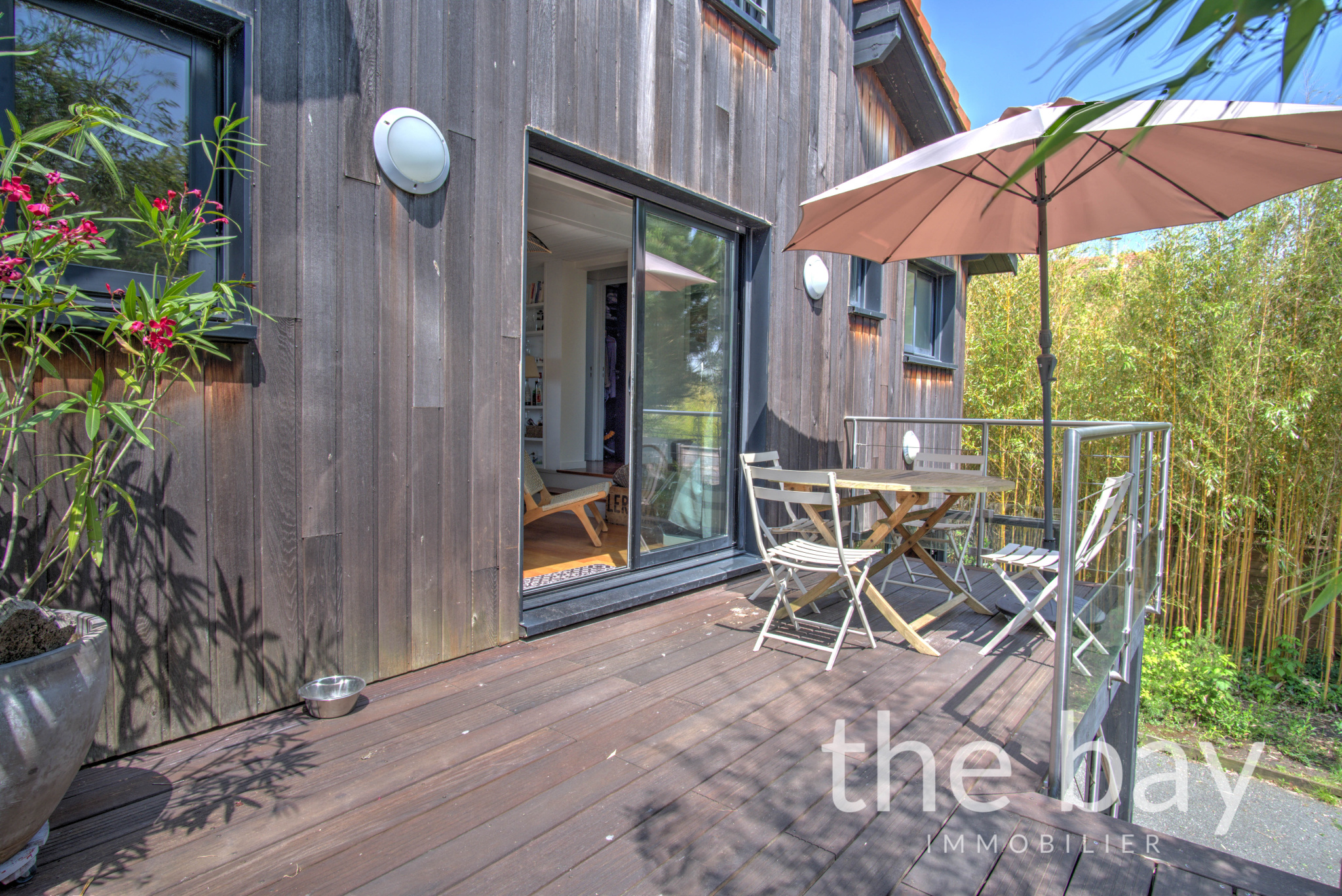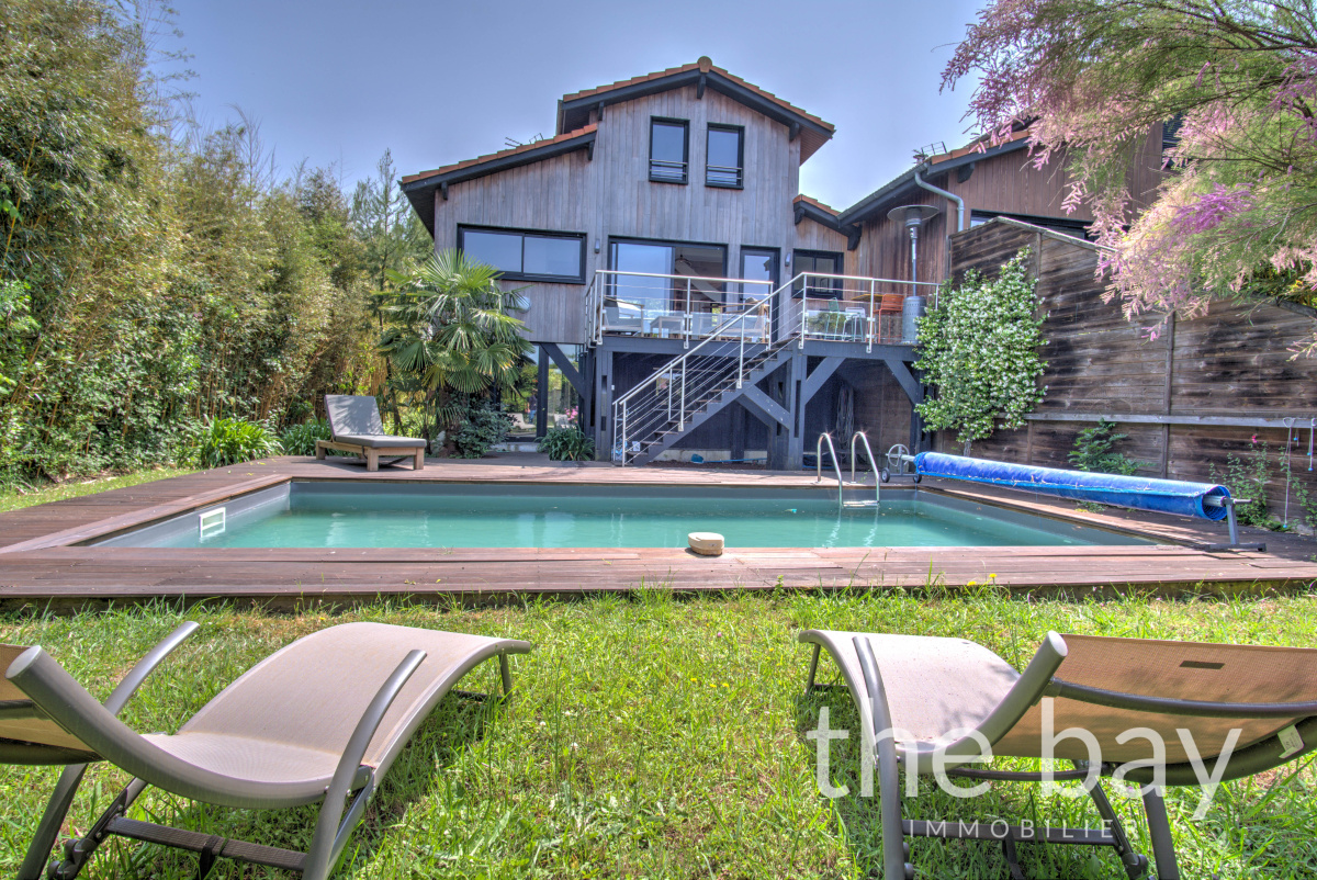 Offrant une vue à couper le souffle et un environnement exceptionnel, cette villa à ossature bois en première ligne incarne la quintessence de la douceur de vivre du Bassin d'Arcachon.