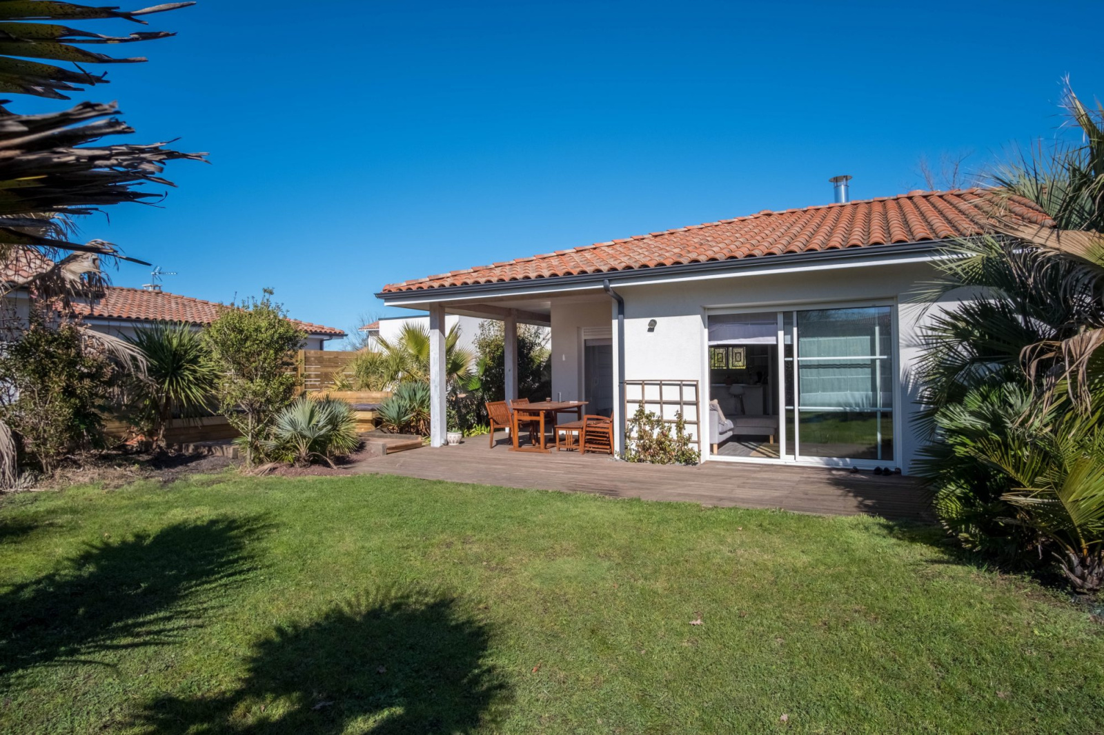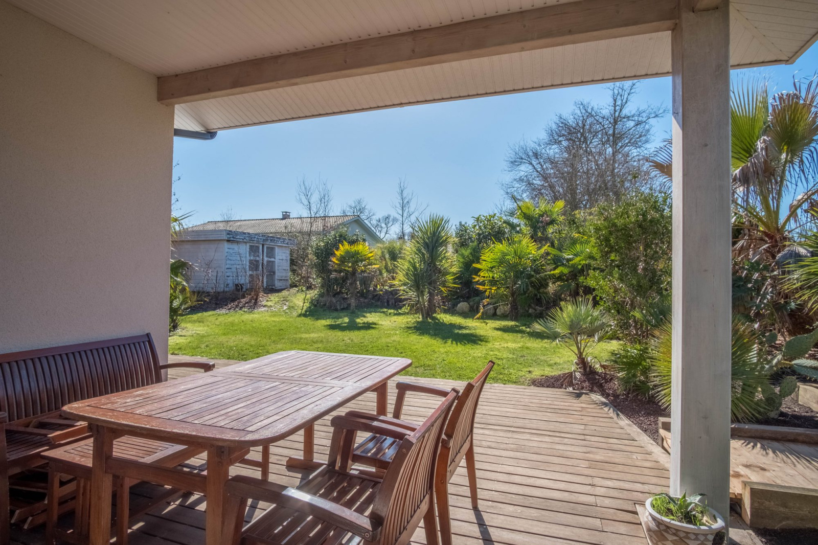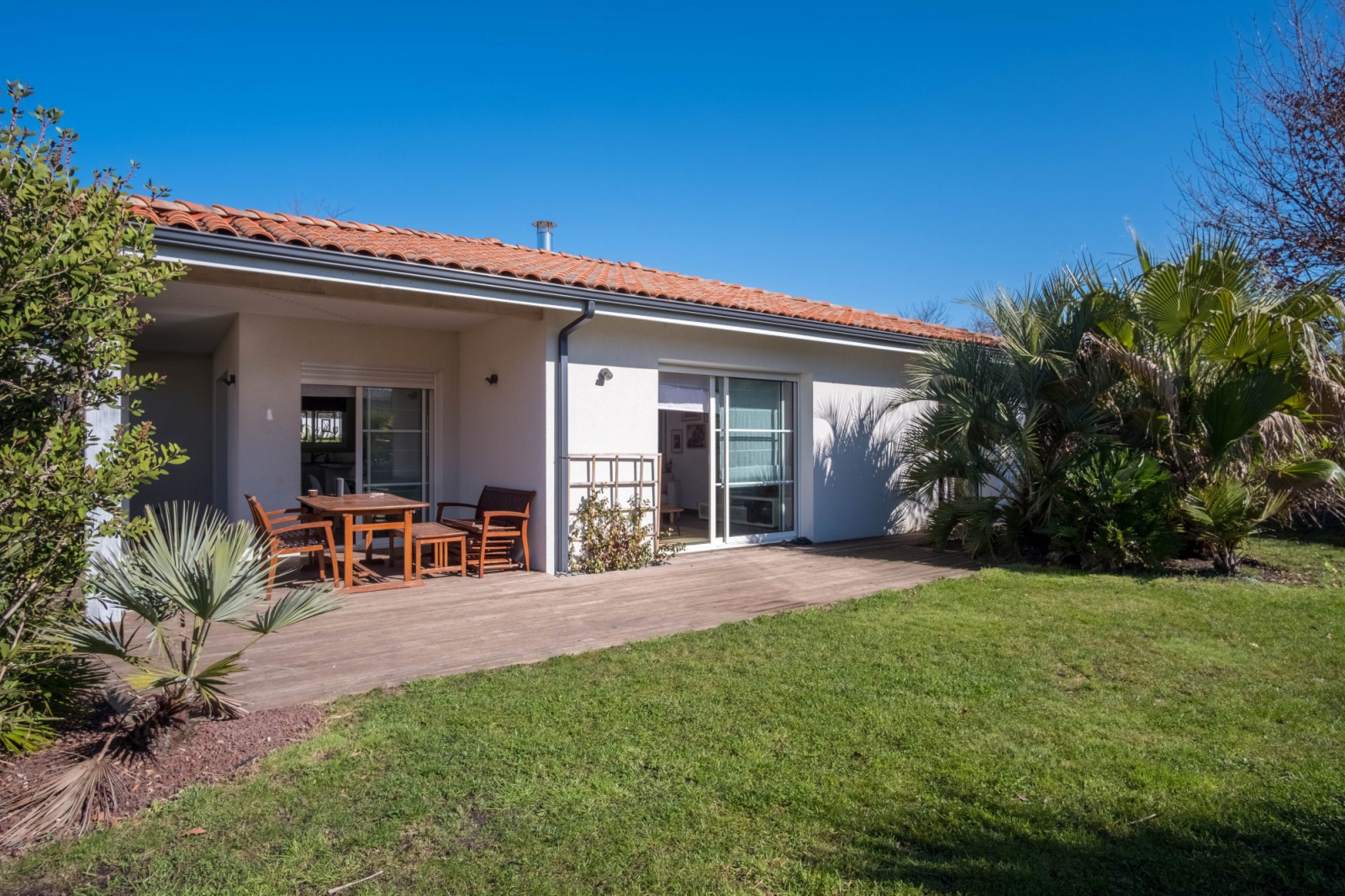 Mandat Exclusif à Mios. Au c?ur de Mios, à quelques minutes à pied des commerces et des écoles, dans un quartier recherché, très belle villa contemporaine de plain-pied sur jardin exotique de 650 m². Elle se compose d'un vaste salon-séjour de 46 m², avec cuisine ouverte aménagée et équipée, orienté au sud et donnant sur la terrasse, de trois chambres, d'une salle de bain avec douche, d'un cellier et d'un wc. A l'extérieur plusieurs terrasses, une en partie couverte, une autre avec braséro. Abris de jardin. Grand garage de 30 m² avec atelier. Magnifique jardin exotique. Villa contemporaine à l'état impeccable dans un quartier résidentiel. D'autres photos, un plan, ainsi qu'un descriptif détaillé et complet du bien sont à votre entière disposition sur simple demande. Groupe DIÉ IMMOBILIER - Matthieu VANMACKELBERG - Agent Commercial - 06 61 95 67 59 - matthieu.v@die-immobilier.net