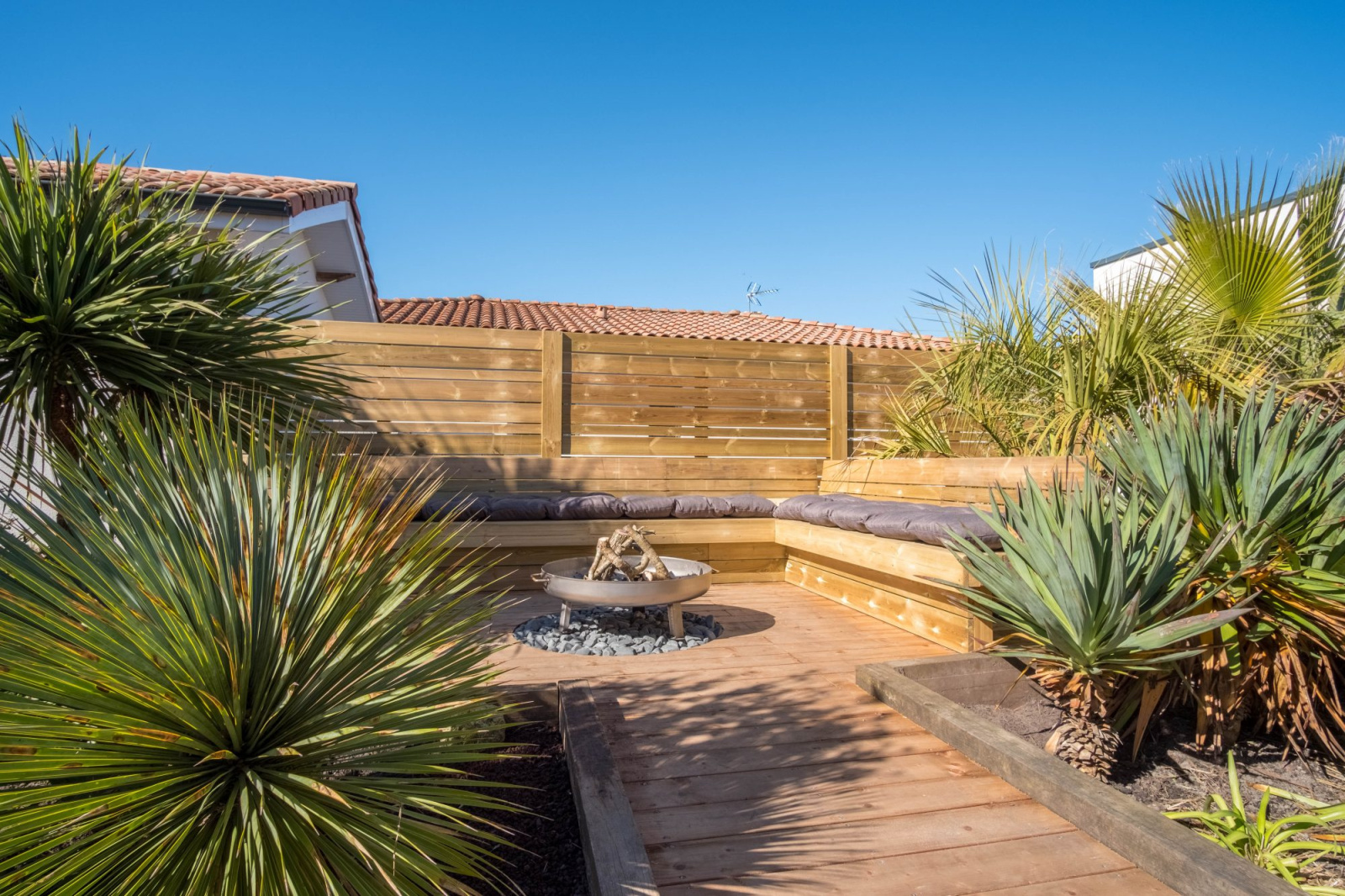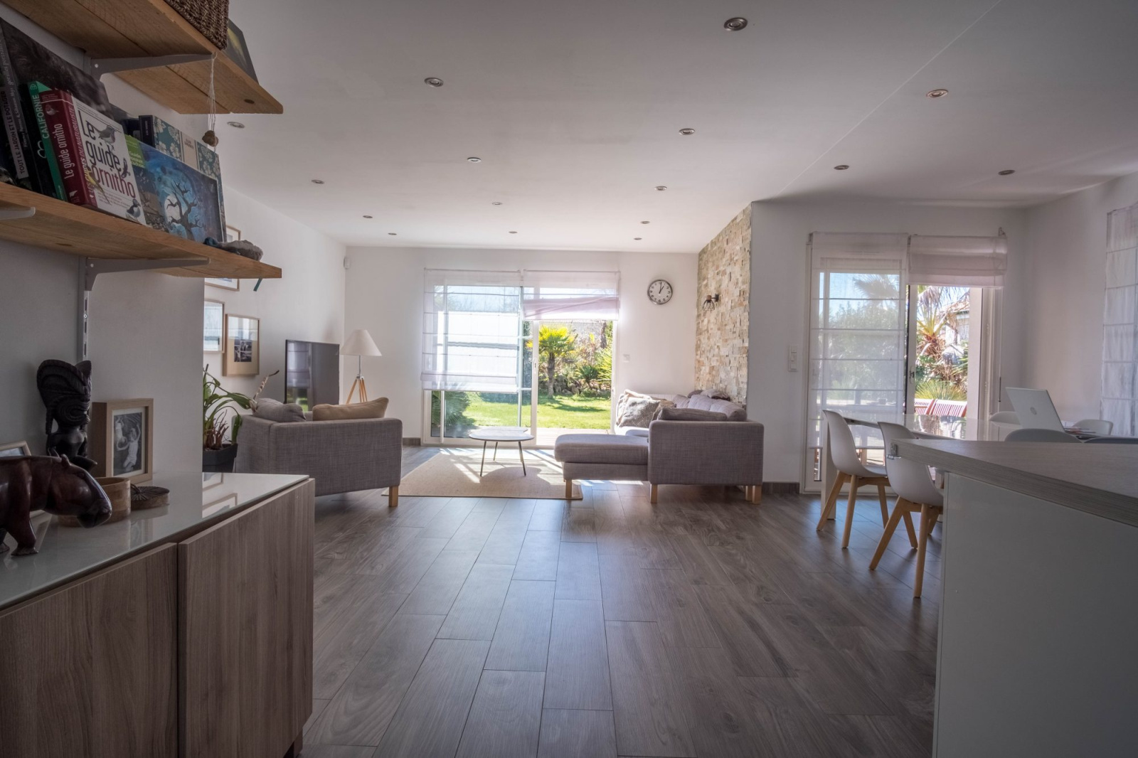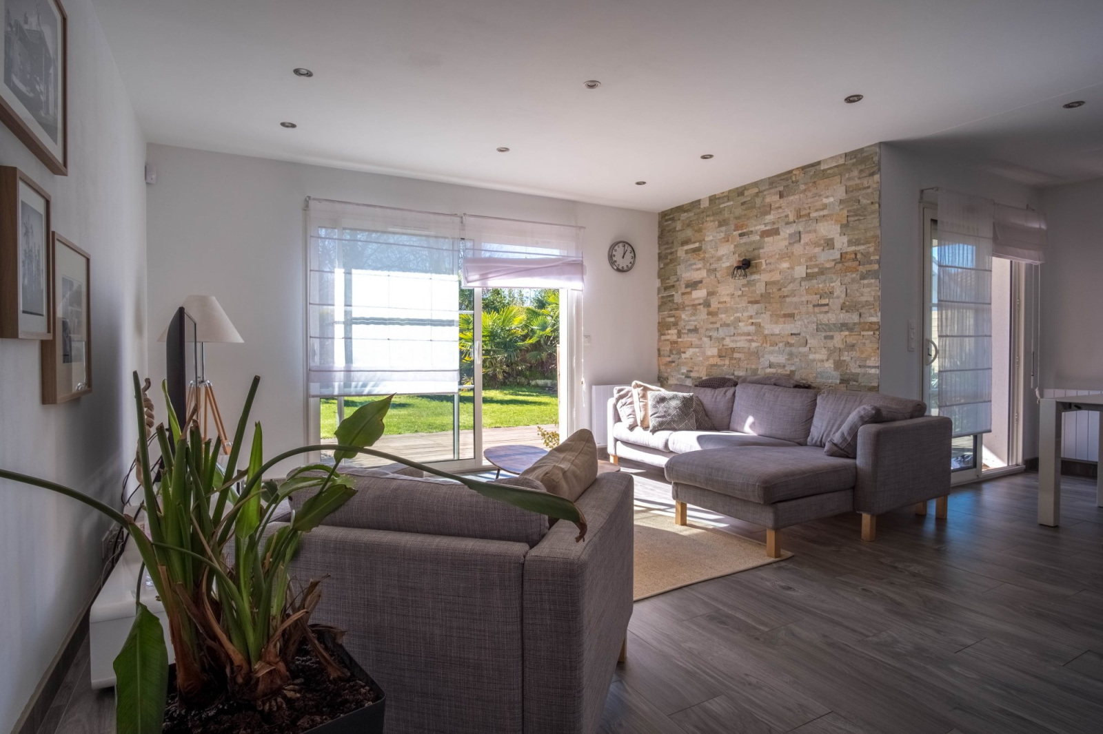 Mandat Exclusif à Mios. Au c?ur de Mios, à quelques minutes à pied des commerces et des écoles, dans un quartier recherché, très belle villa contemporaine de plain-pied sur jardin exotique de 650 m². Elle se compose d'un vaste salon-séjour de 46 m², avec cuisine ouverte aménagée et équipée, orienté au sud et donnant sur la terrasse, de trois chambres, d'une salle de bain avec douche, d'un cellier et d'un wc. A l'extérieur plusieurs terrasses, une en partie couverte, une autre avec braséro. Abris de jardin. Grand garage de 30 m² avec atelier. Magnifique jardin exotique. Villa contemporaine à l'état impeccable dans un quartier résidentiel. D'autres photos, un plan, ainsi qu'un descriptif détaillé et complet du bien sont à votre entière disposition sur simple demande. Groupe DIÉ IMMOBILIER - Matthieu VANMACKELBERG - Agent Commercial - 06 61 95 67 59 - matthieu.v@die-immobilier.net