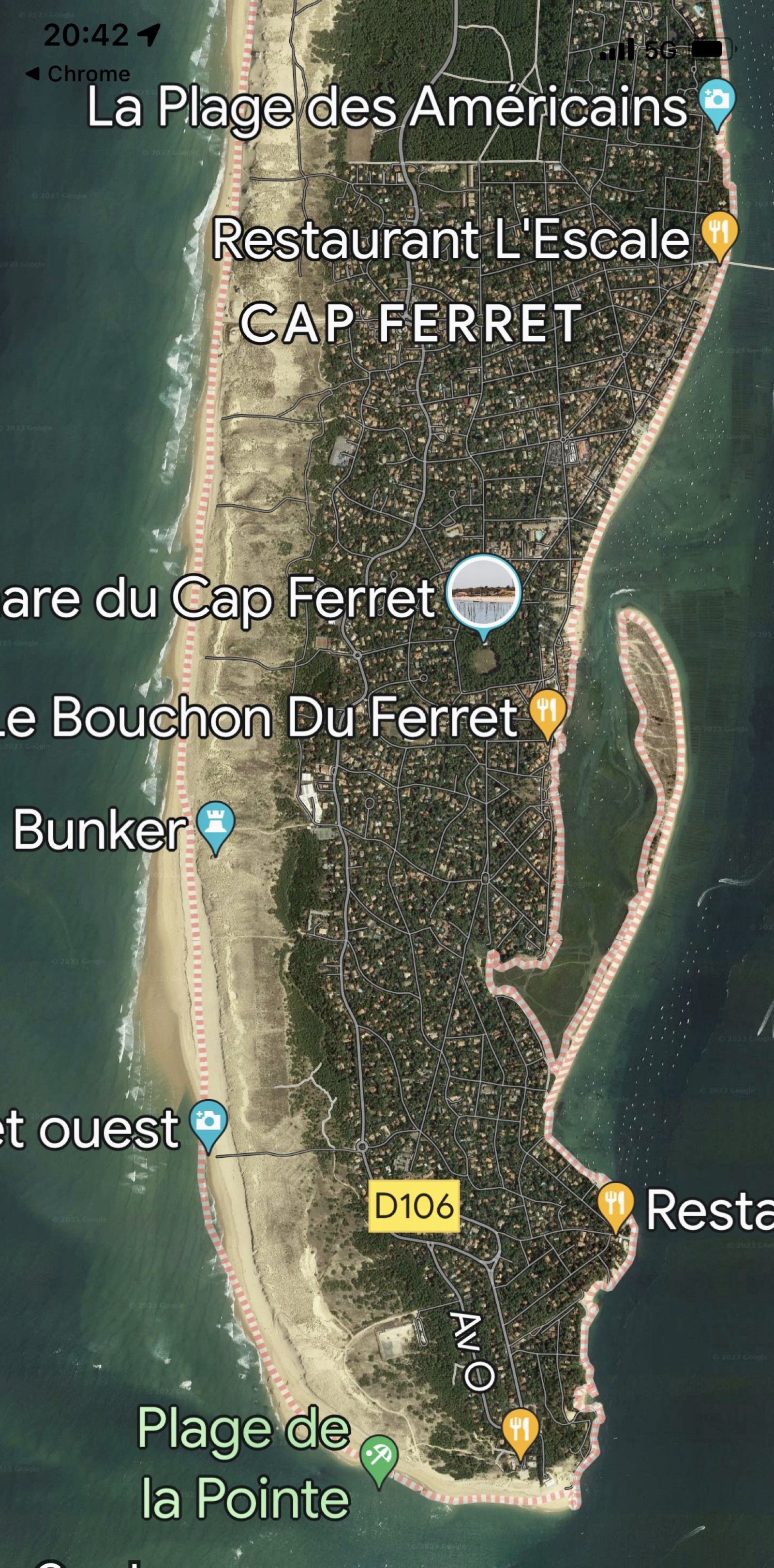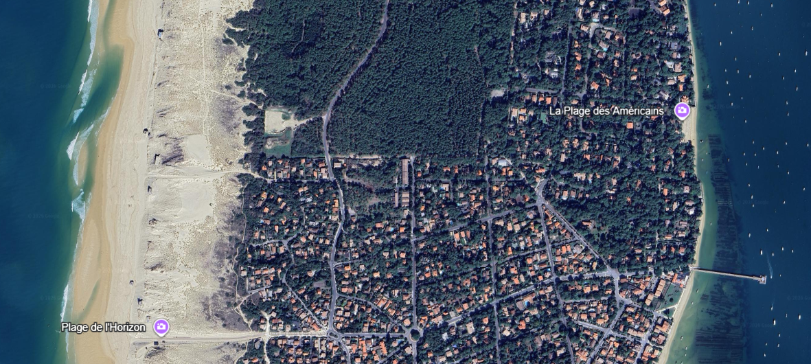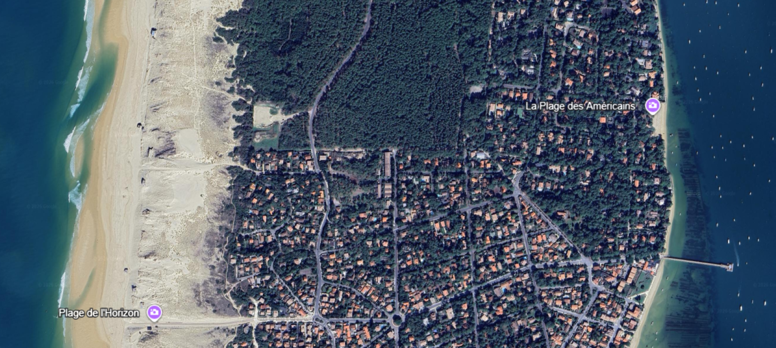 Sur l'entrée du village du Cap Ferret: Terrain constructible non viabilisé de 1 477 m2 , idéalement situé. Plage des Américains à 430m, Océan à 1km, piste cyclable et forêt domaniale de Lège à 50m, Jetée Belisaire à 630m.