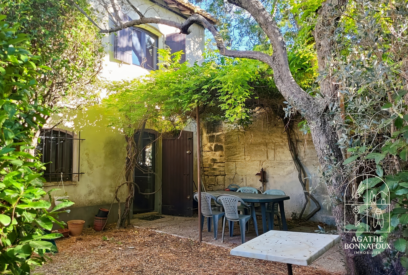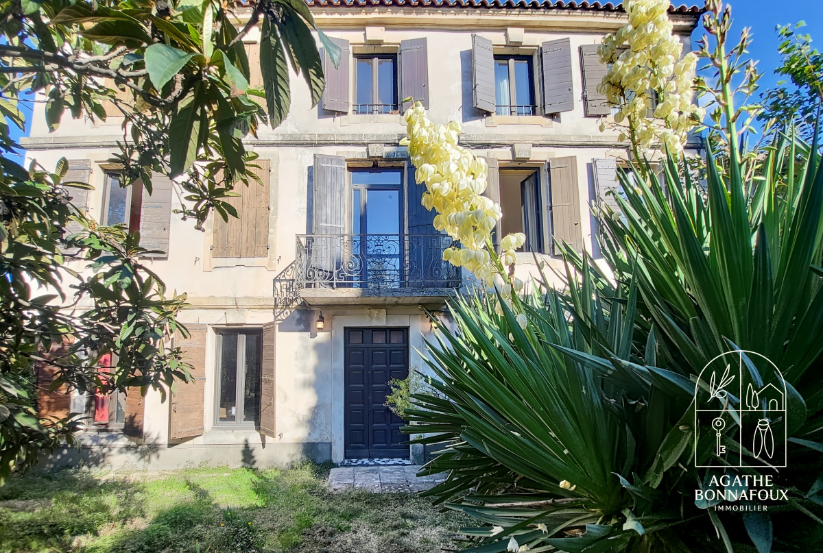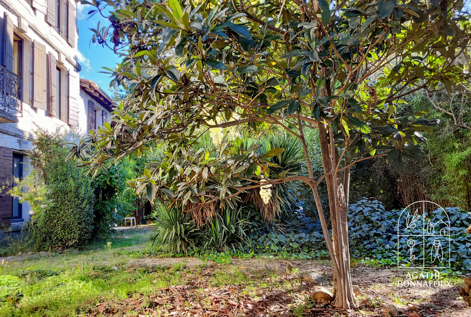 Entrée par le portillon ancien afin de découvrir un beau jardin arboré "buccolique" disposant de plusieurs places de stationnement sur l'arrière, un bel espace vert au sud et un terrain de loisir "piscinable" à l'abri des regards (1575 m2).
