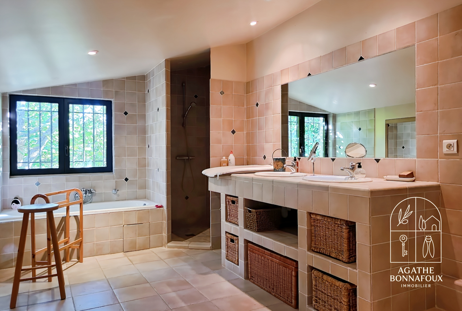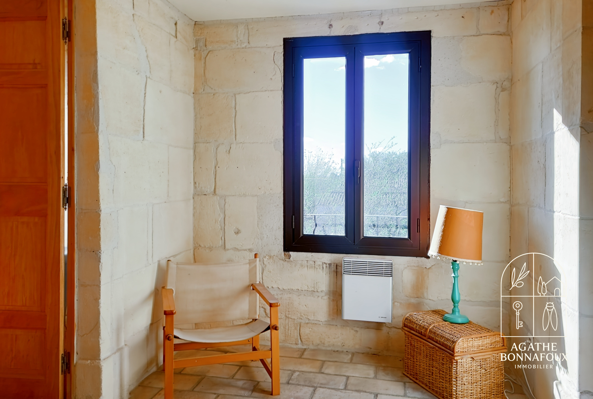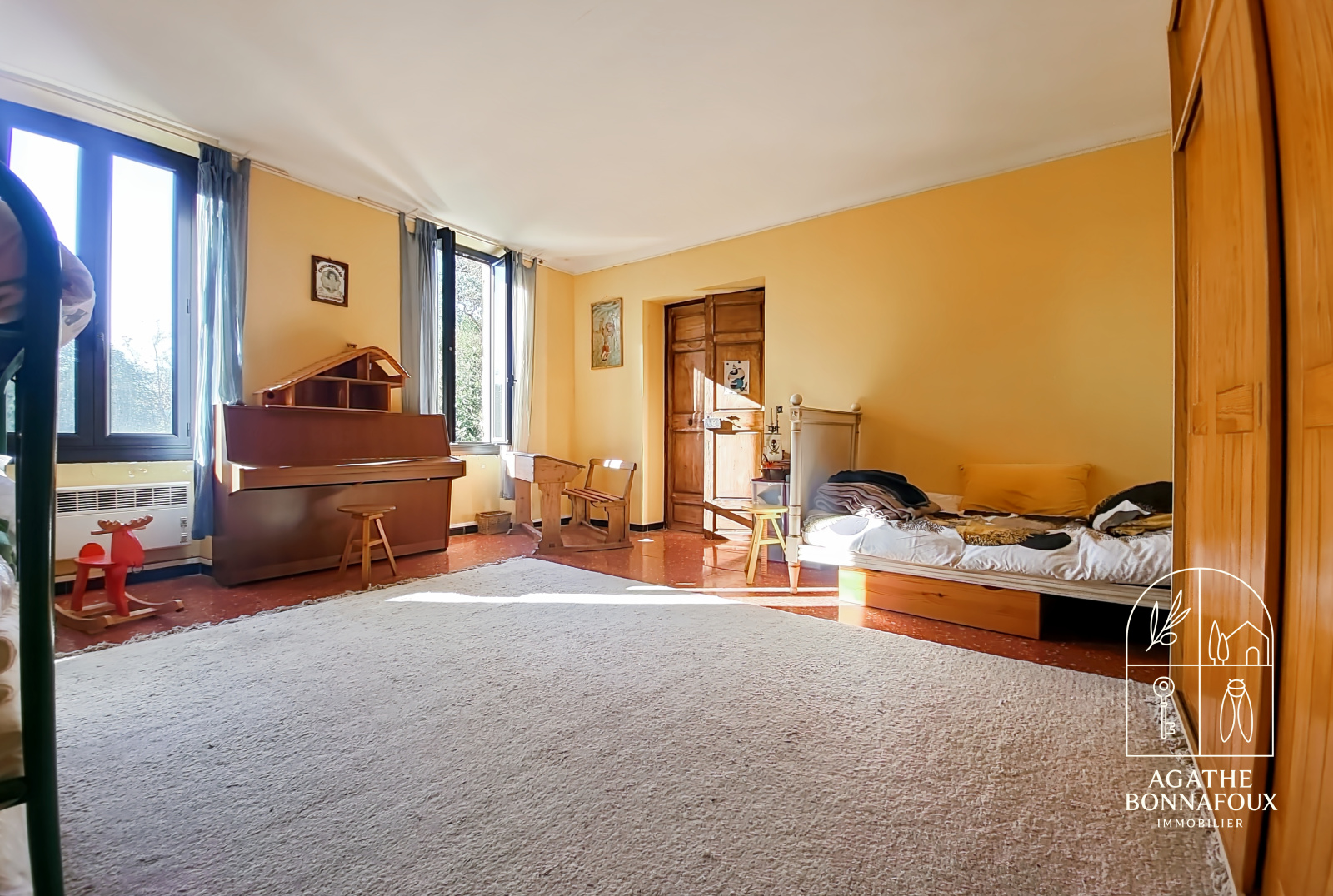 Au premier étage : 4 grandes chambres, une vaste salle d'eau avec baignoire, douche et wc, une petite salle de bain/wc (entre deux niveaux), multiples rangements.