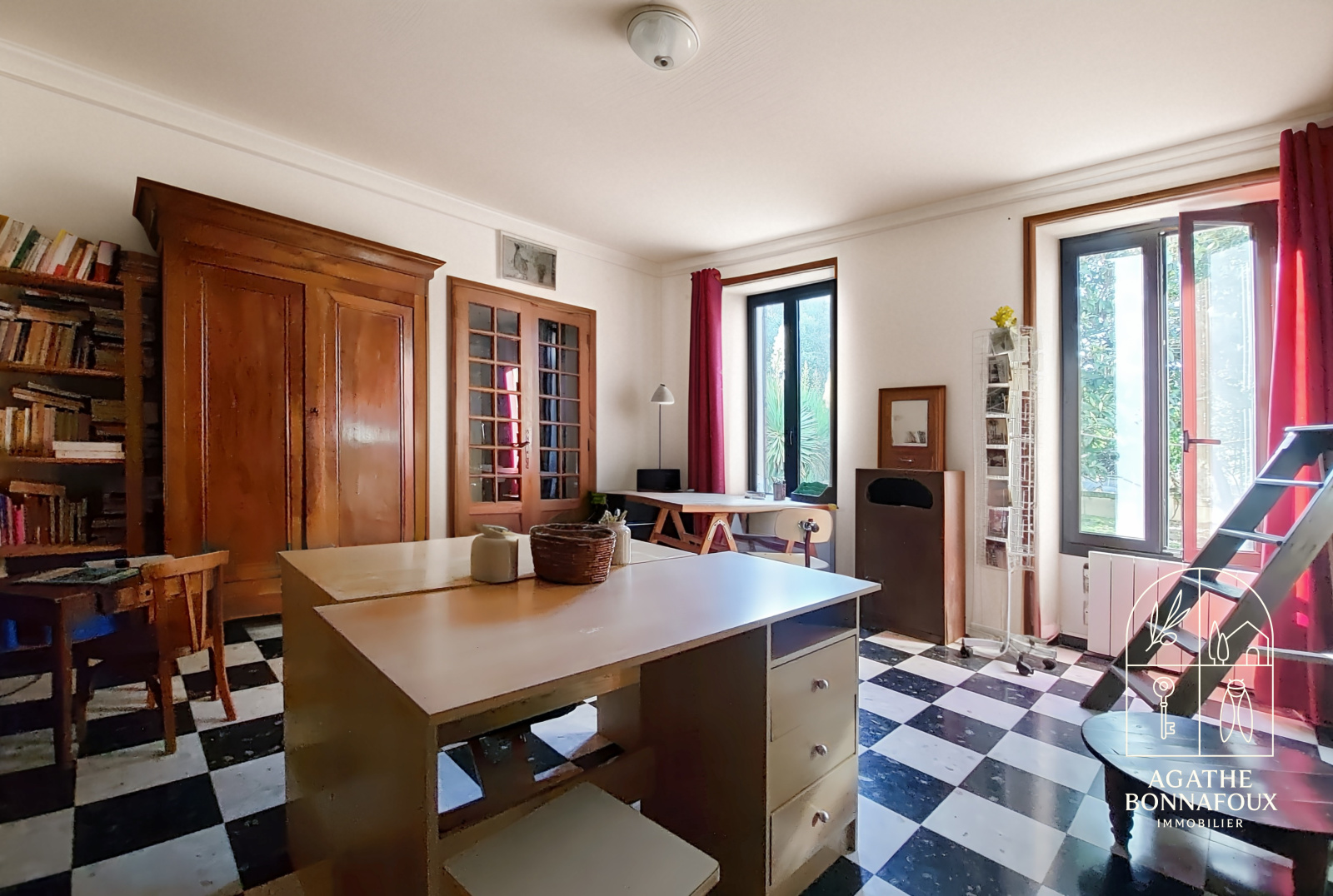Entrée, salon, cuisine dinatoire équipée, un grand bureau "ou chambre", une cuisine d'été "salle à manger", une salle d'eau avec wc.