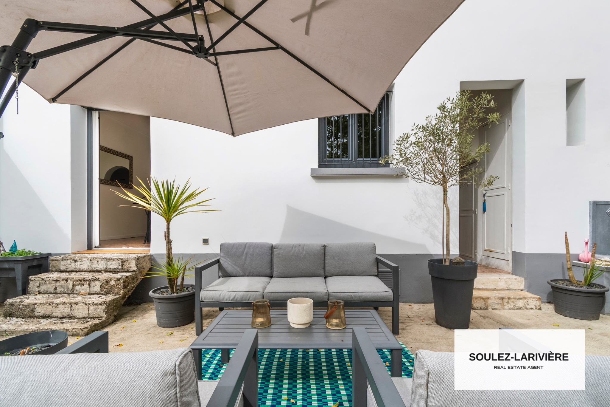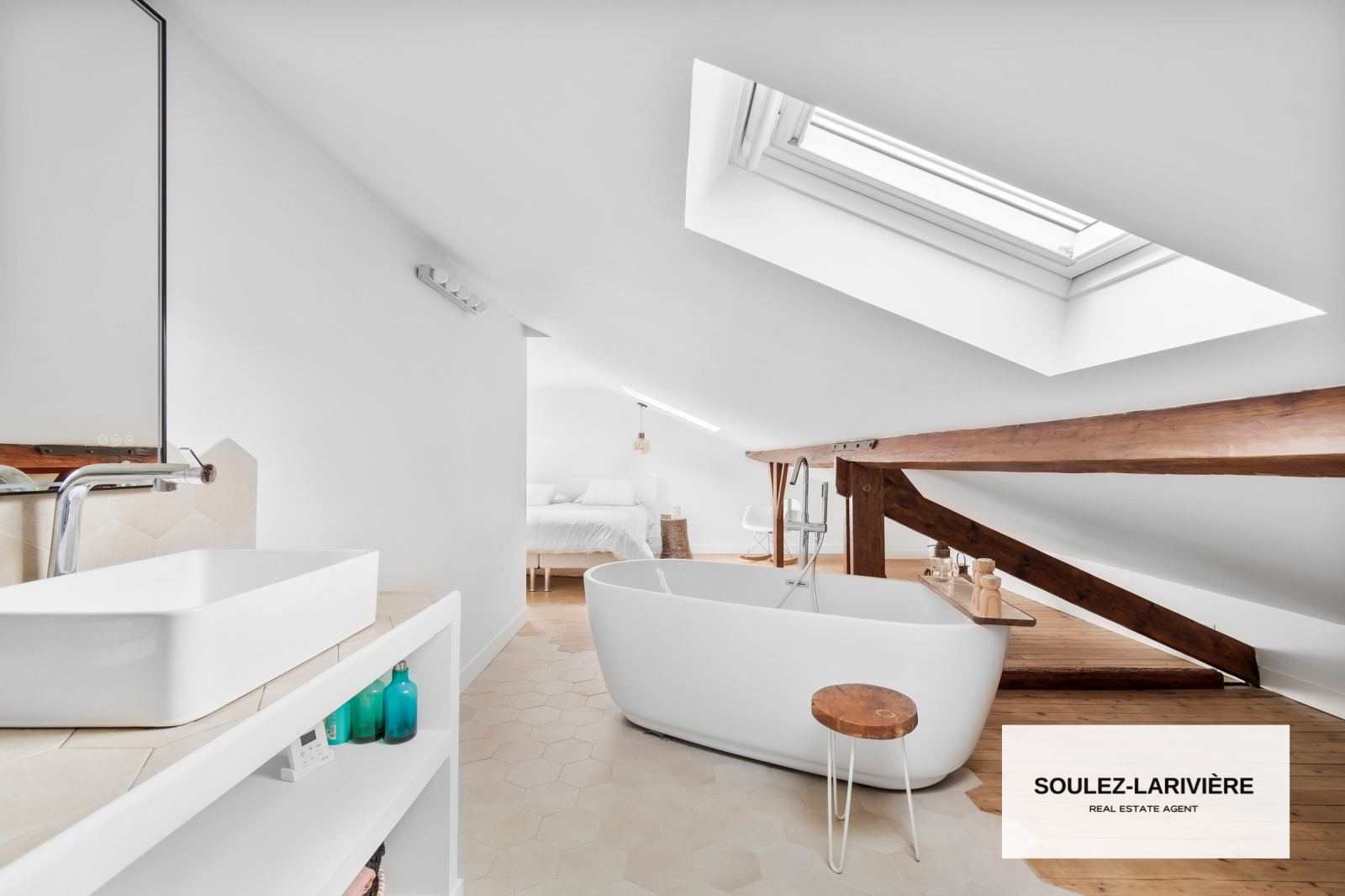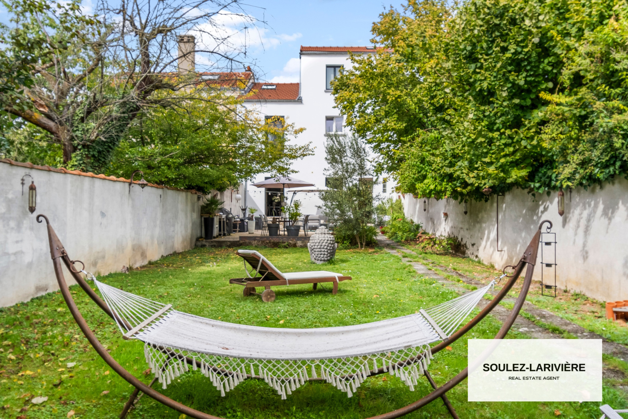 Elle se compose d'une courette extérieur amenant à l'entrée principale. Au rez-de chaussée, vous retrouverez un double séjour, une salle à manger avec accès à la terrasse et au jardin arboré. Une cuisine semi ouverte sur la salle à manger est aménagée et équipée et un WC d'invité. Au premier étage, vous trouverez trois grandes chambres de (13m2, 14m2, 16m2) dont une suite avec parentale avec une grande salle d'eau avec vasque et une grande douche ainsi qu'un WC et une autre chambre avec dressing (possibilité de créer une deuxième salle d'eau dans l'espace dressing). Au second et dernier étage, vous trouverez un grand espace dressing. Ce dressing s'ouvre sur une suite parentale sous comble équipée de velux traversant d'une salle de bain avec une baignoire moderne avec vasque. Un WC indépendant est présent au dernier étage.
