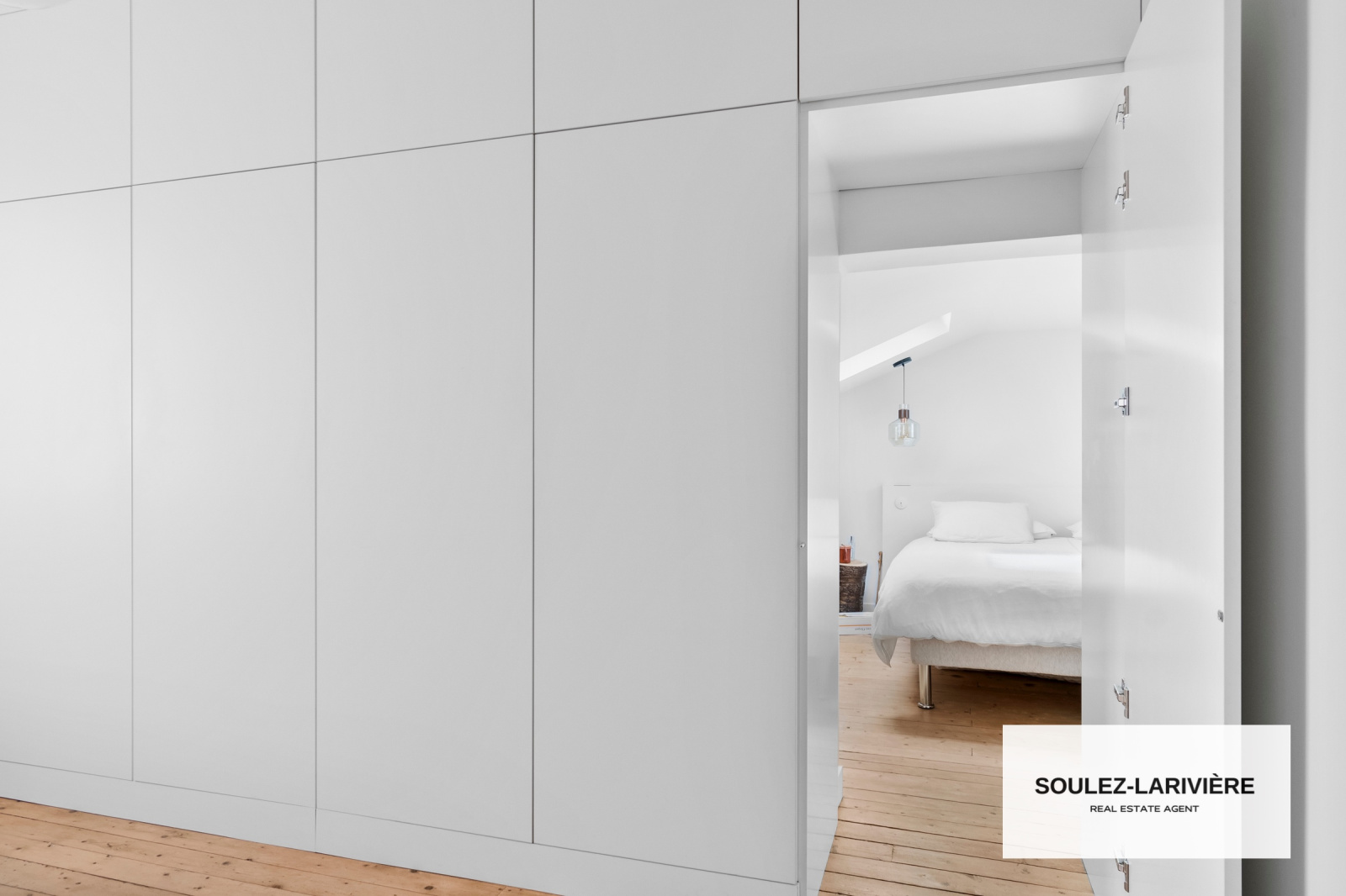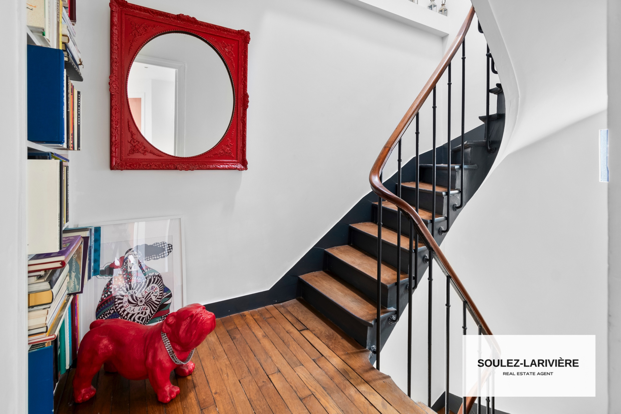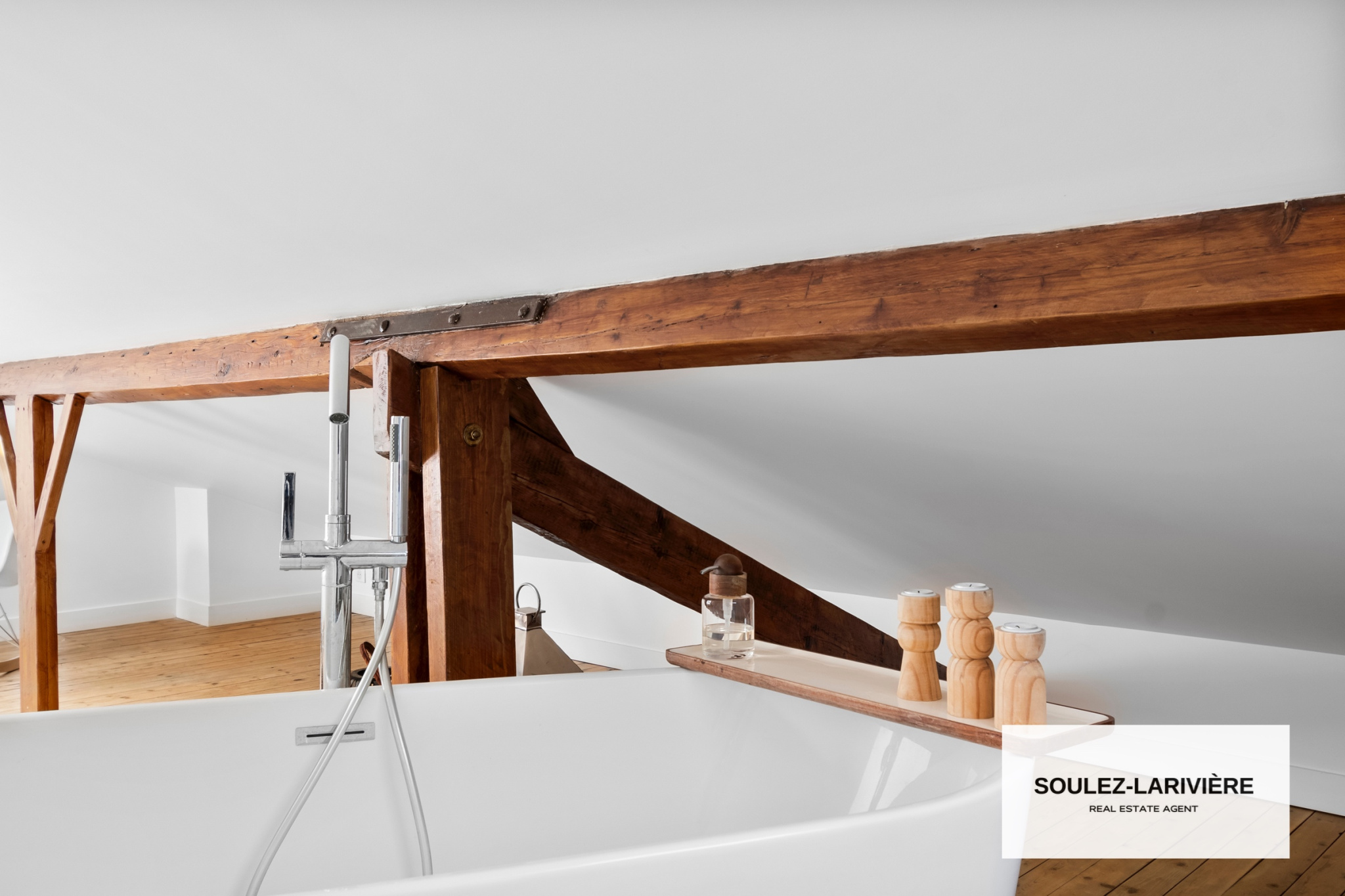 Elle se compose d'une courette extérieur amenant à l'entrée principale. Au rez-de chaussée, vous retrouverez un double séjour, une salle à manger avec accès à la terrasse et au jardin arboré. Une cuisine semi ouverte sur la salle à manger est aménagée et équipée et un WC d'invité. Au premier étage, vous trouverez trois grandes chambres de (13m2, 14m2, 16m2) dont une suite avec parentale avec une grande salle d'eau avec vasque et une grande douche ainsi qu'un WC et une autre chambre avec dressing (possibilité de créer une deuxième salle d'eau dans l'espace dressing). Au second et dernier étage, vous trouverez un grand espace dressing. Ce dressing s'ouvre sur une suite parentale sous comble équipée de velux traversant d'une salle de bain avec une baignoire moderne avec vasque. Un WC indépendant est présent au dernier étage.