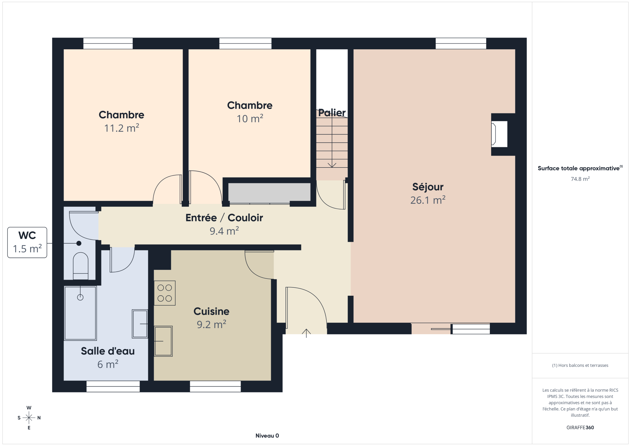 -       Salon/salle à manger (26,1m2).