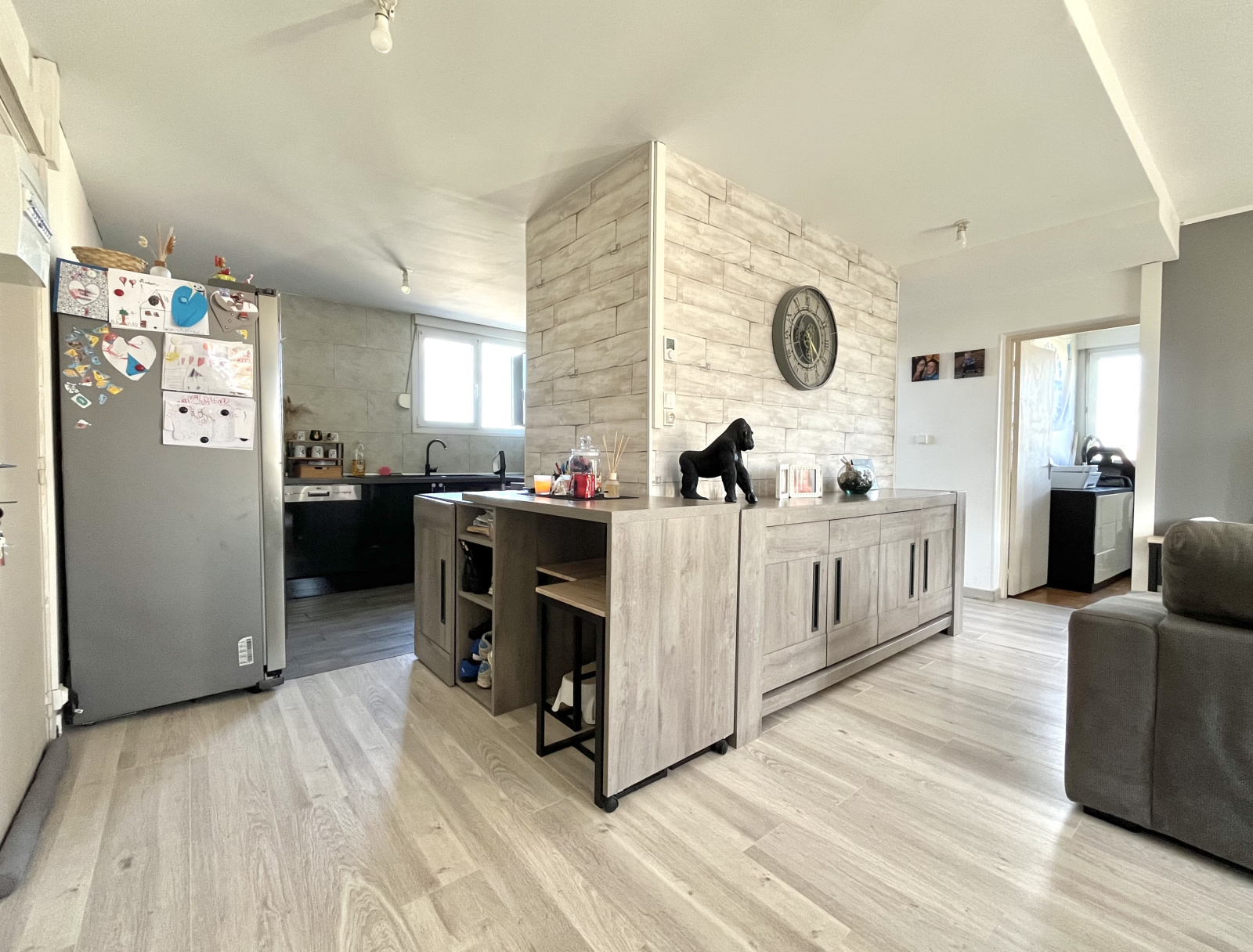 Dès l’entrée, vous bénéficiez d'une pièce de vie lumineuse de 33 m², composée d’un séjour de 23 m² donnant sur l’arrière de la copropriété, au calme, et d’une cuisine semi-ouverte entièrement équipée de 9 m².